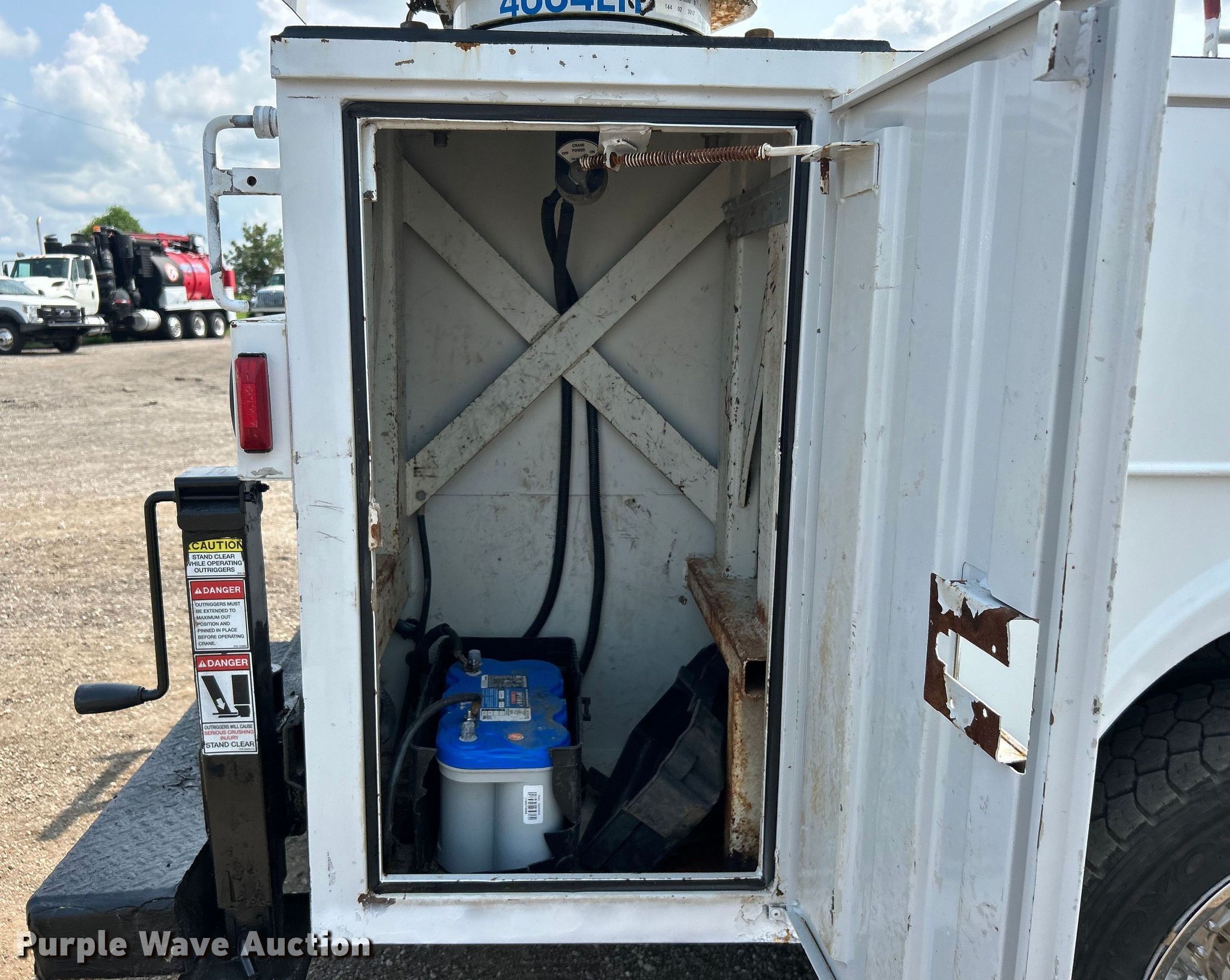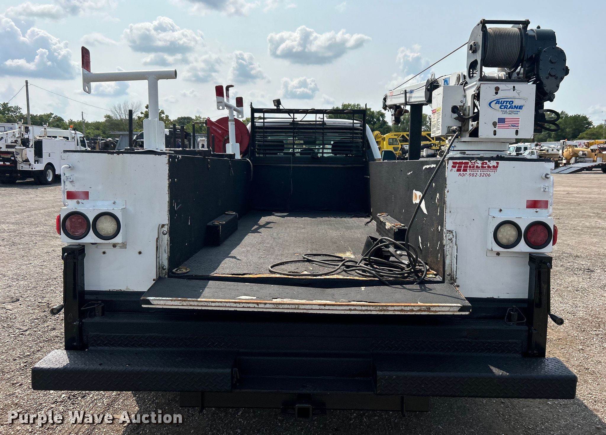 2017 Ford F450 Super Duty SuperCab utility / service truck. Miles: 161,634 on odometer, VIN: 1FD0X4HY5HEE33711. Engine Displacement: 6.8L, Cylinders: 10, Fuel type: Gas. Transmission Automatic. Chassis Four wheel drive, Axles: Single, Suspension: Spring, Brakes: Hydraulic, GVWR: 16,500 lbs, Wheelbase: 192". Interior AC, Heat, Heated mirrors, Power windows, Power locks, Cruise control, Auxiliary controls. Features Bed RKI, 11' L x 95" W, Crane Auto Crane 4004EH, Maximum boom length: 20' Maximum lift capacity: 4,000 lbs.. Tires Size: 225/70R19.5. Notes Dash warning indicator: Airbag, Passenger side bed door broken. Oklahoma title. Title distribution may be delayed up to 14 days from verification of funds. 15107 North 137th East Avenue. Collinsville, OK 74021
