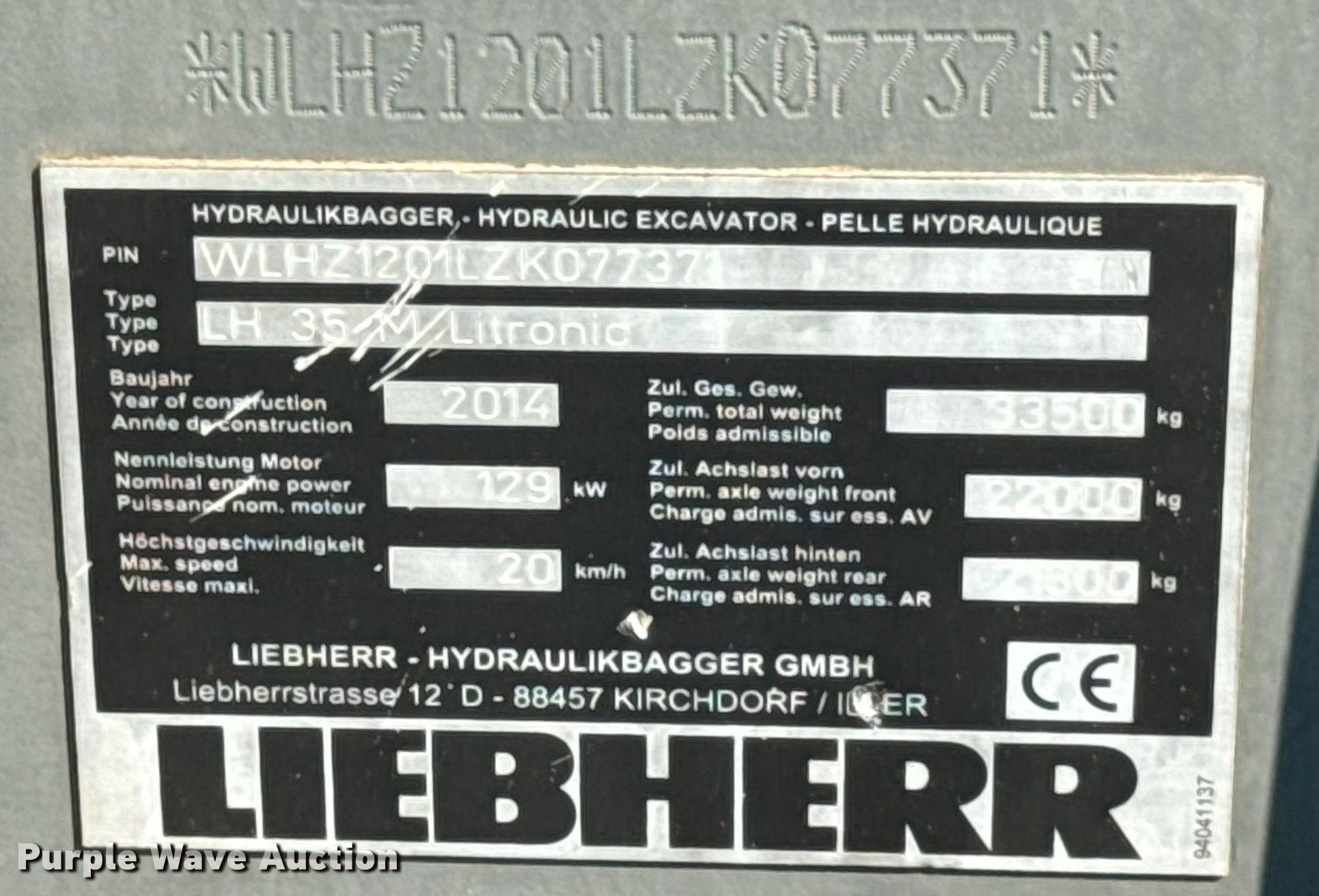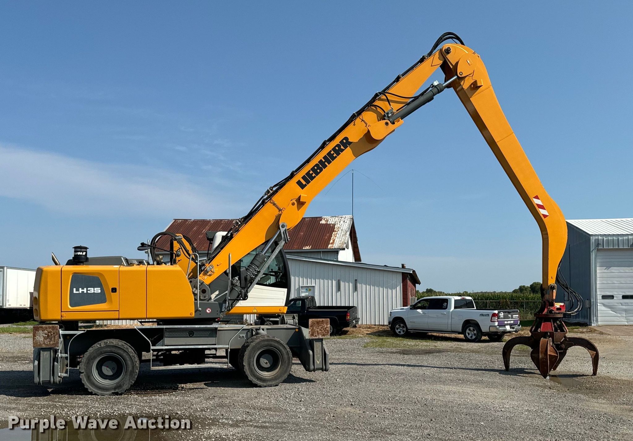 Purple Wave is selling a used Wheeled Excavator in Iowa. This item is a 2014 Liebherr LH35M Litronic material handler with the following: Hours: 12,562 on meter, Serial: WLHZ1201LZK07737