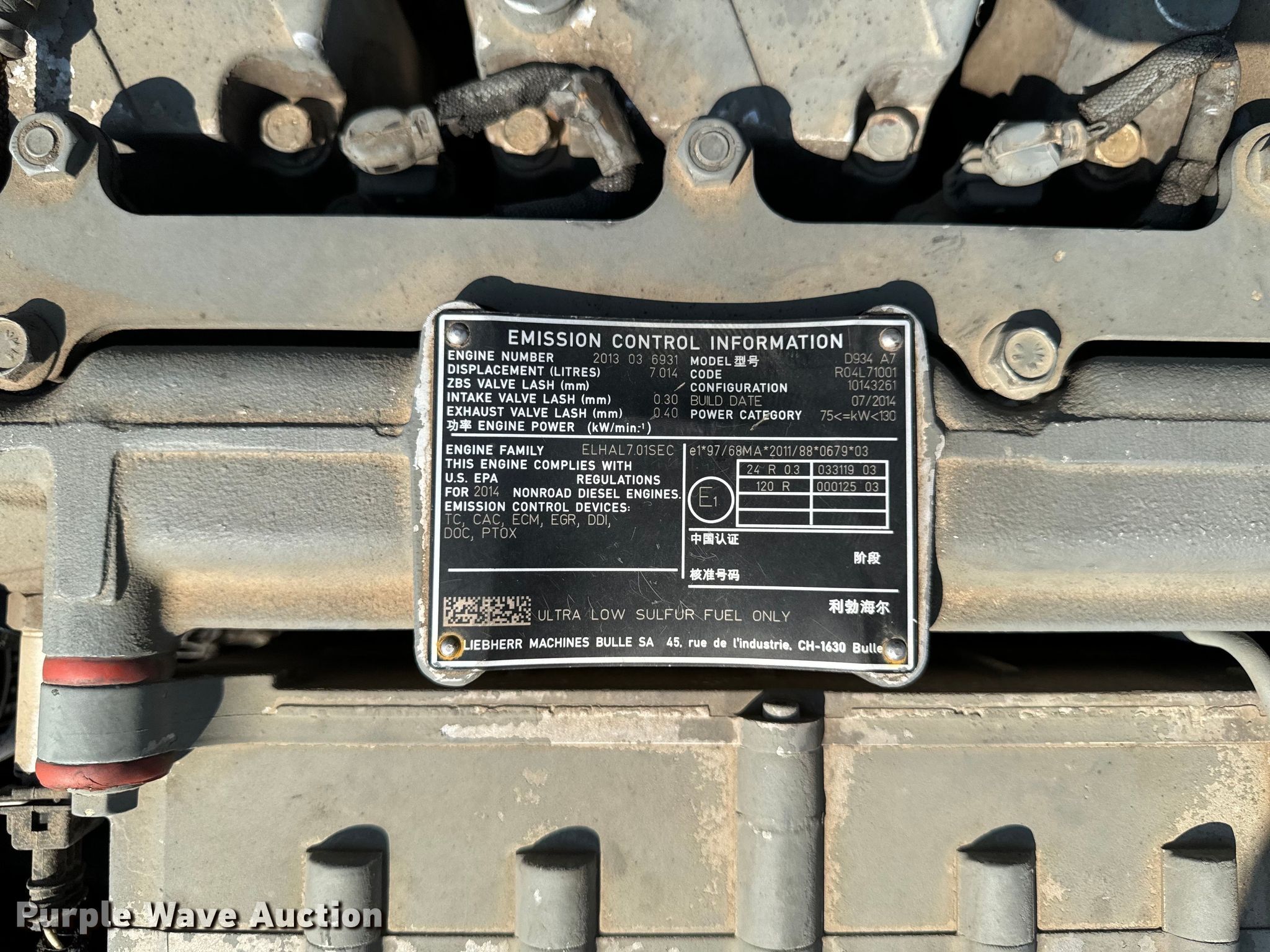 2014 Liebherr LH35M Litronic material handler. Hours: 12,562 on meter, Serial: WLHZ1201LZK07737. Engine Liebherr D934 A7, Displacement: 7.014L, Cylinders: 4, Fuel type: Diesel. Transmission Hydrostatic, Three speed travel, 3F - 3R. Operators station Enclosed cab, AC, Heat. Features Auxiliary hydraulics High flow, Counter weights, Auto lube, Boom Standard, Long reach, Stick Stick length: 45', Rotating grapple. Tires Size: 12.00-20. muscatine metals. Muscatine, IA 52761