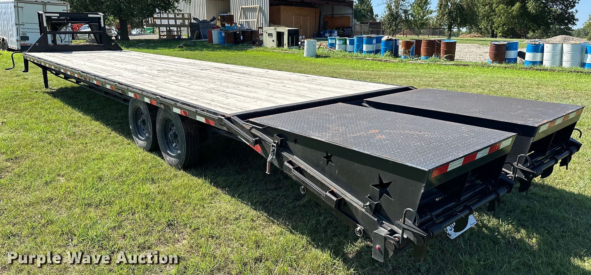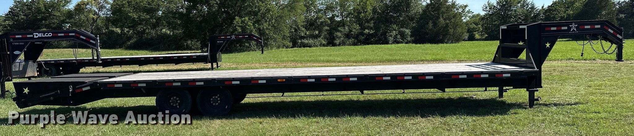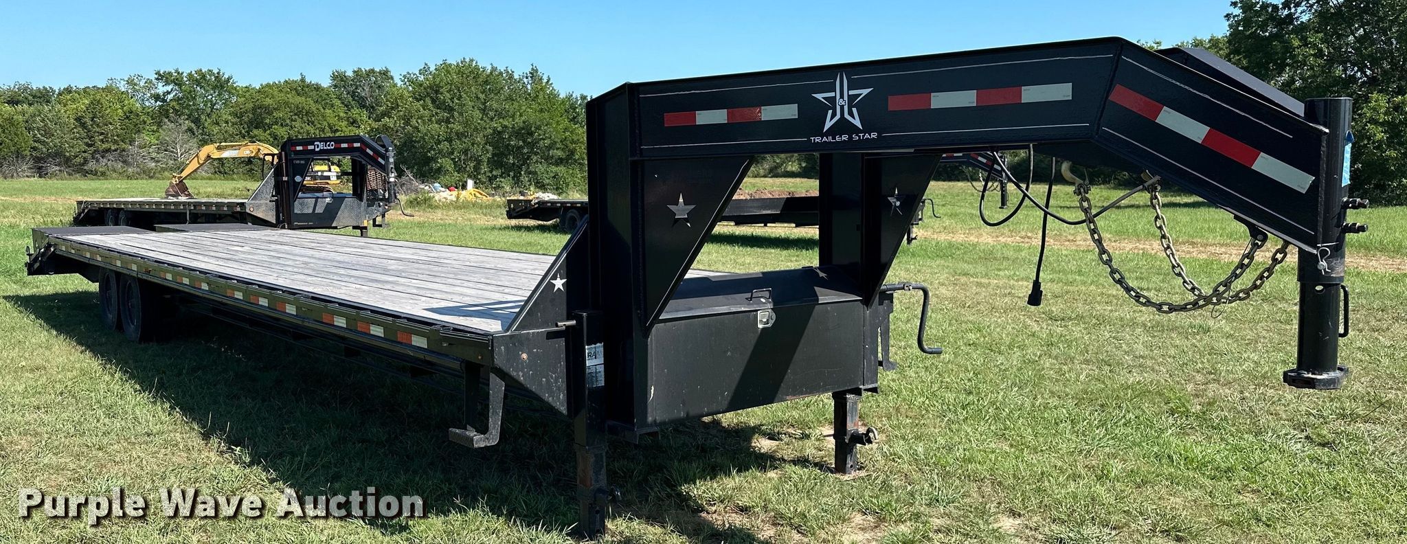2022 J&J Trailer Star Deck Over equipment trailer. VIN: 7NNGF3629N9001205. Dimensions Overall: 45' L x 102" W, Deck: 30' 9" L x 97" W, Tail length: 64", Ramps: Manual Length: 61". Features Deck type: Wood. Chassis Hitch: Gooseneck, Landing gear: Dual, Suspension: Spring, Brakes: Electric, Axles: Tandem, GVWR: 14,000 lbs, GAWR: 8,000 lbs. Tires Steel wheels, Size: ST235/80R16. Oklahoma title. Title distribution may be delayed up to 14 days from verification of funds. Seminole, OK 74868