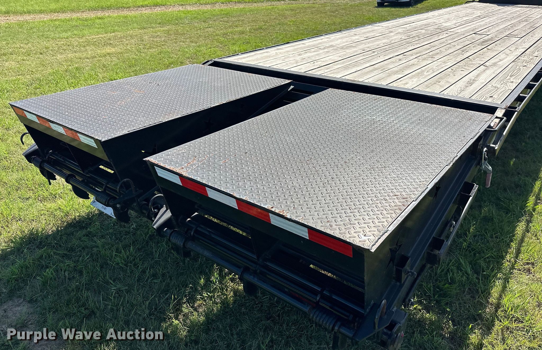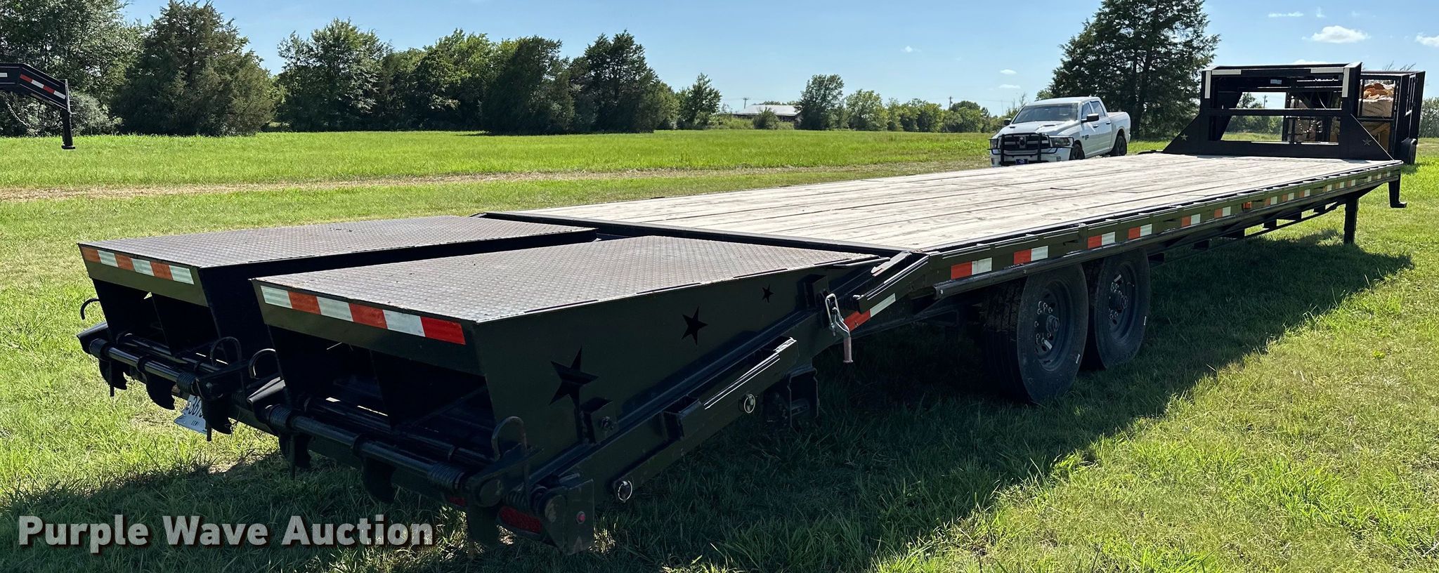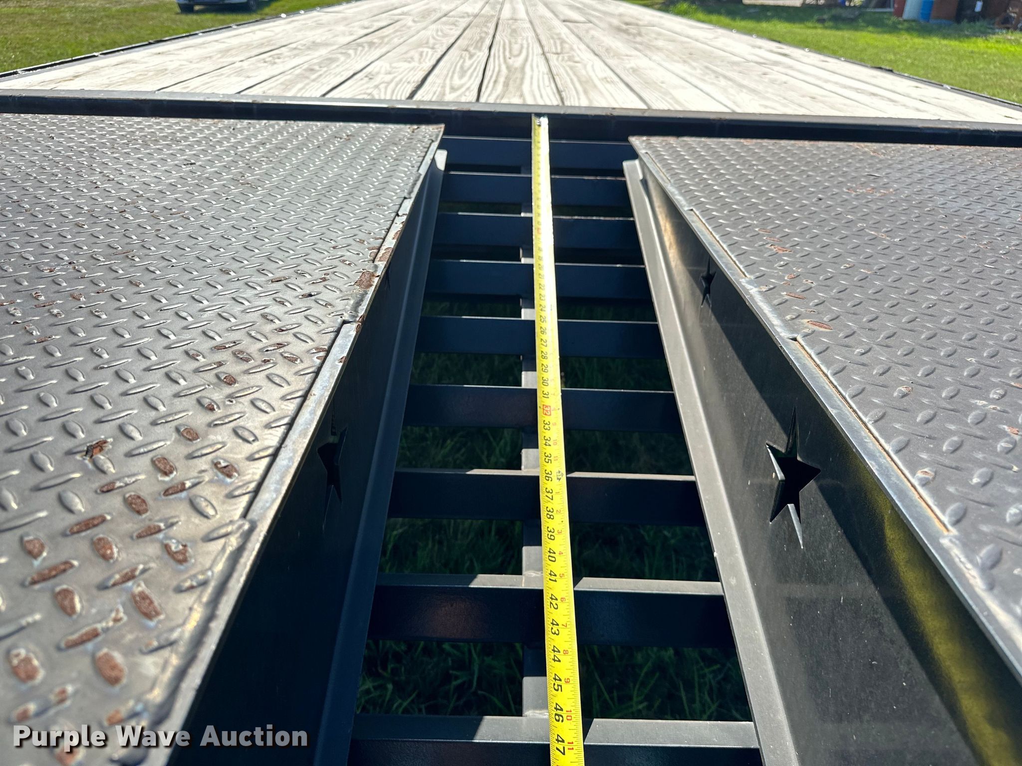 2022 J&J Trailer Star Deck Over equipment trailer. VIN: 7NNGF3629N9001205. Dimensions Overall: 45' L x 102" W, Deck: 30' 9" L x 97" W, Tail length: 64", Ramps: Manual Length: 61". Features Deck type: Wood. Chassis Hitch: Gooseneck, Landing gear: Dual, Suspension: Spring, Brakes: Electric, Axles: Tandem, GVWR: 14,000 lbs, GAWR: 8,000 lbs. Tires Steel wheels, Size: ST235/80R16. Oklahoma title. Title distribution may be delayed up to 14 days from verification of funds. Seminole, OK 74868
