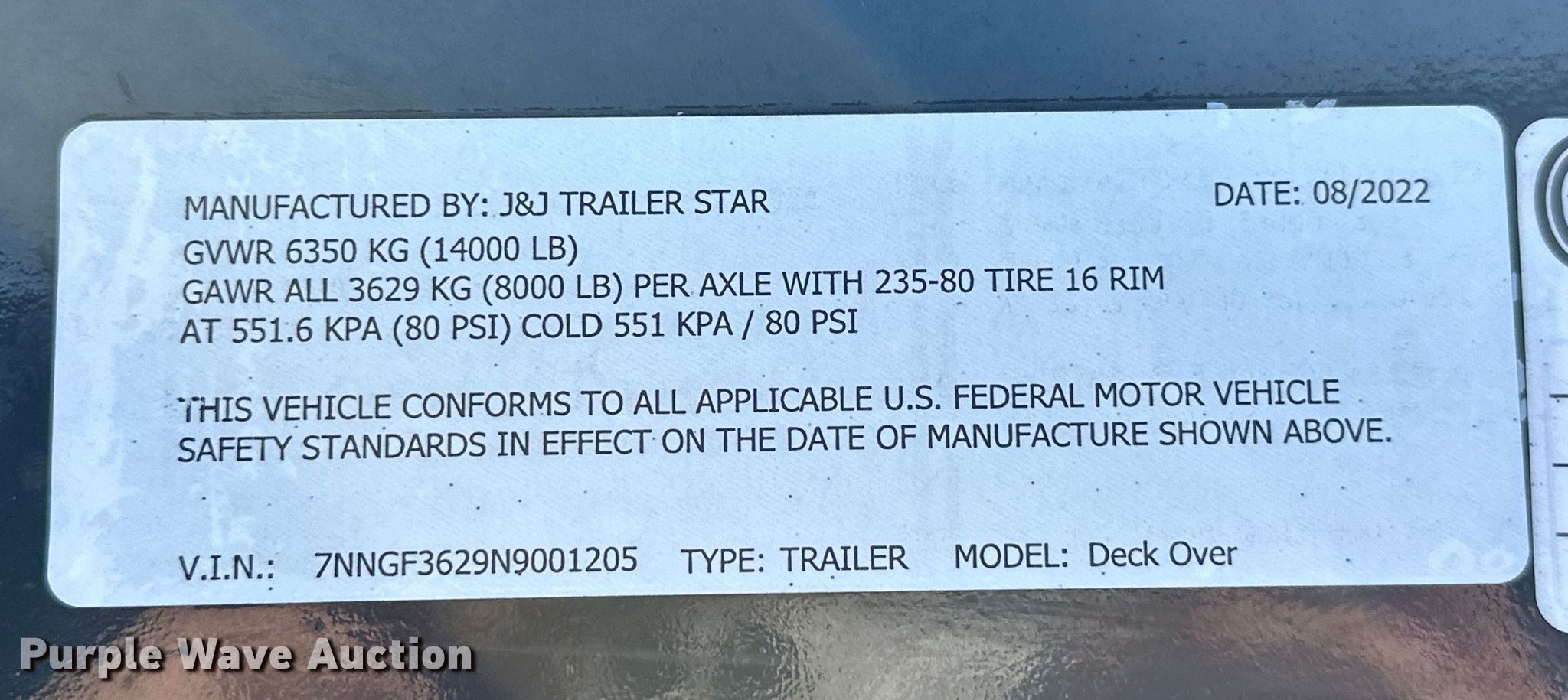 Purple Wave is selling a used Equip. Trailer in Oklahoma. This item is a 2022 J&J Trailer Star Deck Over equipment trailer with the following: VIN: 7NNGF3629N9001205