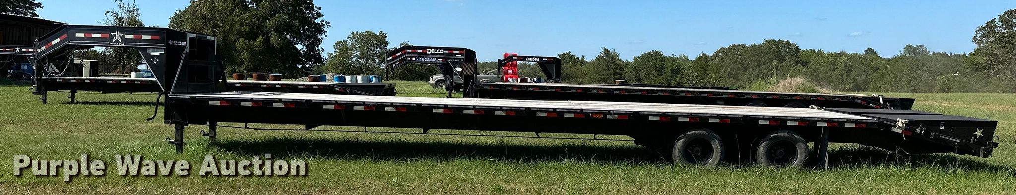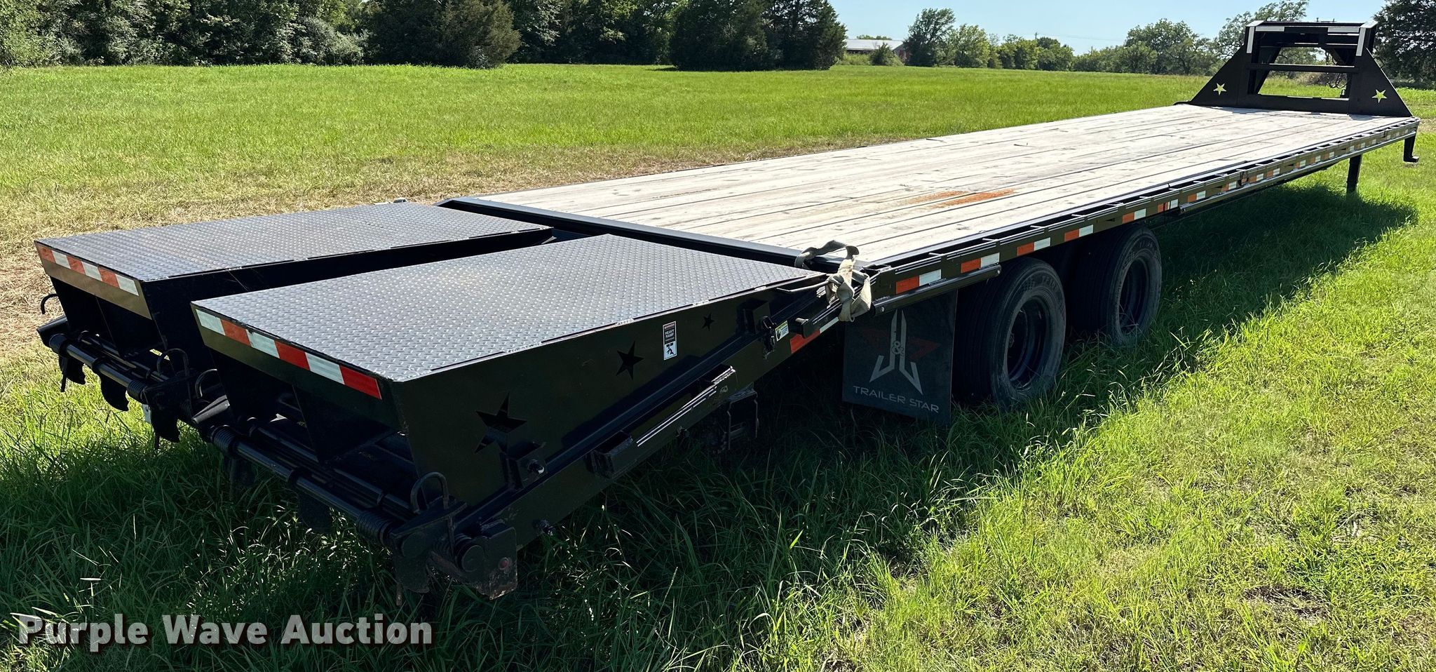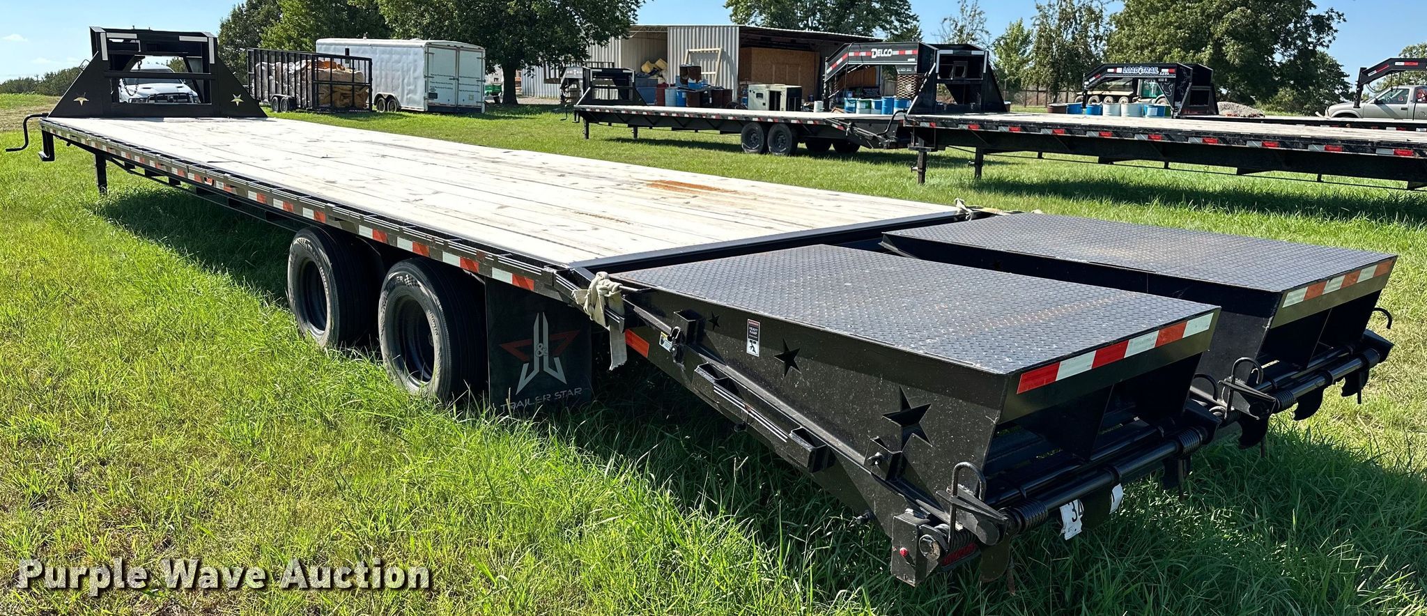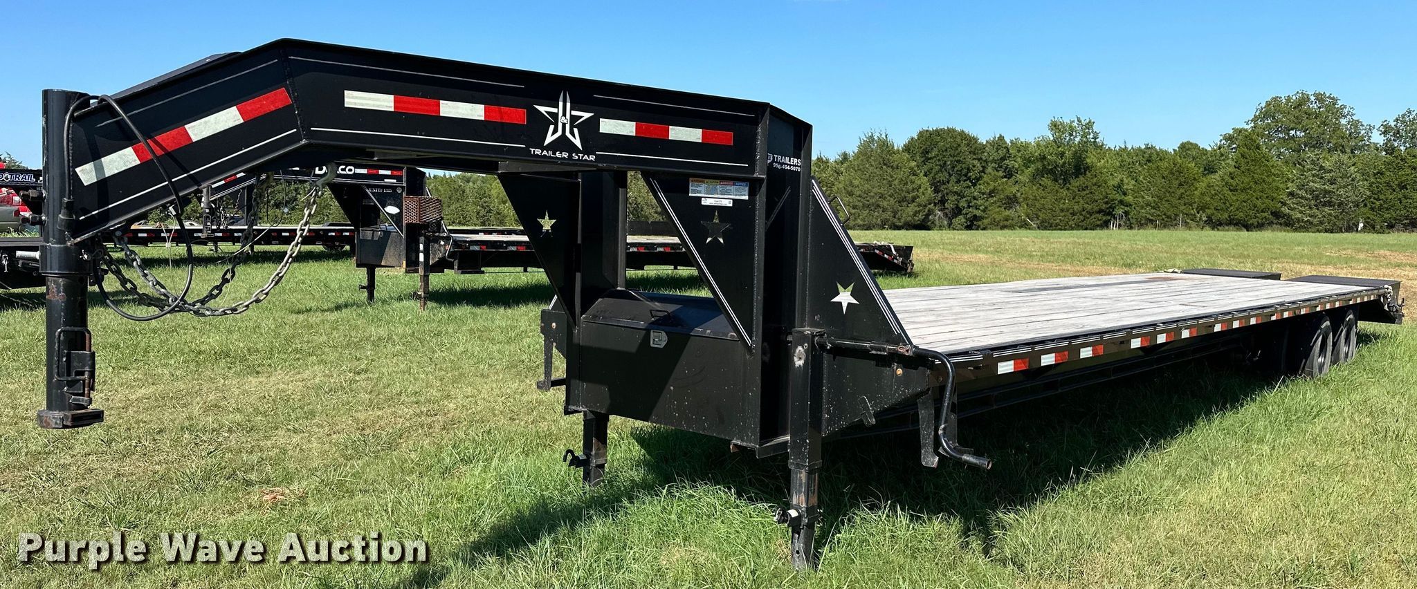 2022 J&J Trailer Star Deck Over equipment trailer. VIN: 7NNGF4020N9001219. Dimensions Overall: 49' L x 102" W, Deck: 34' 9" L x 94" W, Tail length: 64", Ramps: Manual Length: 61". Features Deck type: Wood. Chassis Hitch: Gooseneck, Landing gear: Dual, Suspension: Spring, Brakes: Electric, Axles: Tandem, GVWR: 24,000 lbs, GAWR: 12,000 lbs. Tires Steel wheels, Size: ST235/80R16. Oklahoma title. Title distribution may be delayed up to 14 days from verification of funds. Seminole, OK 74868
