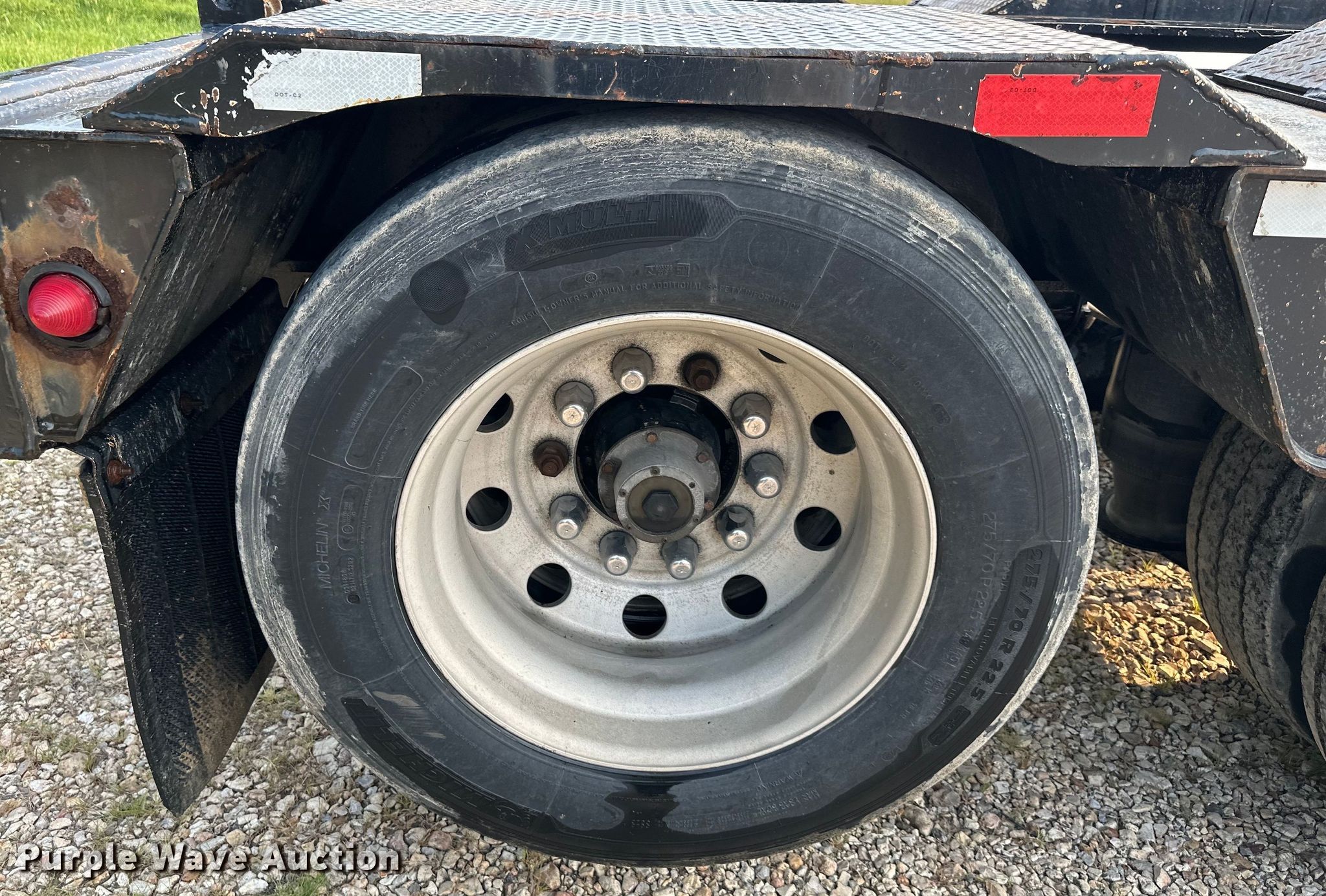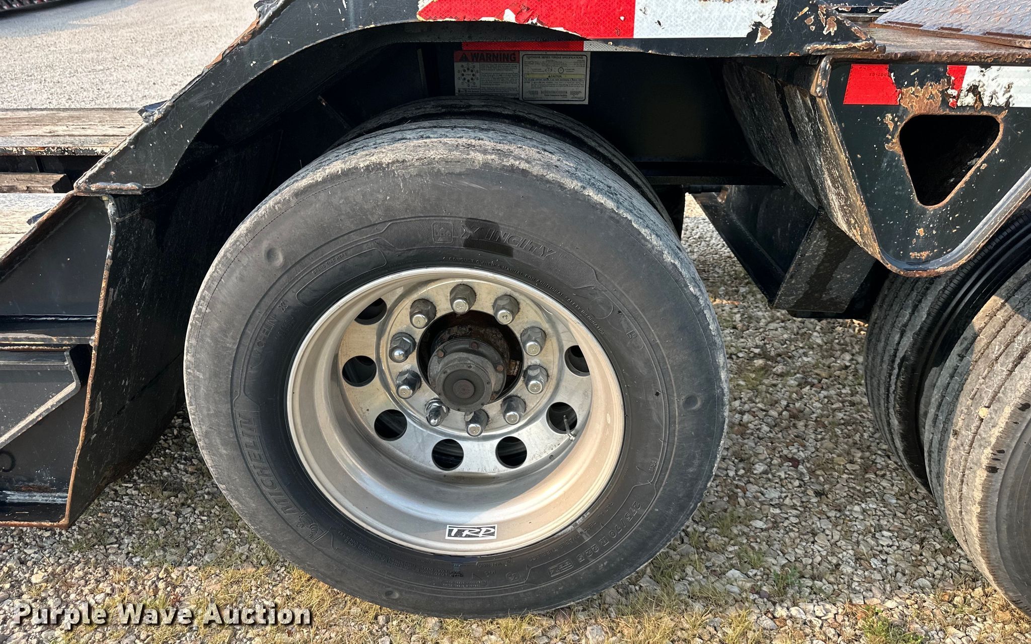 2006 Trail King TK110HDG-533 lowboy equipment trailer. VIN: 1TKJ053376M124185. Dimensions Overall: 52' L x 102" W, Deck: 25' 8" L x 102" W, Rear deck length: 14', Deck height: 24". Features Deck type: Wood, Outriggers: Swing-out, Neck type: Detachable. Chassis Suspension: Air, Brakes: Air, Axles: Triple, GVWR: 132,940 lbs, GAWR: 20,280 lbs. Tires Aluminum wheels, Size: 275/70R22.5. Kansas title. Title distribution may be delayed up to 14 days from verification of funds. Lynn's Heavy Hauling LLC. Olathe, KS 66061