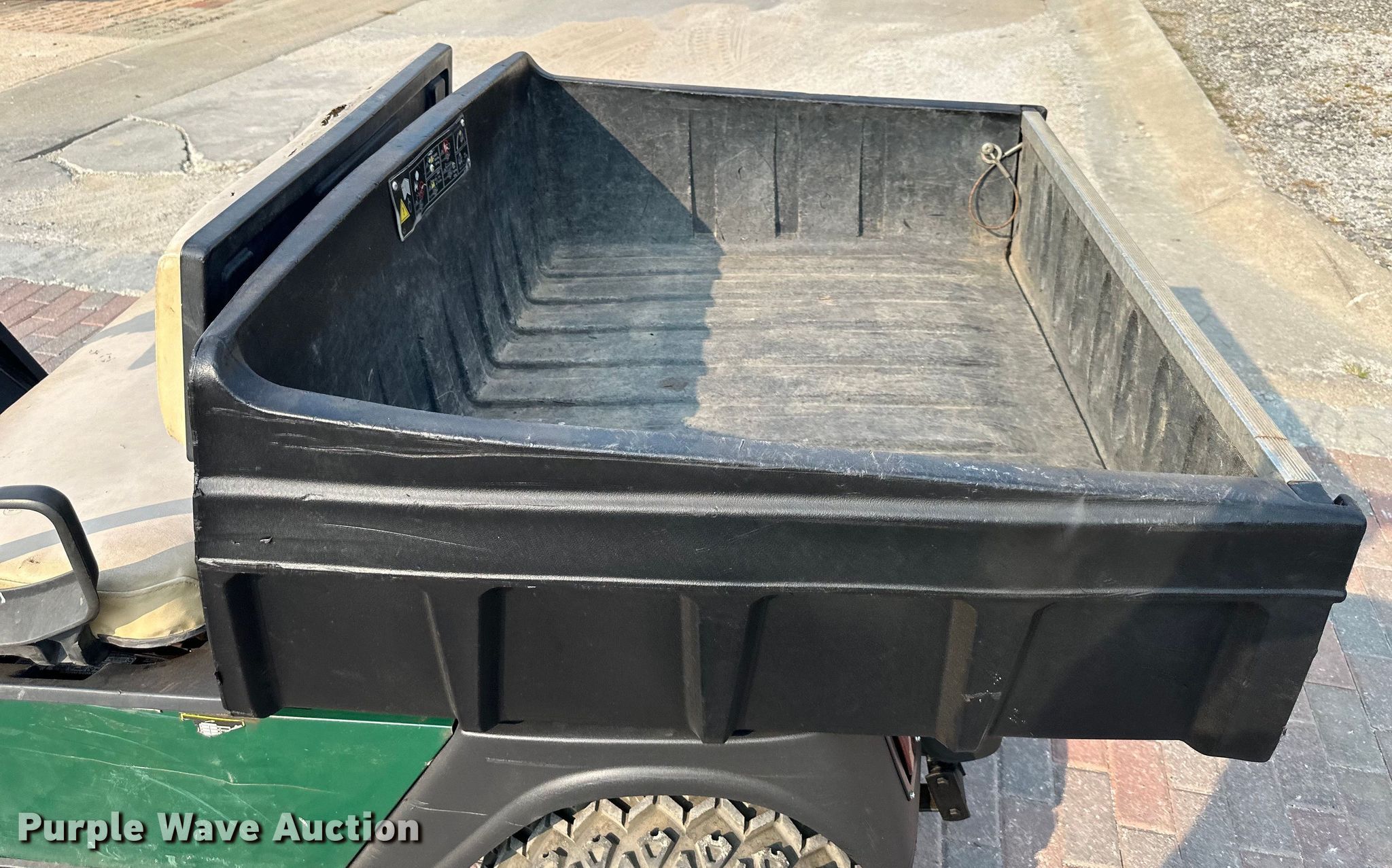 Club Car ST350 utility vehicle. Hours: 963 on meter, Serial: 2539343. Engine Cylinders: 2, Fuel type: Gas, Electric start. Transmission Automatic. Features Grille guard, Dump bed 40" L x 48" W, Dump bed type: Electric/ Hydraulic. Tires Size: 22x9.50-10. Transfer of ownership documentation will be a bill of sale. BC Hardscapes. Kansas City, MO 64119