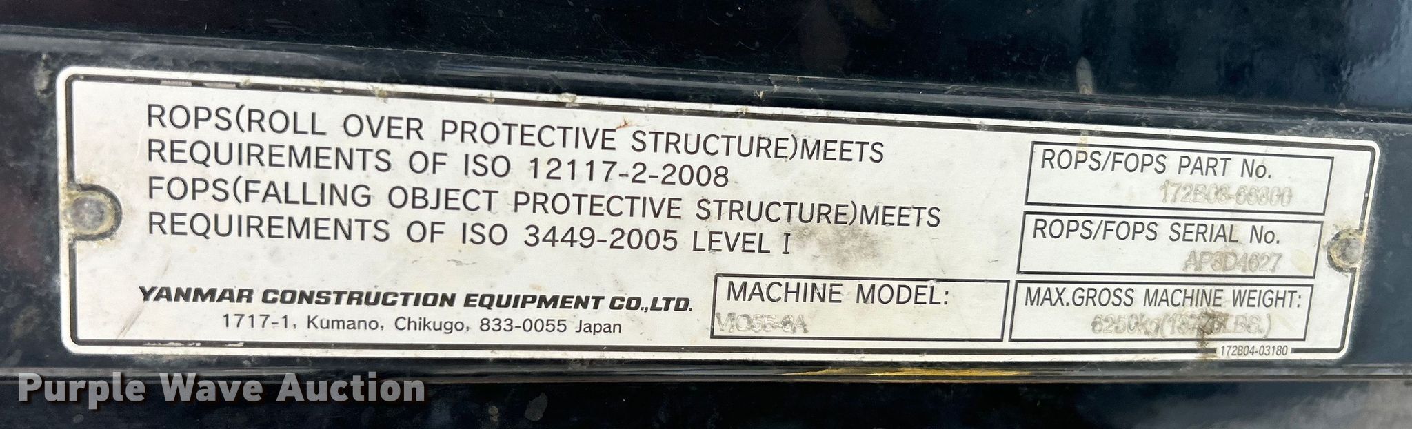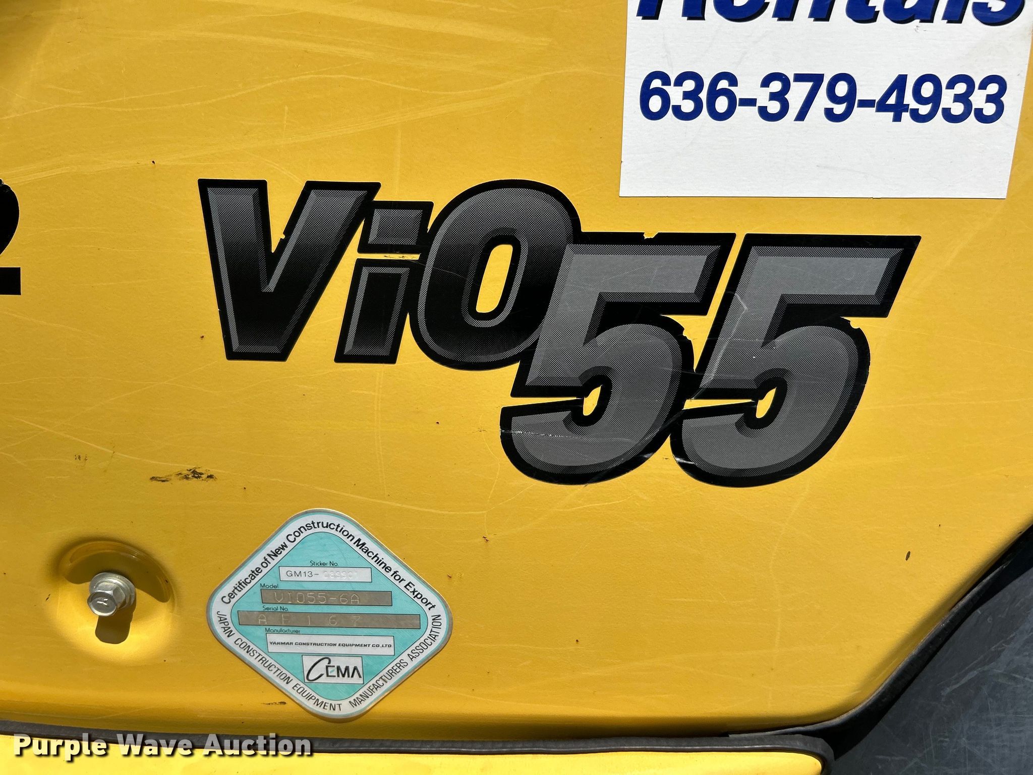 Purple Wave is selling a used Mini Excavator in Missouri. This item is a 2017 Yanmar ViO55-6A mini excavator with the following: Hours: 2,011 on meter, Serial: YMRVIO55PHAJAF167