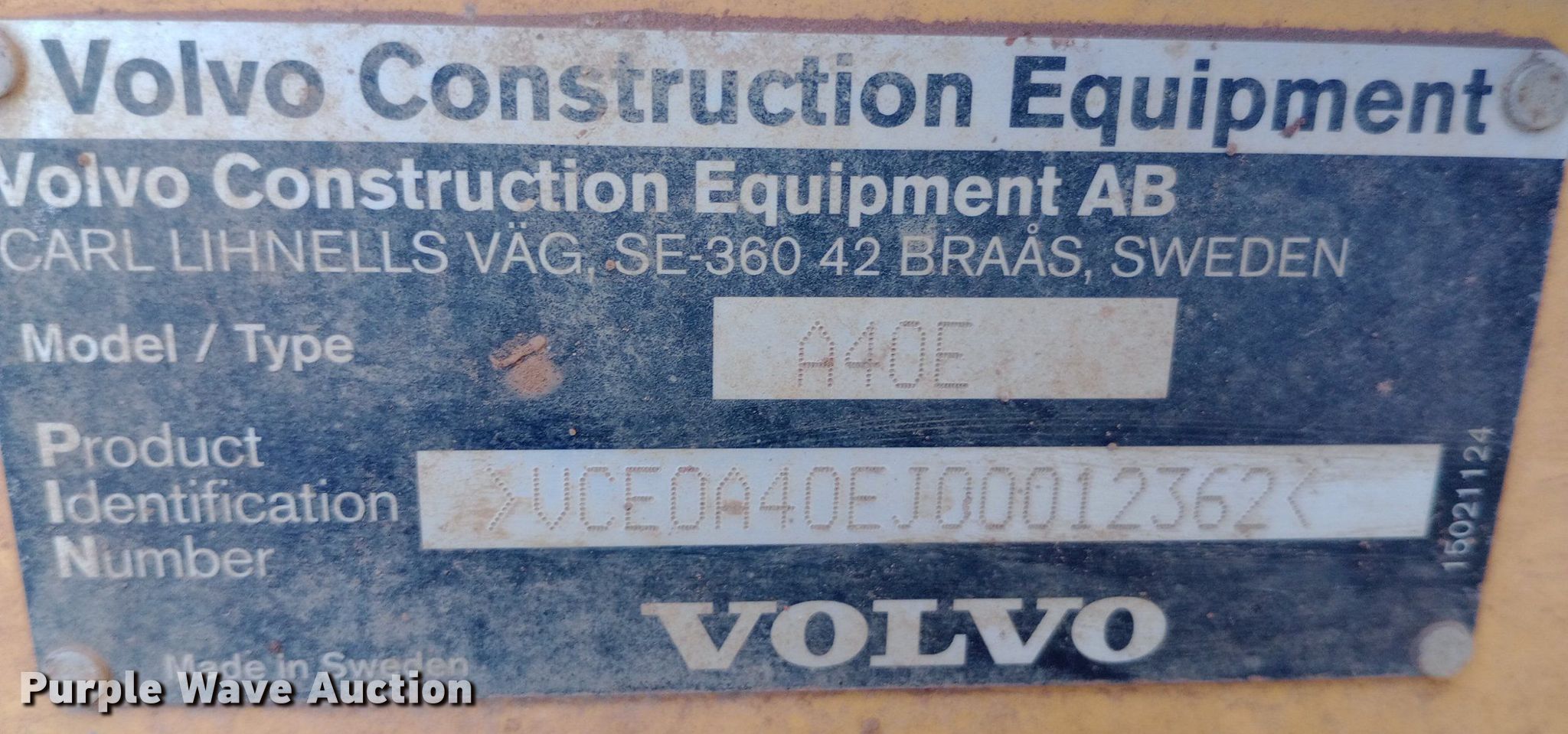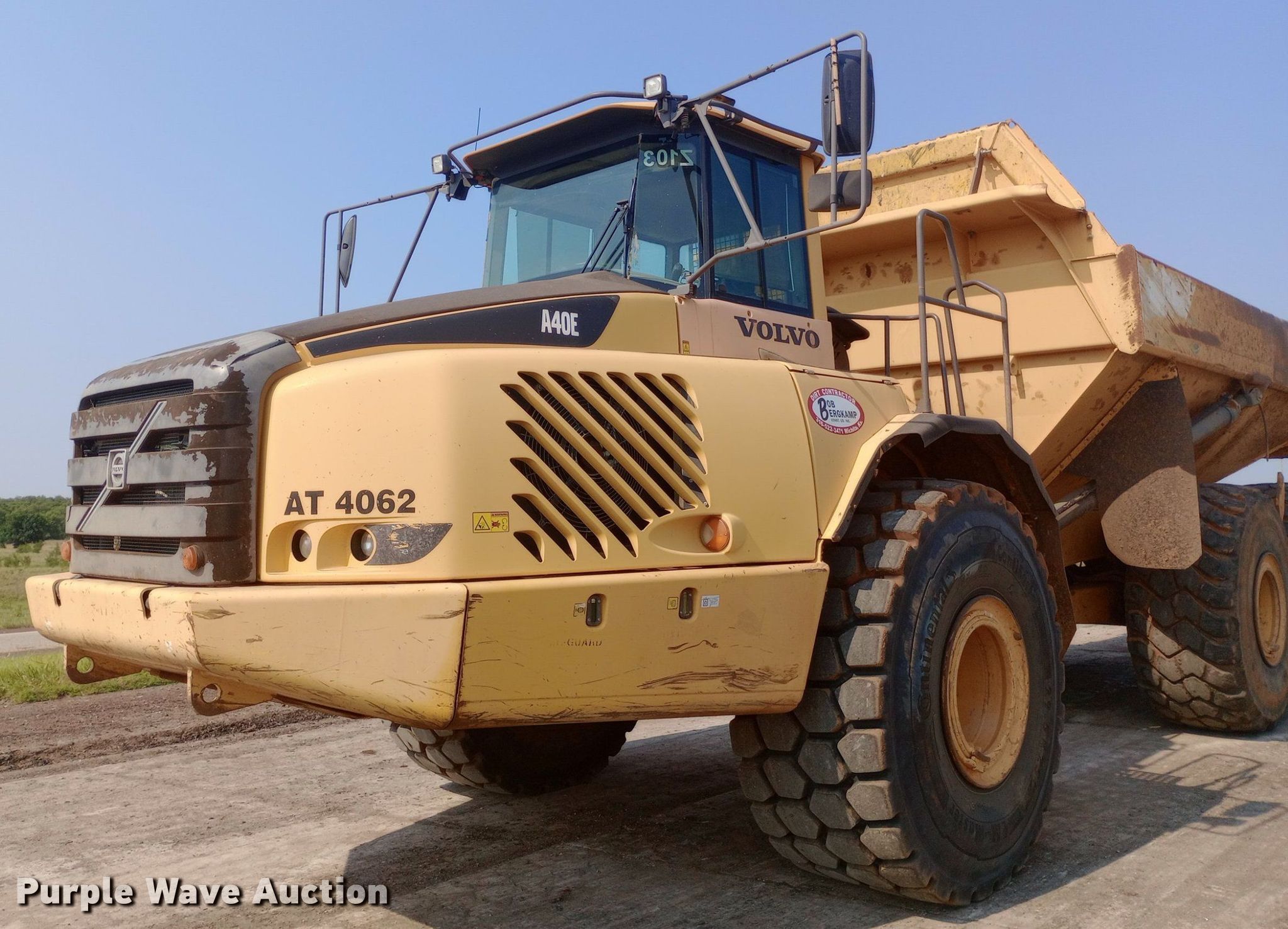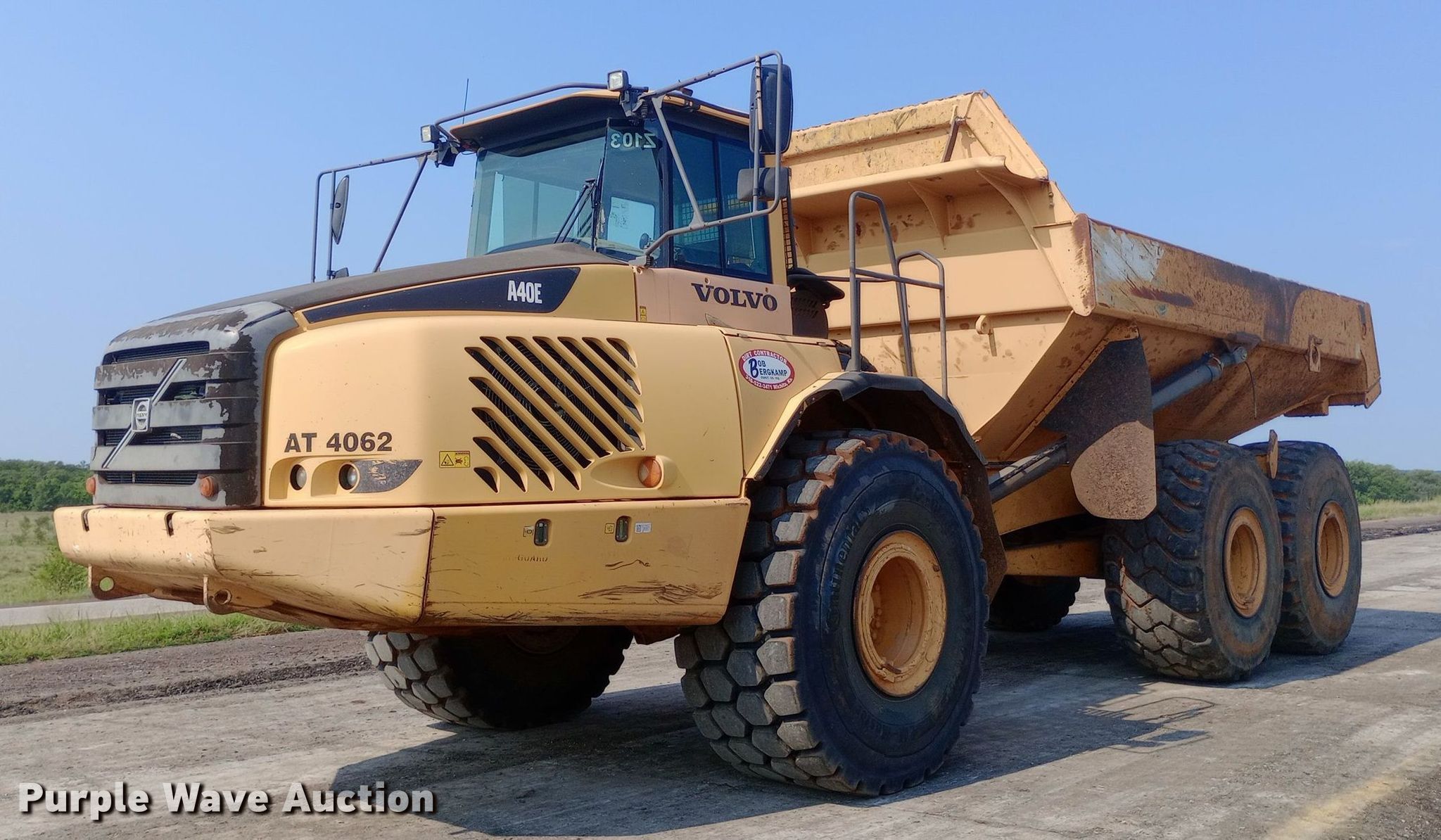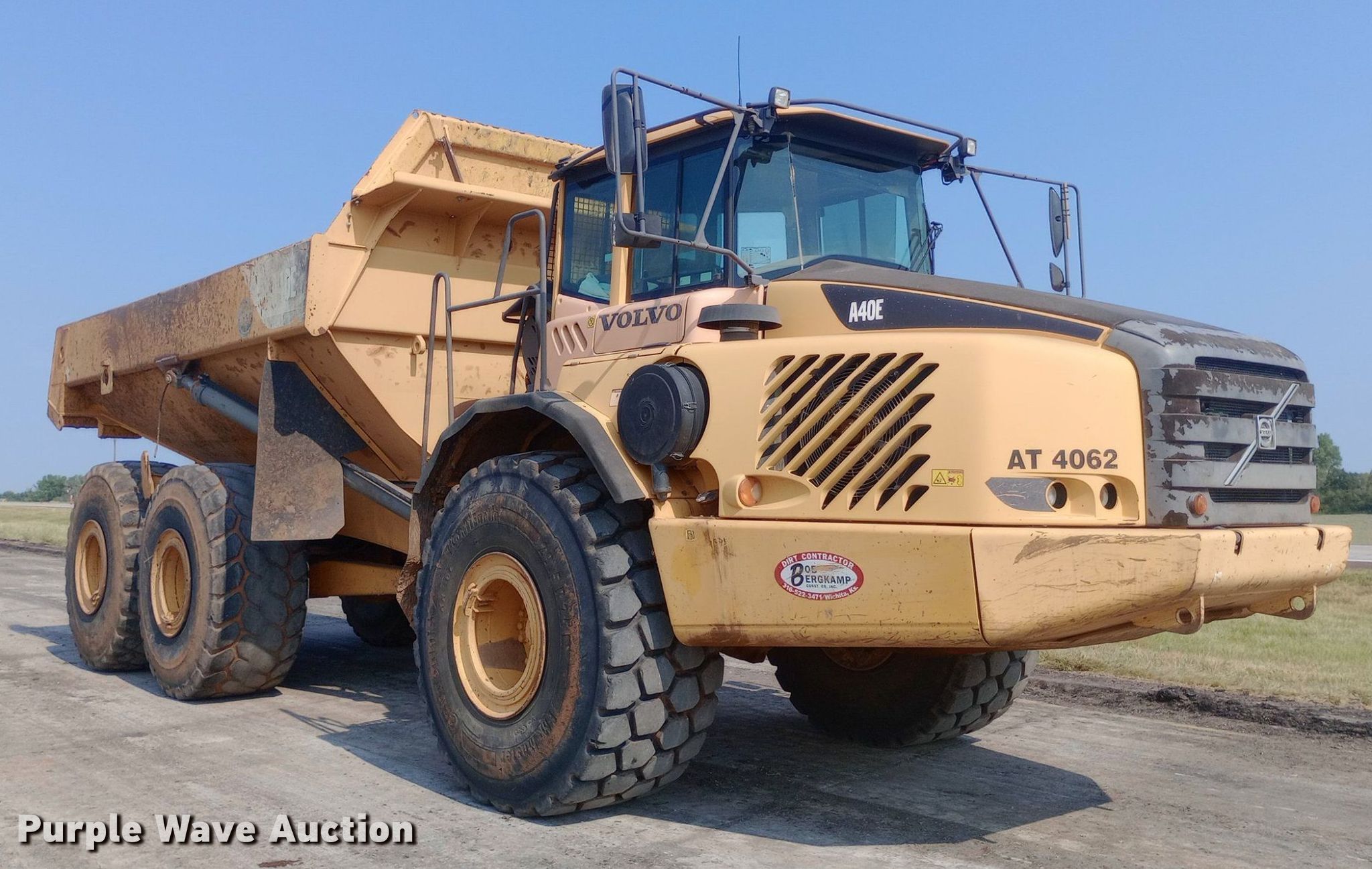 Purple Wave is selling a used Articulated Haul Truck in Kansas. This item is a 2009 Volvo A40E haul truck with the following: Hours: 13,269 on meter, Serial: VCE0A40EJ00012362, Unit #: AT4062