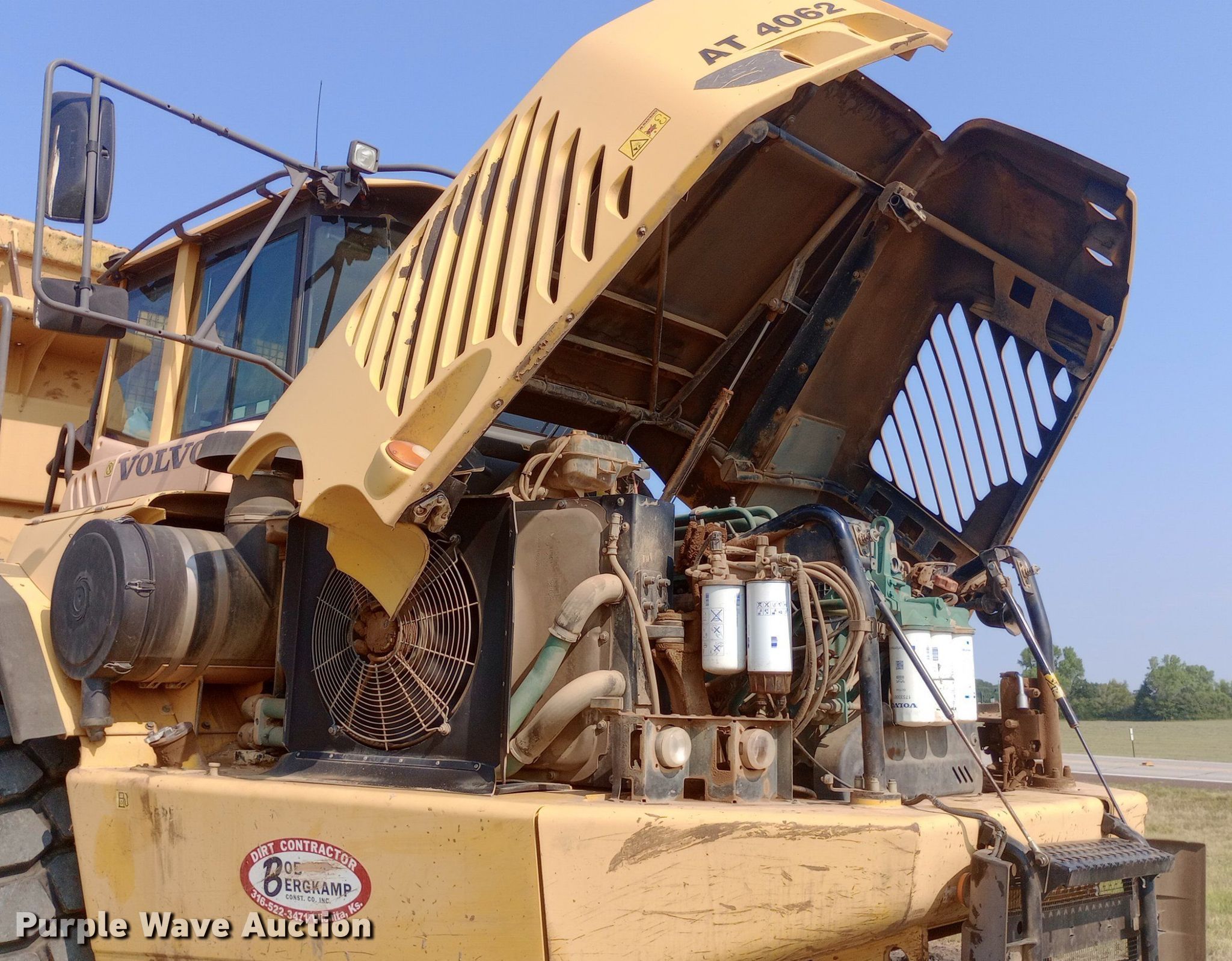 2009 Volvo A40E haul truck. Hours: 13,269 on meter, Serial: VCE0A40EJ00012362, Unit #: AT4062. Engine Volvo D16E, Serial: 34787, Displacement: 16.1L, Cylinders: 6, Fuel type: Diesel, kW: 350. Transmission Automatic. Chassis Six wheel drive. Interior AC, Heat, Retarder. Features Dump bed Capacity: 30.3 cu.yd.. Tires Size: 29.5R25. Bob Bergkamp Construction. Evan, KS 67111