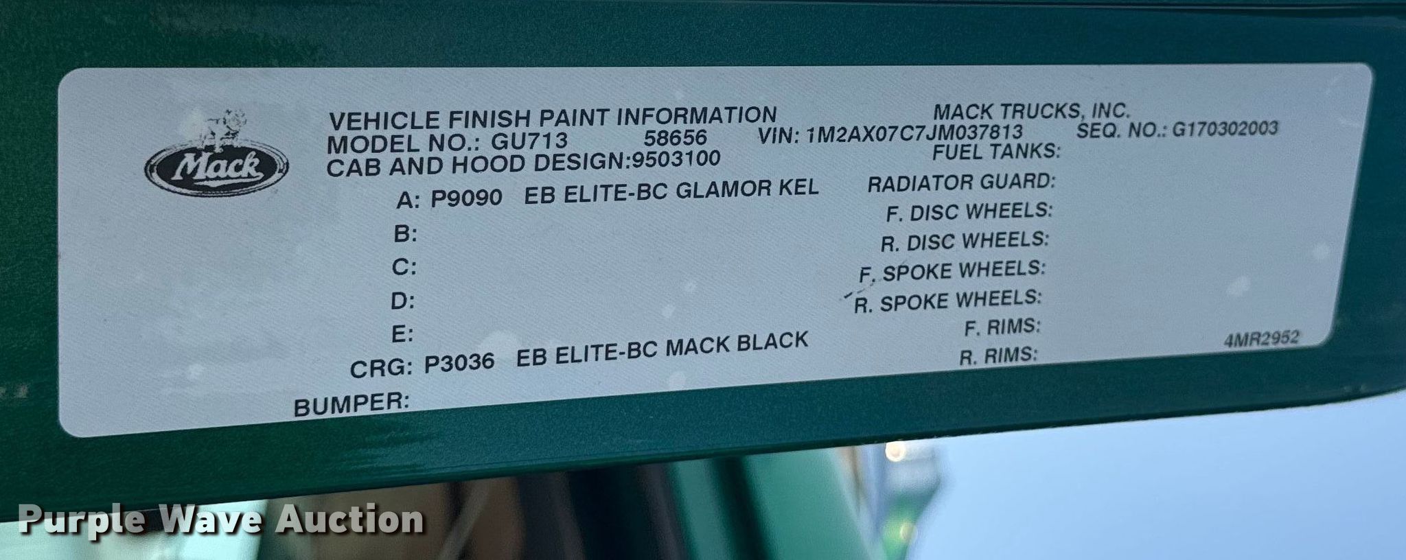 • OF9880 image for item OF9880 2018 Mack GU713 dump truck