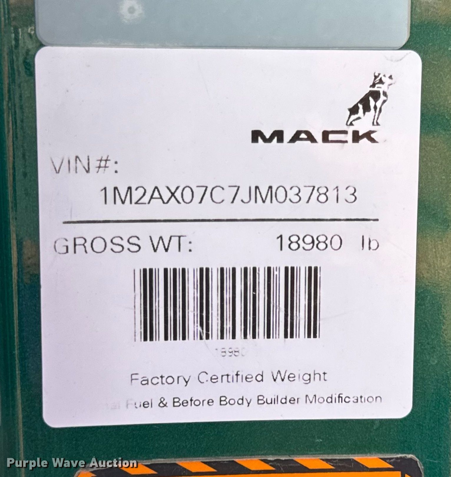 Purple Wave is selling a used Construction Dump Truck in Missouri. This item is a 2018 Mack GU713 dump truck with the following: Miles: 131,338 on odometer, Hours: 8,571 on meter, VIN: 1M2AX07C7JM037813