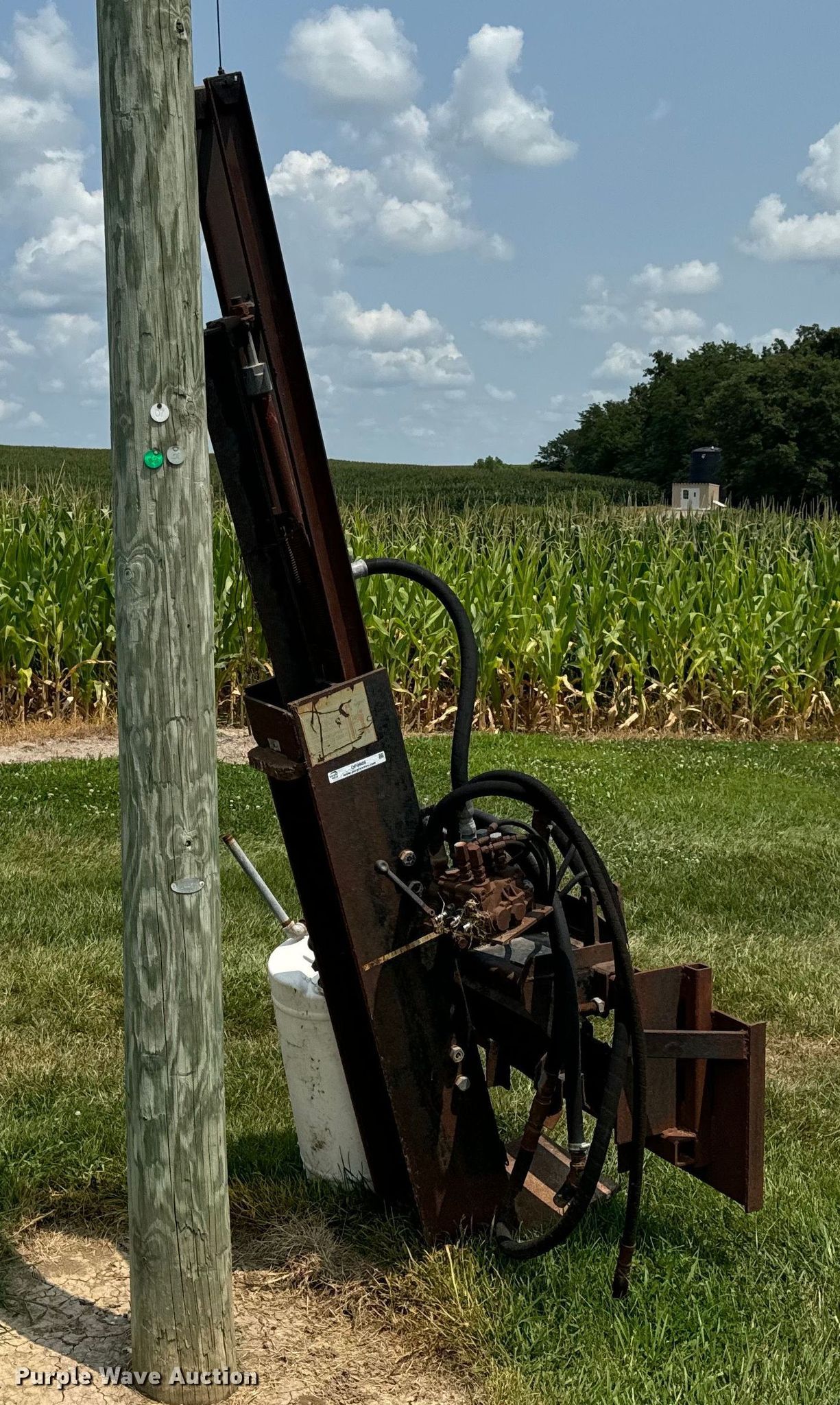 Shaver HD10 skid steer post driver. Unknown operating condition. Heins Family Farms, LLC. Higginsville, MO 64037