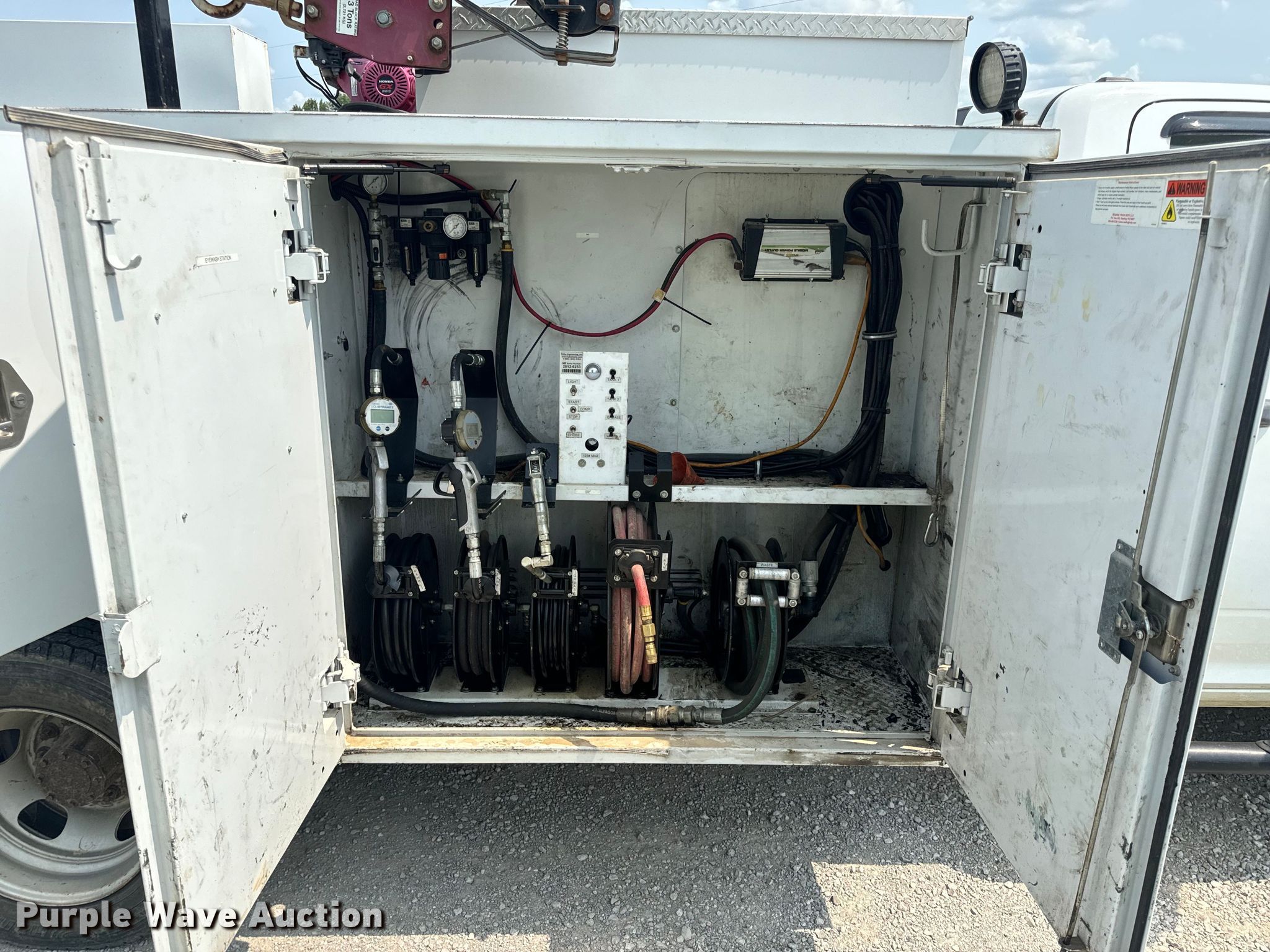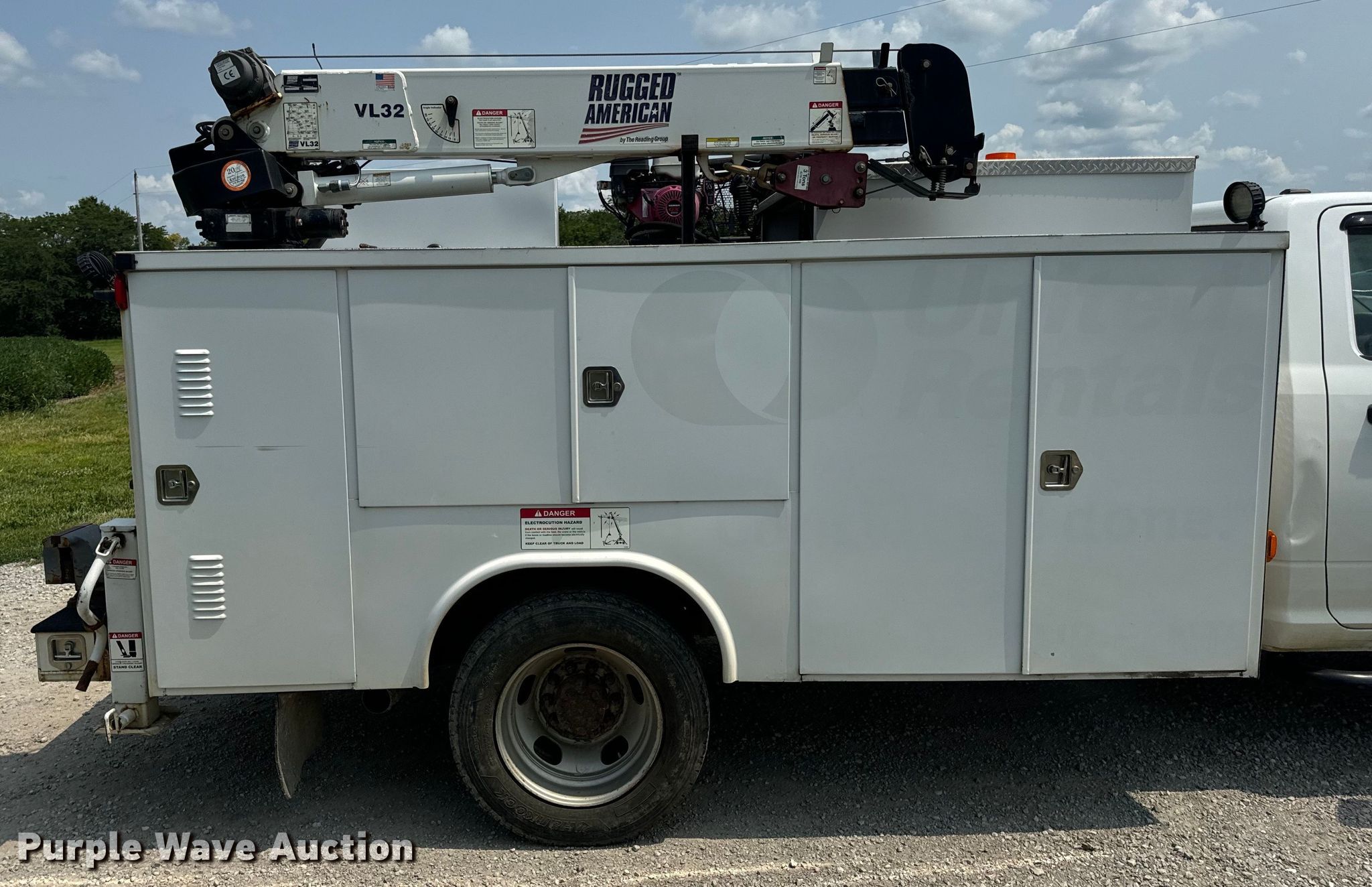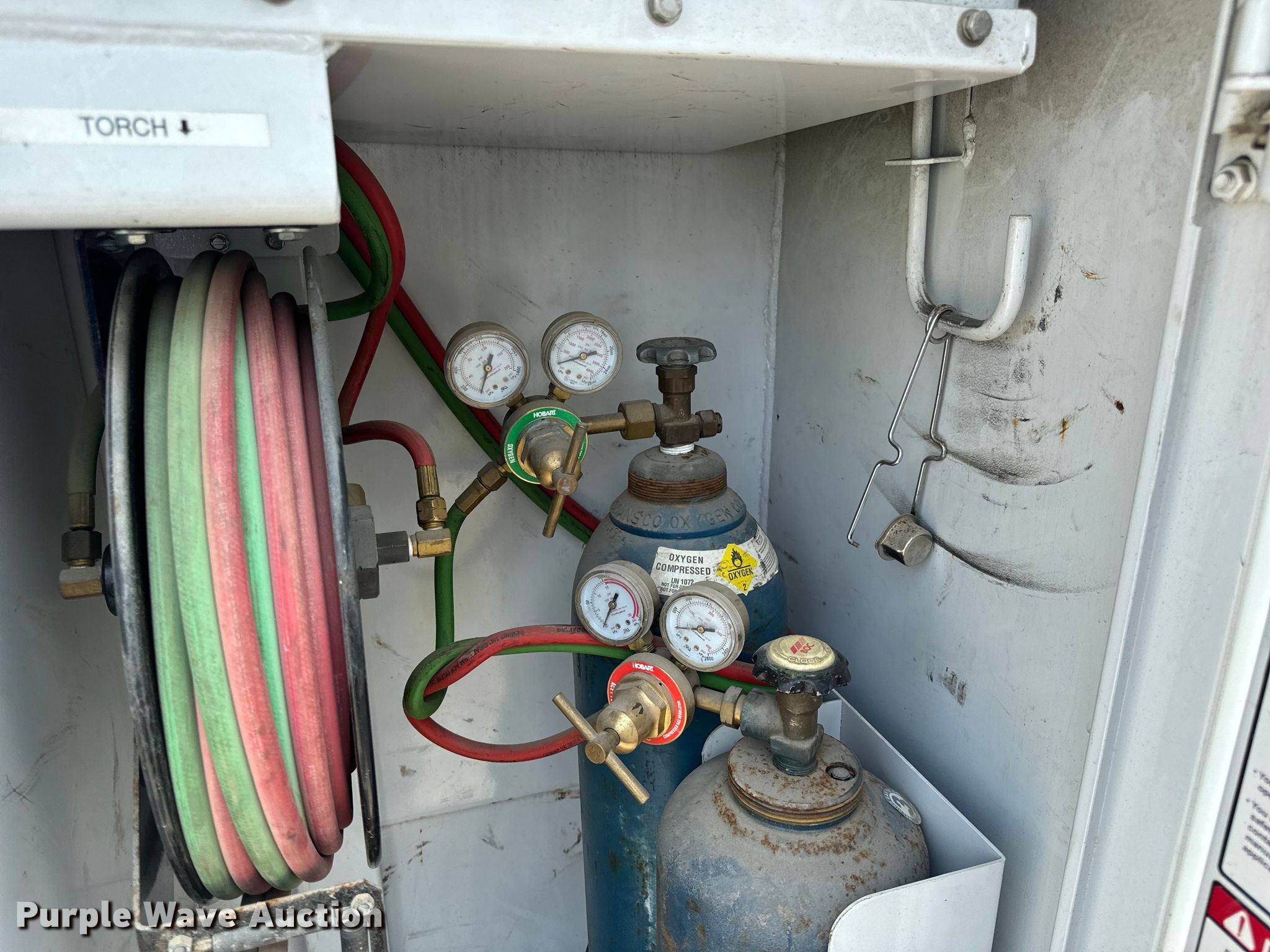 2012 Dodge Ram 5500HD utility / service truck. Miles: 218,863 on odometer, Hours: 12,344 on meter, VIN: 3C7WDNBL0CG186760. Engine Cummins, Displacement: 6.7L, Cylinders: 6, Fuel type: Diesel. Transmission Automatic. Chassis Four wheel drive, Axles: Single, Suspension: Spring, Brakes: Hydraulic, PTO, Wet kit, GVWR: 19,500 lbs. Interior AC, Heat, Cruise control, Auxiliary controls, Brake controller, Backup camera. Features Bed Reading UR132ADW, 11' L x 95" W, Torch bottle rack, Air compressor Model: TUK-130HGE, Honda GX390, Oil/lube system Make: LubeMate, Hose reels, Nozzles, Pump, Reservoirs Hydraulic fluid, Grease, Motor oil, Used oil, Crane Rugged American VL32, Maximum boom length: 16.2' Maximum lift capacity: 3,200 lbs, Oxygen and acetylene tanks Cutting torch, Hose, Regulators. Tires Size: 225/70R19.5. Missouri title. Smi-Co Construction. Concordia, MO 64020