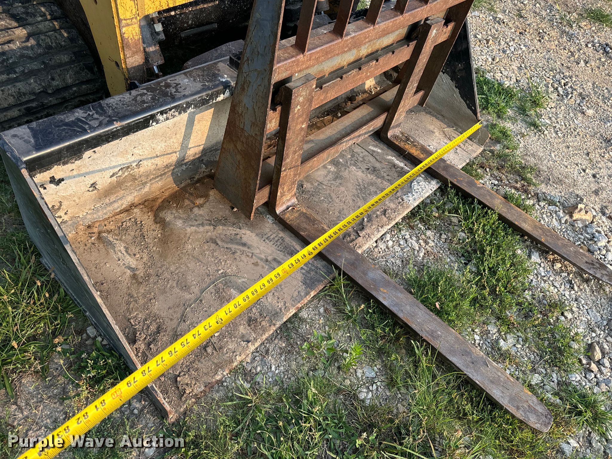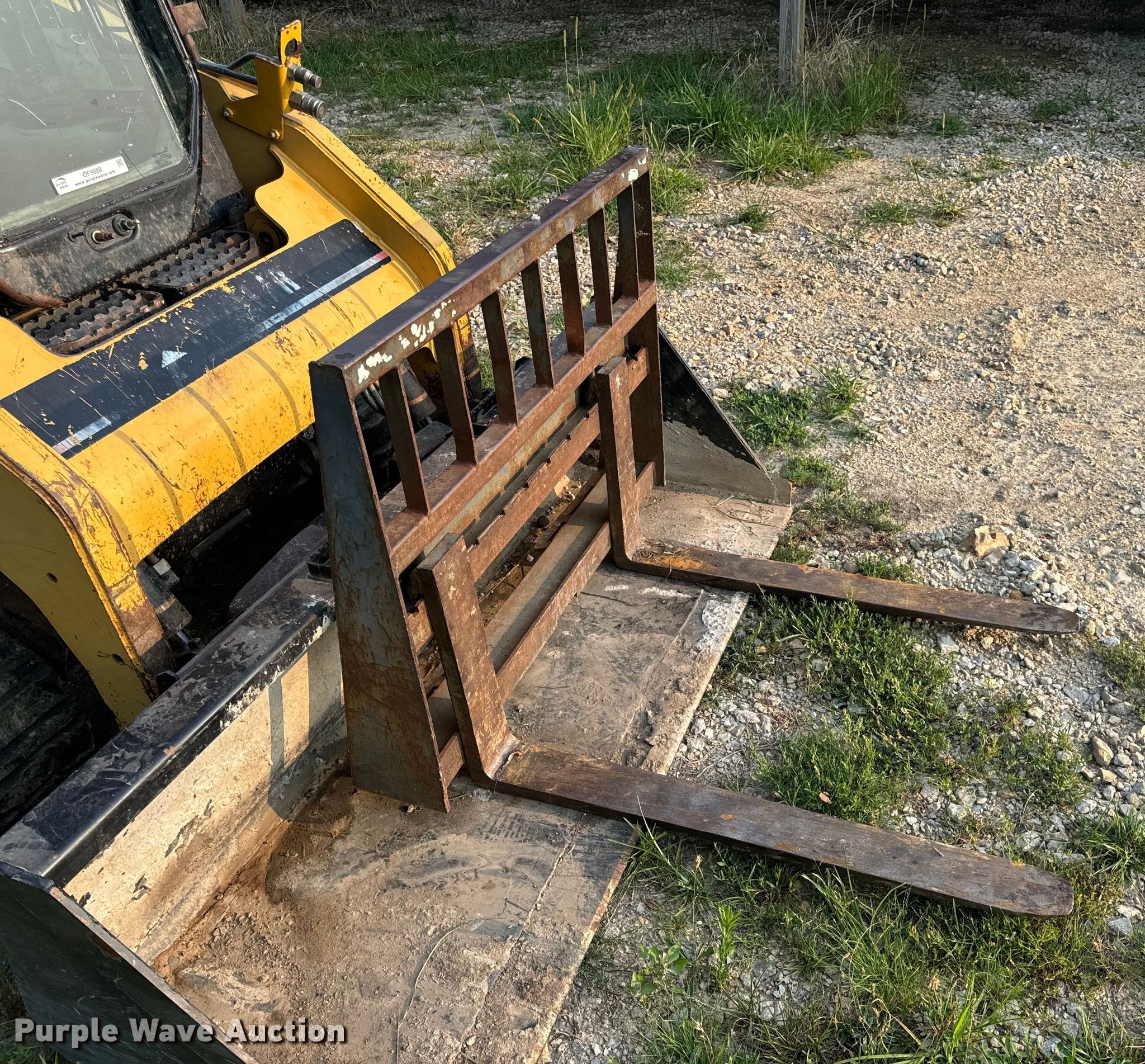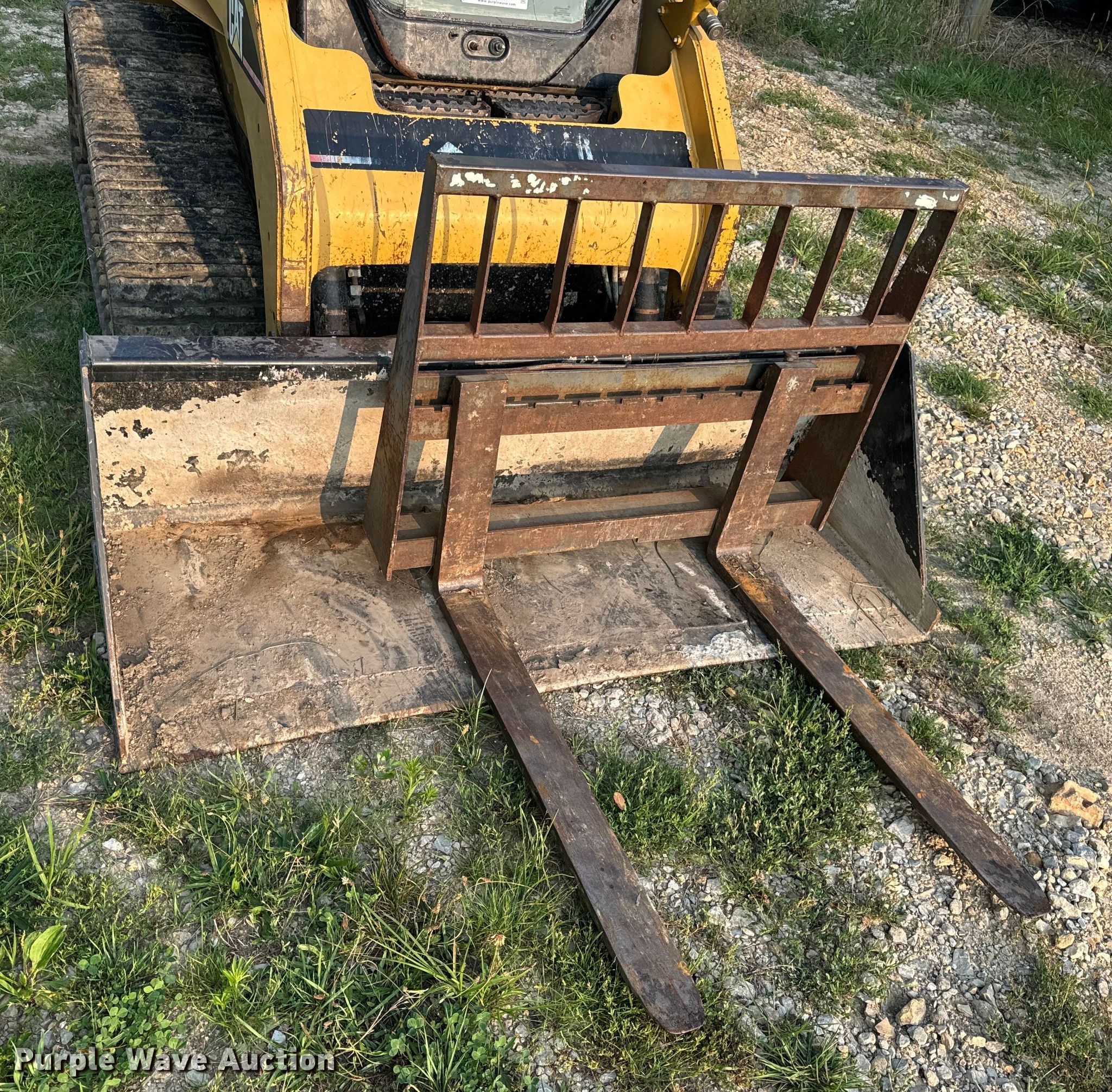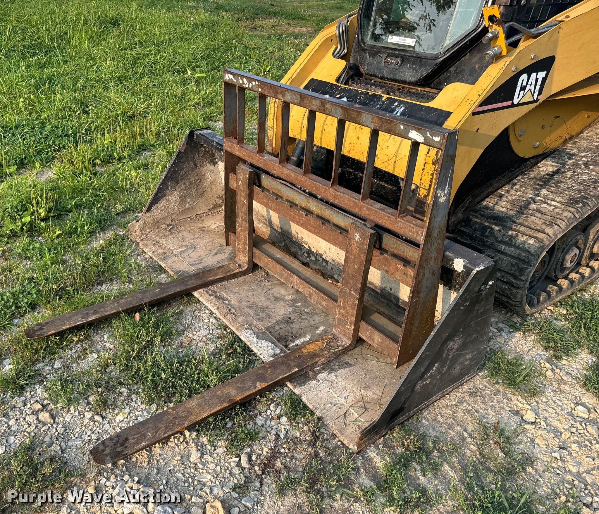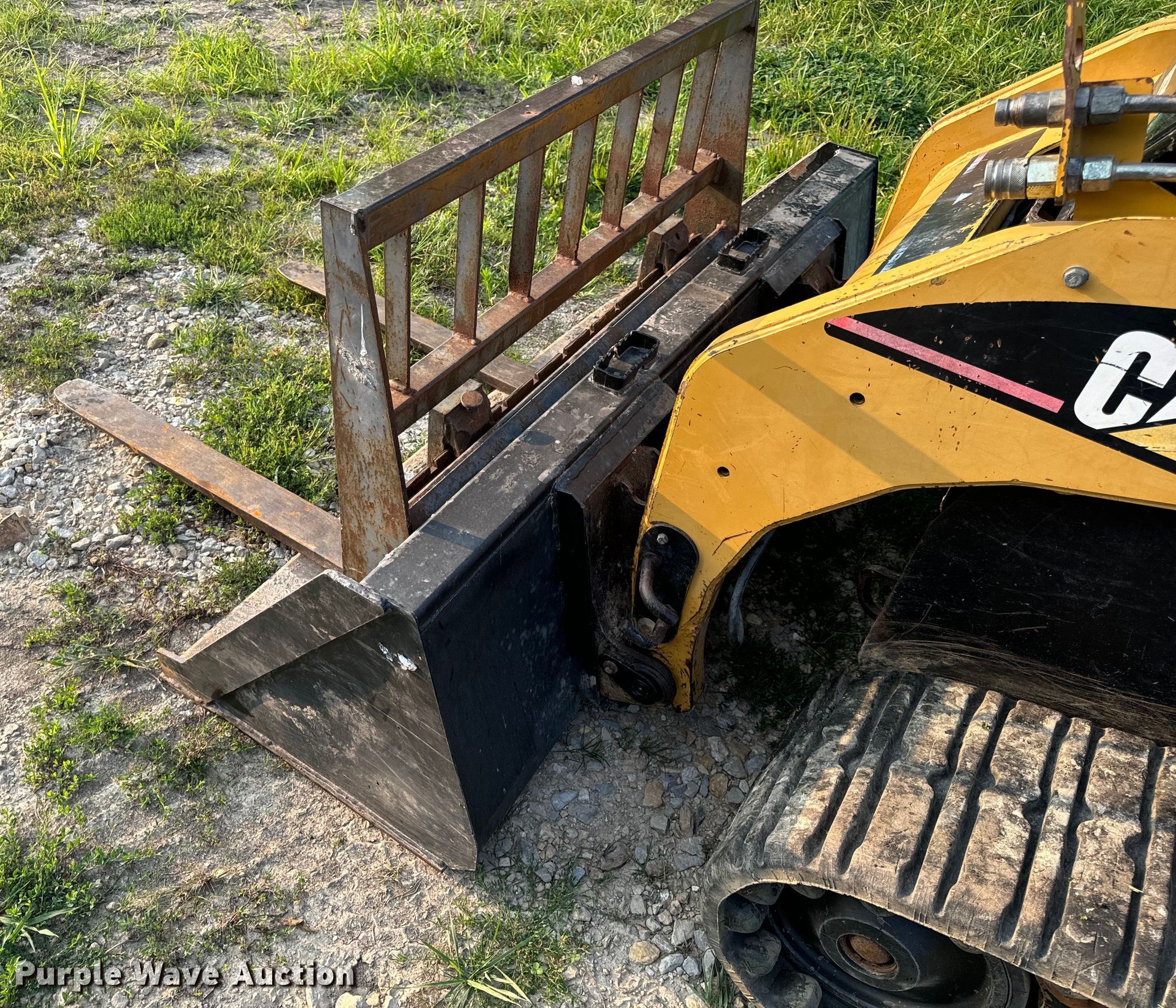 2004 Caterpillar 257B tracked skid steer loader. Hours: 2,346 on meter, Serial: CAT0257BASLK00799. Engine Caterpillar, Cylinders: 4, Fuel type: Diesel. Transmission Hydrostatic. Operators station Enclosed cab, AC, Heat, Bucket control: Hand. Features Auxiliary hydraulics, Quick coupler: Hydraulic, Bucket Width: 73", Cutting edge: Weld-on, Forks Length: 42". Tracks Width: 14.5". Notes Glass cracked, Windshield wiper arm, missing, AC issues, does not blow cold, Left track issues, embeds missing. Zach Fischer. Mokane, MO 65059