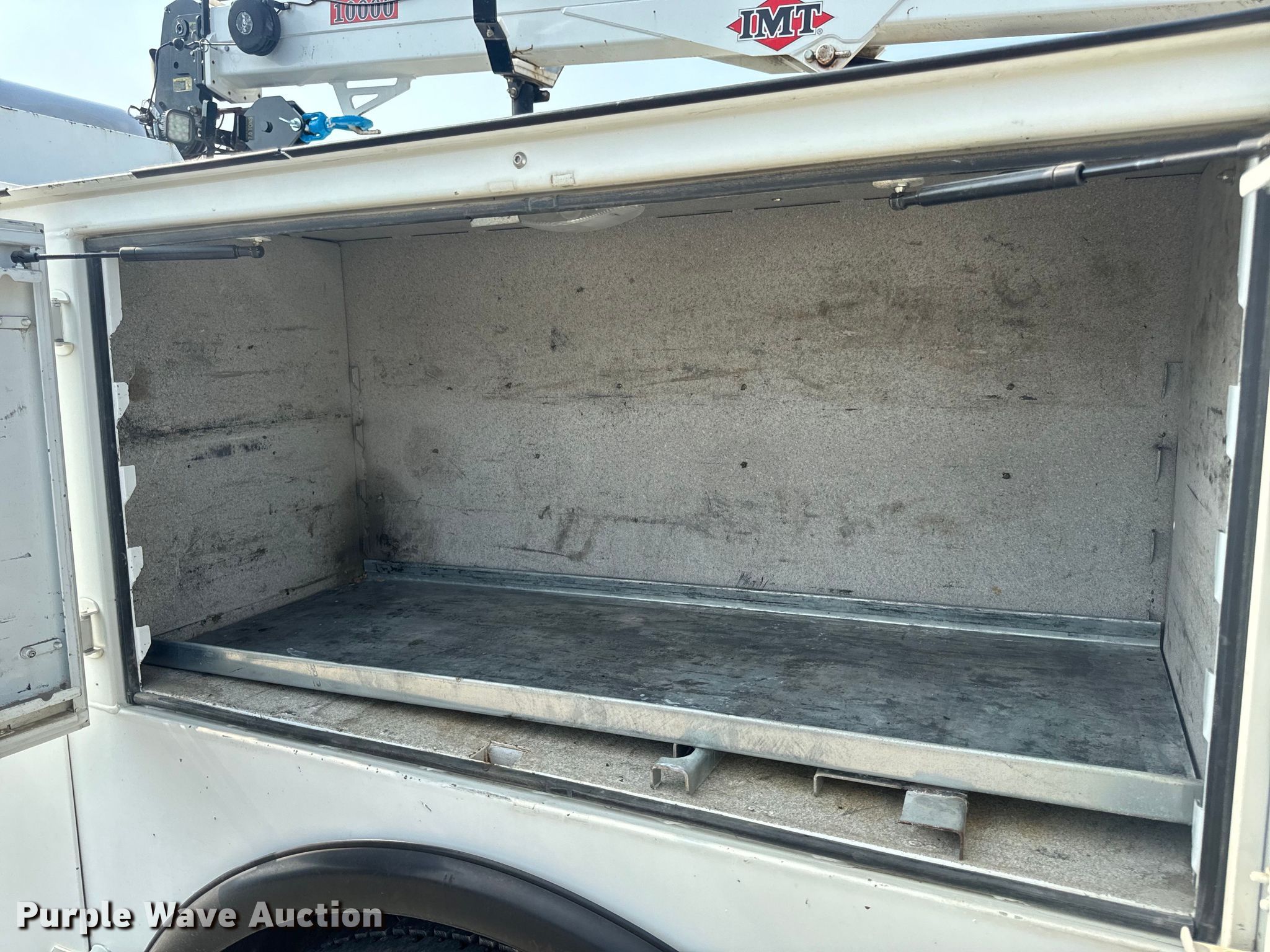 2013 Peterbilt 337 utility / service truck. Miles: 284,595 on odometer, Hours: 10,516 on meter, VIN: 2NP2HN7X4DM201161, Unit #: 5-057. Engine Paccar PX-8, Serial: 73423569, Displacement: 8.3L, Cylinders: 6, Fuel type: Diesel. Transmission Eaton Fuller Synchro-6, Manual, Speed: 6. Chassis Axles: Single, Suspension: Spring, Brakes: Air, PTO, GVWR: 33,000 lbs. Interior AC, Heat, Cruise control. Features Bed IMT DOM2S3 J934947, 13' 18" L x 95" W, Torch bottle rack, Air compressor IMT CAS40P, Oil/lube system Reservoirs, Fuel tank Fill-Rite fuel transfer pump GPM: 15., Crane IMT 10000-30, Maximum boom length: 32' Maximum lift capacity: 10,000 lbs.. Tires Size: 11R22.5. Missouri title. Title distribution may be delayed up to 30 days from verification of funds. Emery Sapp & Sons, Inc... Columbia, MO 65202