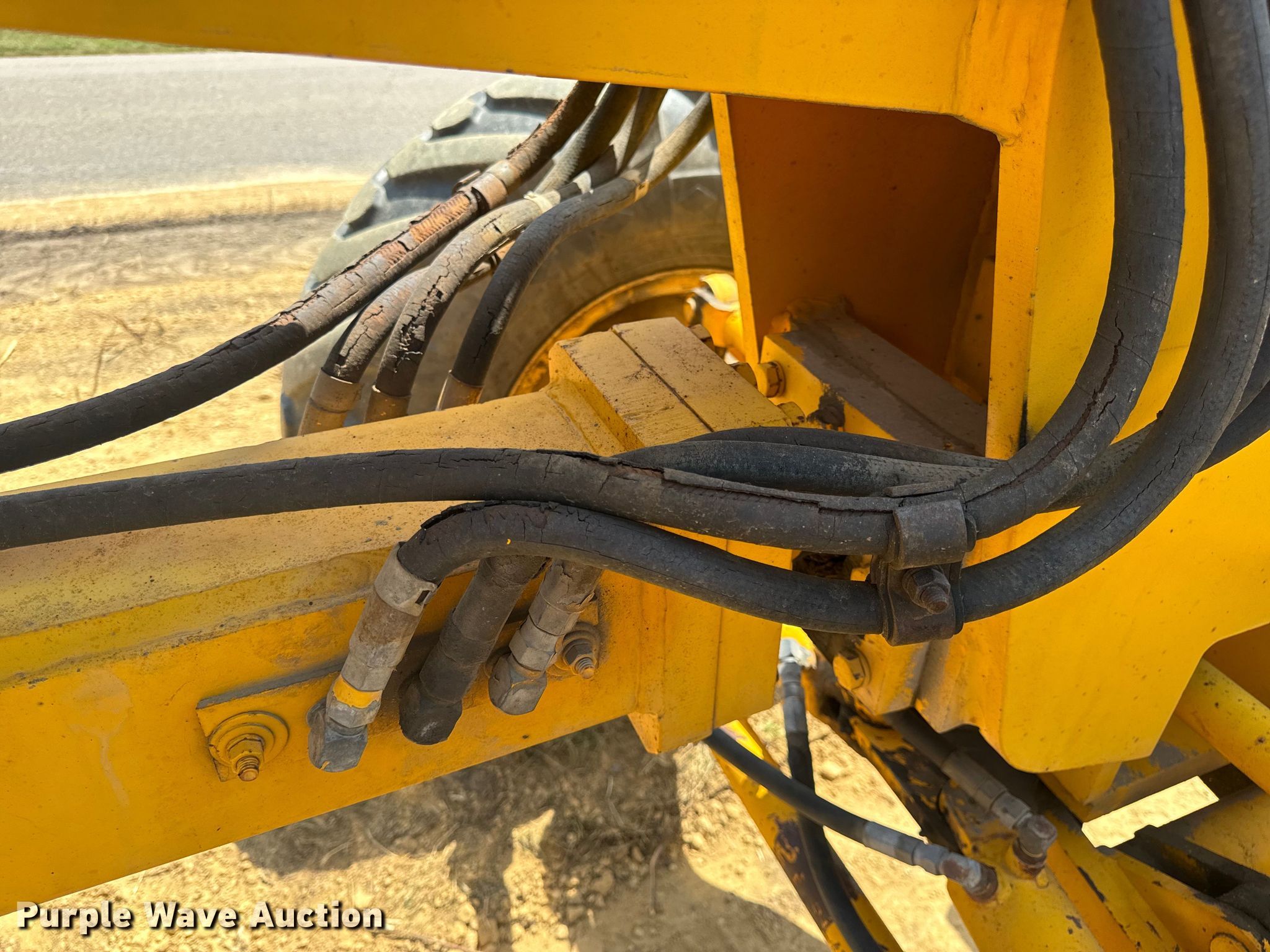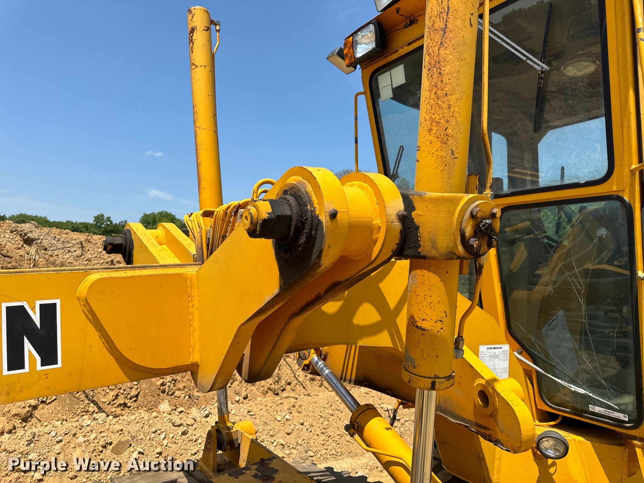 1985 Champion 730A motor grader. Hours: 6,187 on meter, Miles or hours may vary, unit still in use, Serial: 730A-137-27-16657. Engine Cummins VT-504-C, Serial: 20241022, Displacement: 504 C.I.D, Cylinders: 6, Fuel type: Diesel, HP: 193. Transmission Powershift. Chassis Differential lock. Operators station Enclosed cab, Heat, Hydraulic control valves: 8. Features Moldboard: Tip control, Side shift, Moldboard total width: 14', Front-mounted lift group Make: Balderson. Tires Size: 14.00-24. Notes Glass cracked, Unknown operating condition of front mounted lift group, hoses not connected, Side shift cylinder issues, leak, Chain not included, Brake line issues. Parker Construction Inc.. Warrensburg, MO 64093