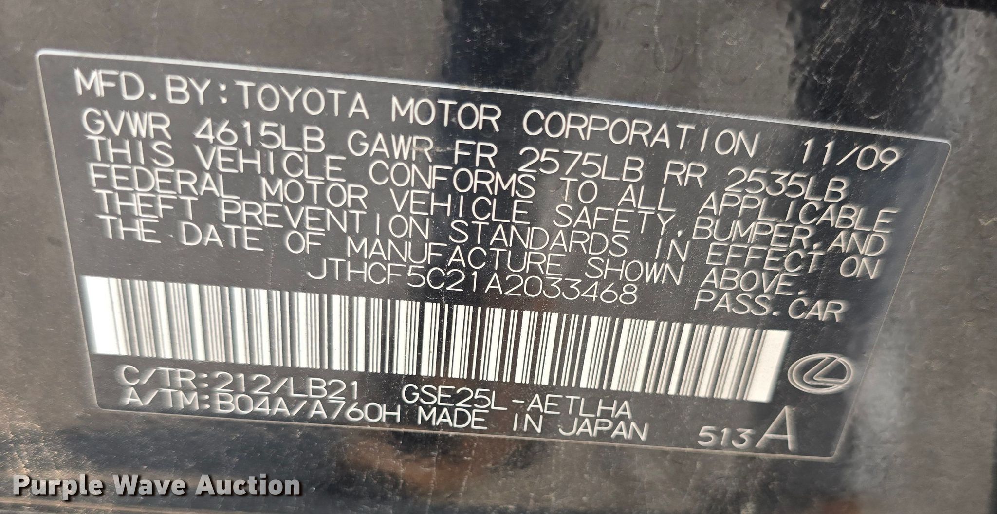 Purple Wave is selling a used Passenger Vehicle in Kansas. This item is a 2010 Lexus IS250 with the following: Miles: 205,738 on odometer, VIN: JTHCF5C21A2033468