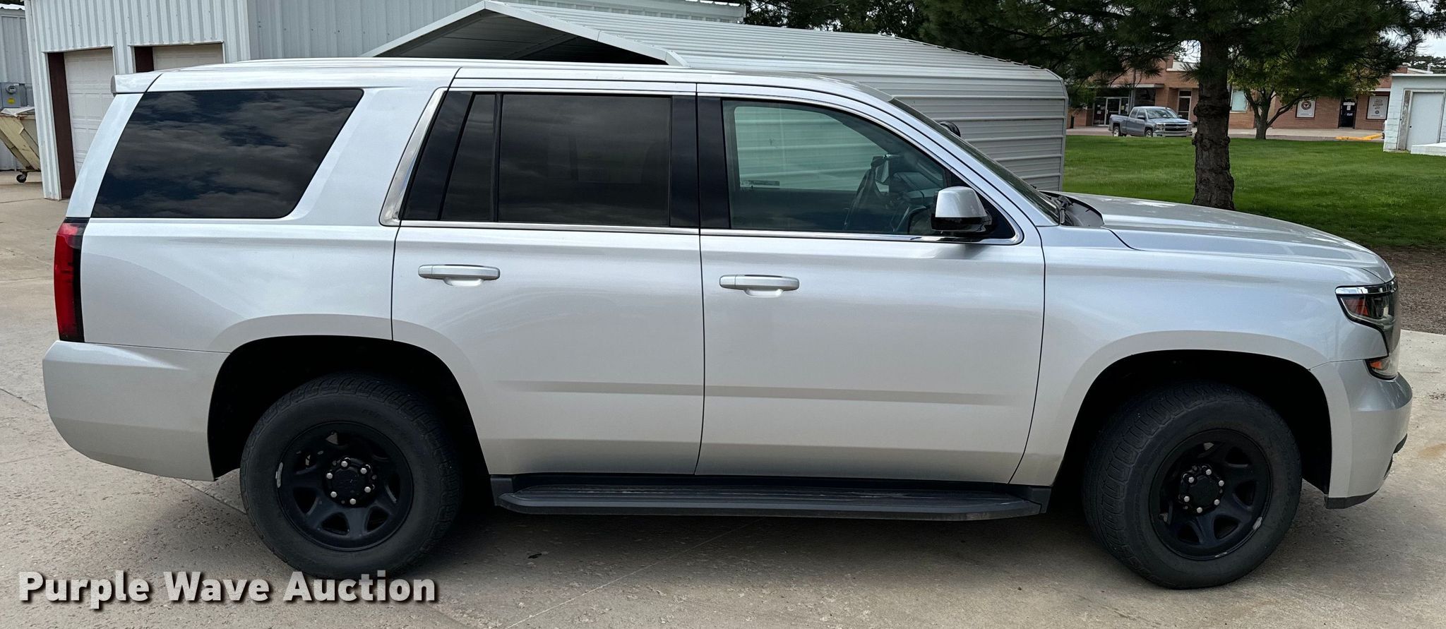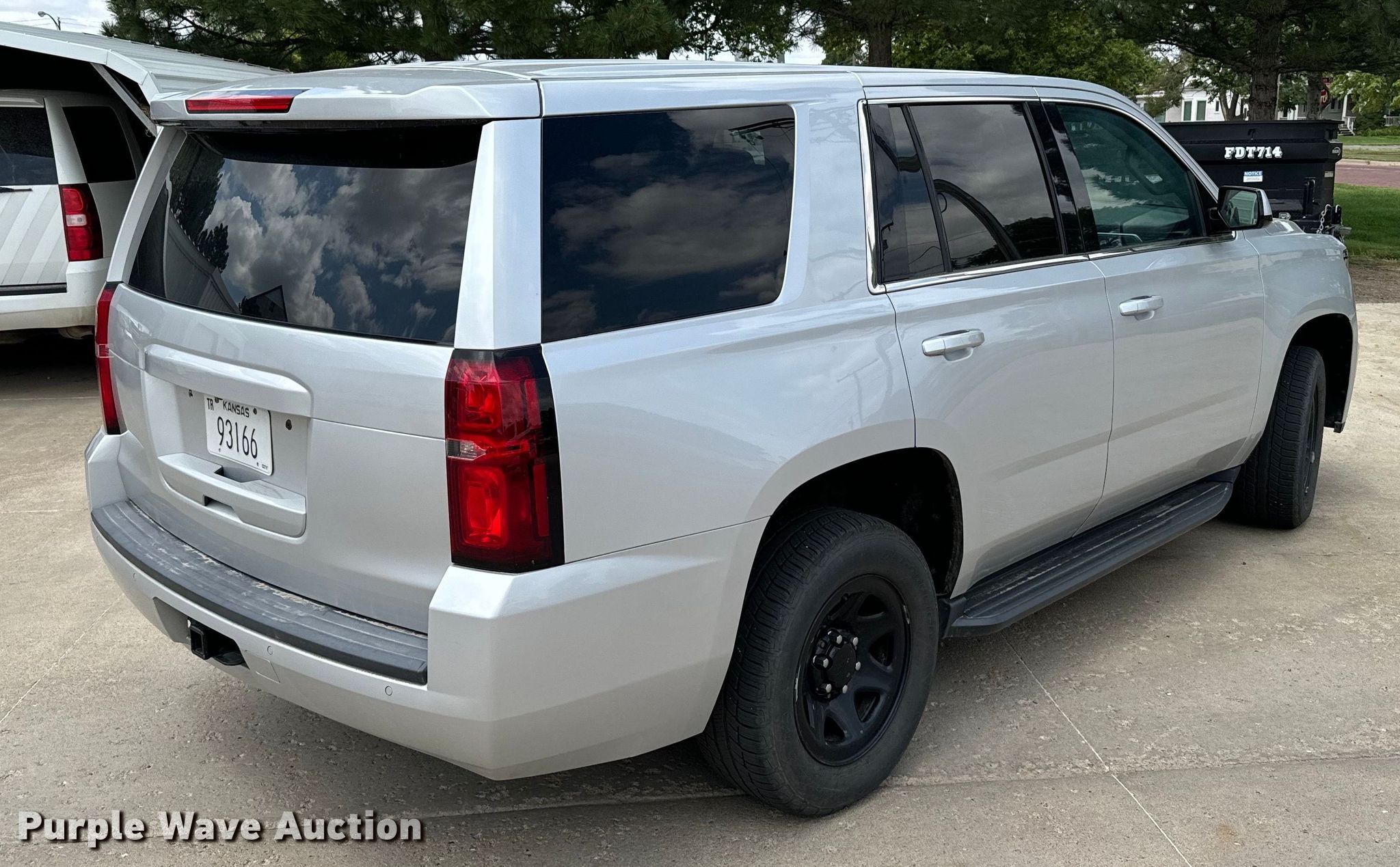 Purple Wave is selling a used Passenger Vehicle in Kansas. This item is a 2018 Chevrolet Tahoe Police SUV with the following: Miles: 64,414 on odometer, Hours: 7,689 on meter, VIN: 1GNSKDEC2JR290811