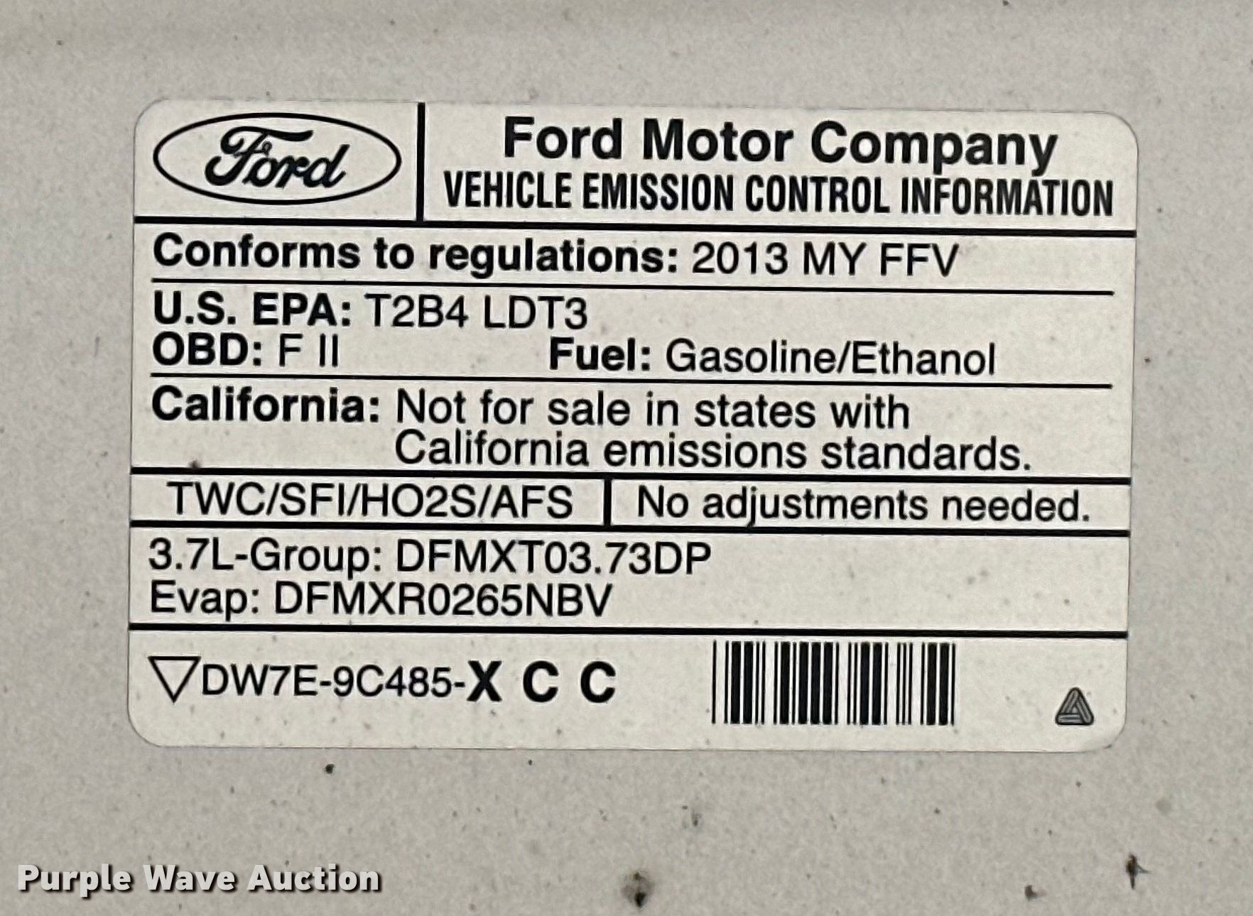 2013 Ford F150 SuperCab pickup truck. Miles: 128,752 on odometer, VIN: 1FTEX1CMXDFA68881, Unit #: 839. Engine Displacement: 3.7L V6 DOHC, Cylinders: 6, Fuel type: Gas. Transmission Automatic. Interior AC, Heat. Tires Size: 235/75R17. Notes Windshield chipped or cracked. Oklahoma title. Seller is a government entity who will be assigning and distributing the title. Please contact the seller for distribution questions. Title distribution may be delayed up to 30 days from verification of funds. City of Tulsa. 108 N Trenton Ave. Tulsa, OK 74120