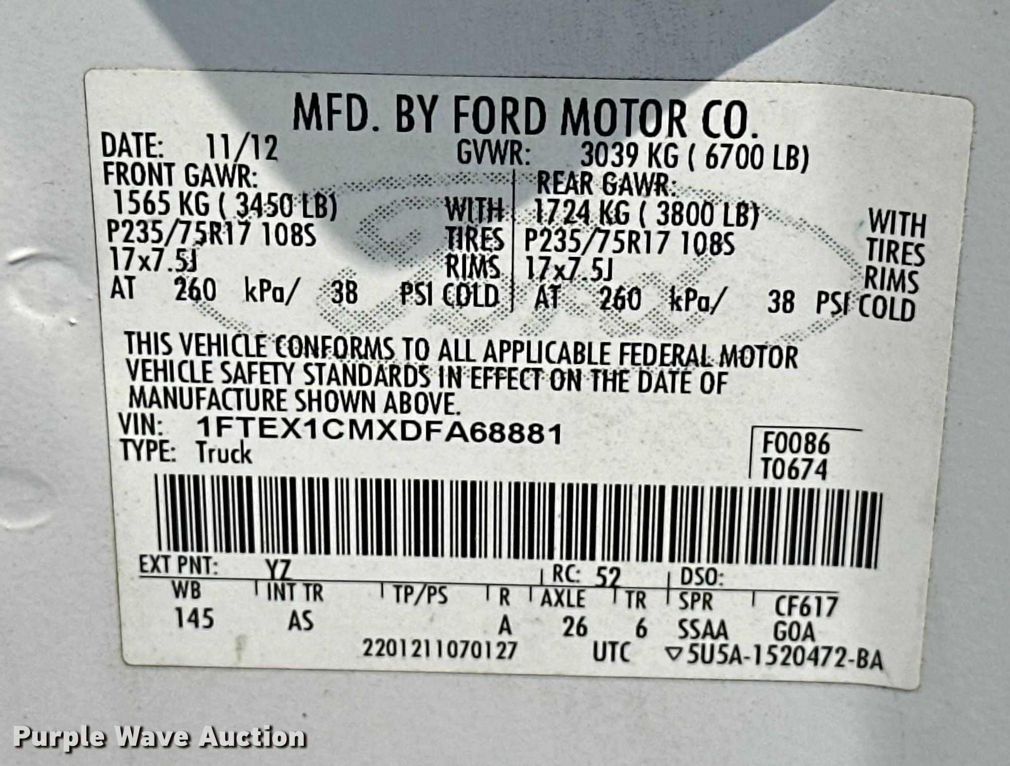 • VIN: 1FTEX1CMXDFA68881