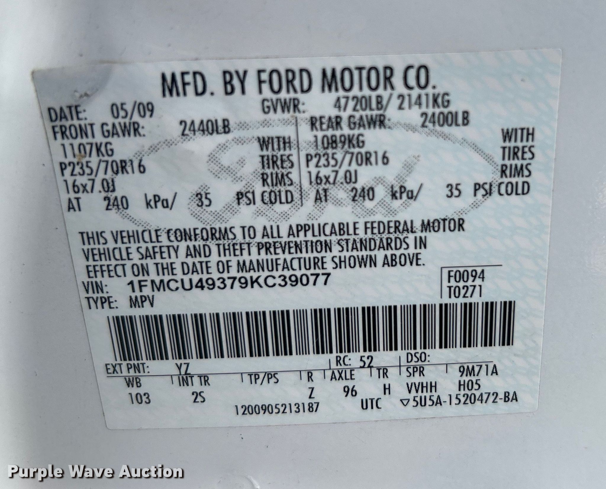 Purple Wave is selling a used Passenger Vehicle in Oklahoma. This item is a 2009 Ford Escape Hybrid SUV with the following: Miles: 113,338 on odometer, VIN: 1FMCU49379KC39077, Unit #: 844