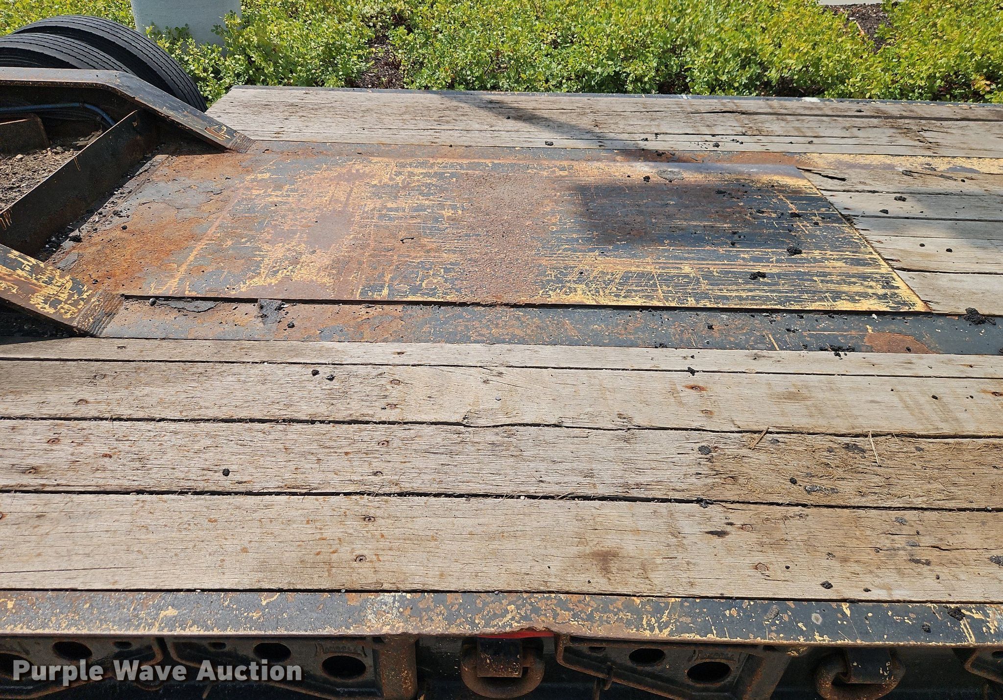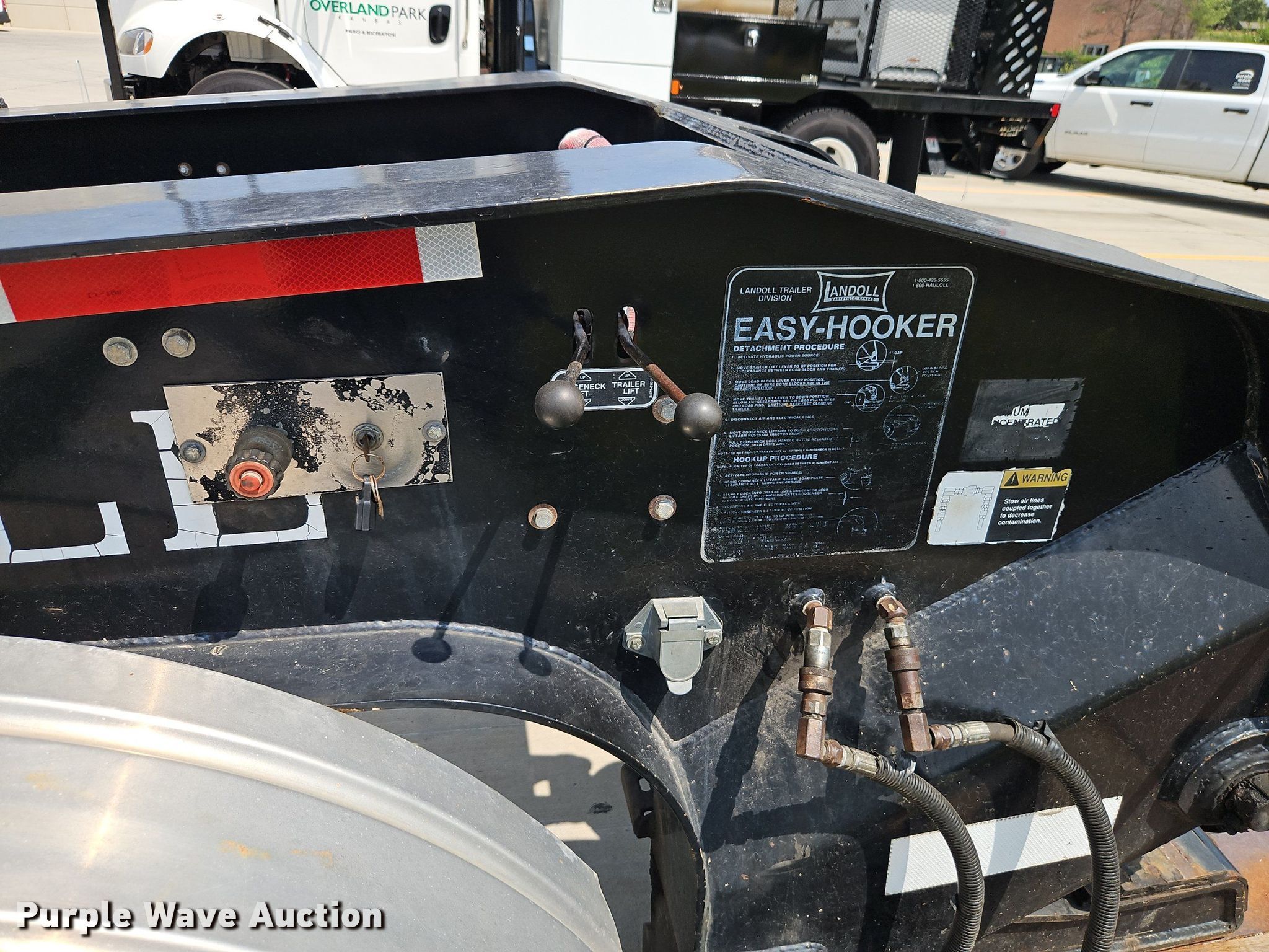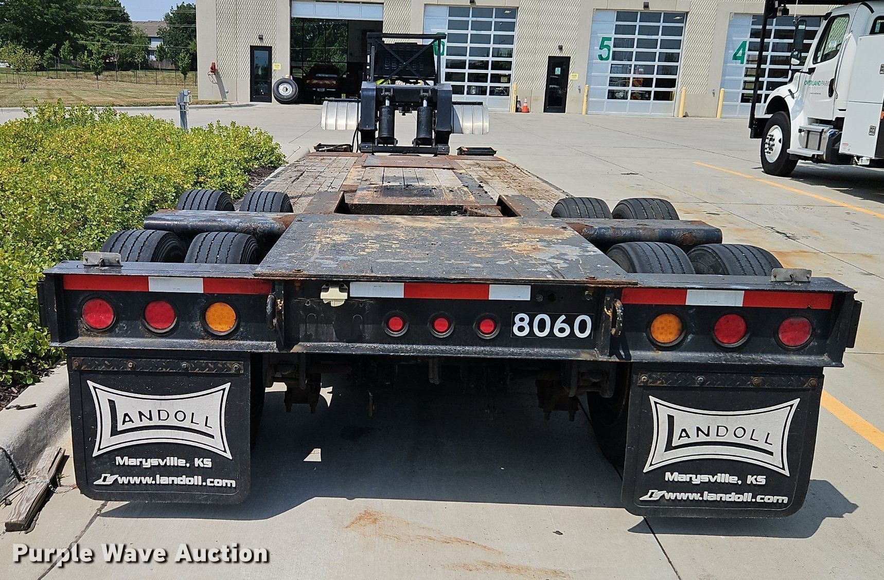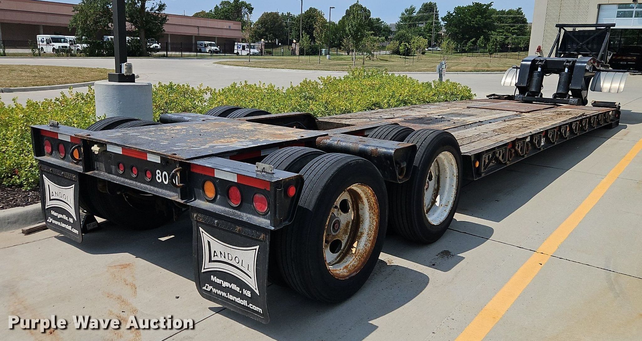 1991 Landoll lowboy equipment trailer. VIN: 1LH326RH3M1005002. Dimensions Overall: 42' L x 102" W, Deck: 23' 6" L x 102" W, Deck height: 20", Ramps: Manual Length: 2'. Features Deck type: Wood, Outriggers: Swing-out Board size: 10", Neck type: Detachable, Self-contained hydraulics, Hydraulic controls: Manual. Chassis Suspension: Spring, Brakes: Air, Axles: Tandem, GVWR: 84,000 lbs, GAWR: 20,000 lbs. Tires Steel wheels, Size: 255/70R22.5. Kansas title. Title distribution may be delayed up to 14 days from verification of funds. City of Overland Park, KS. Overland Park, KS 66213