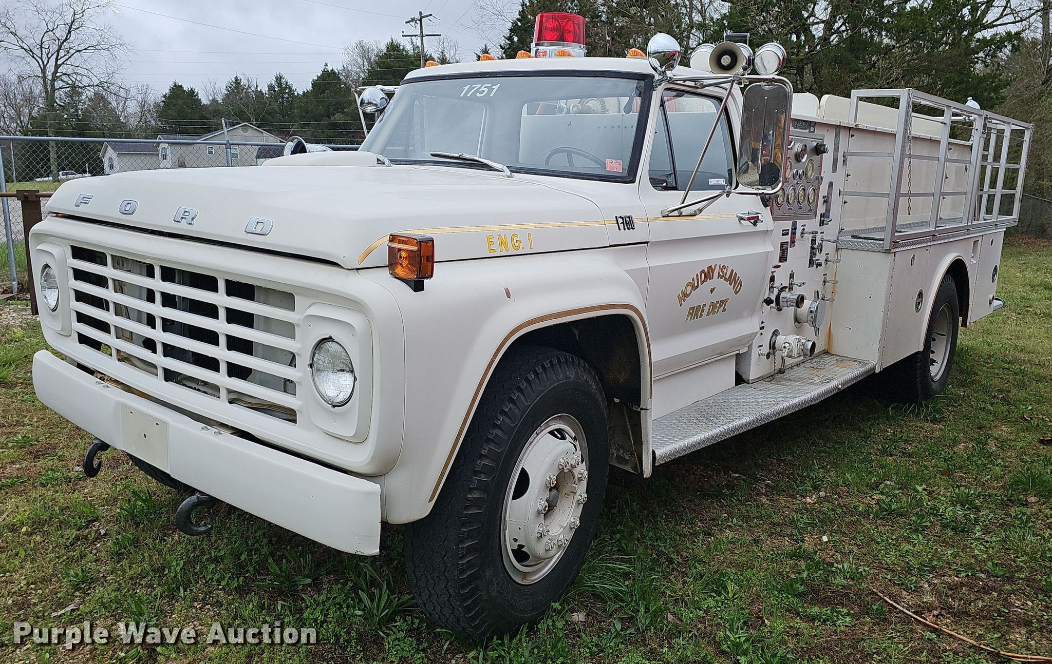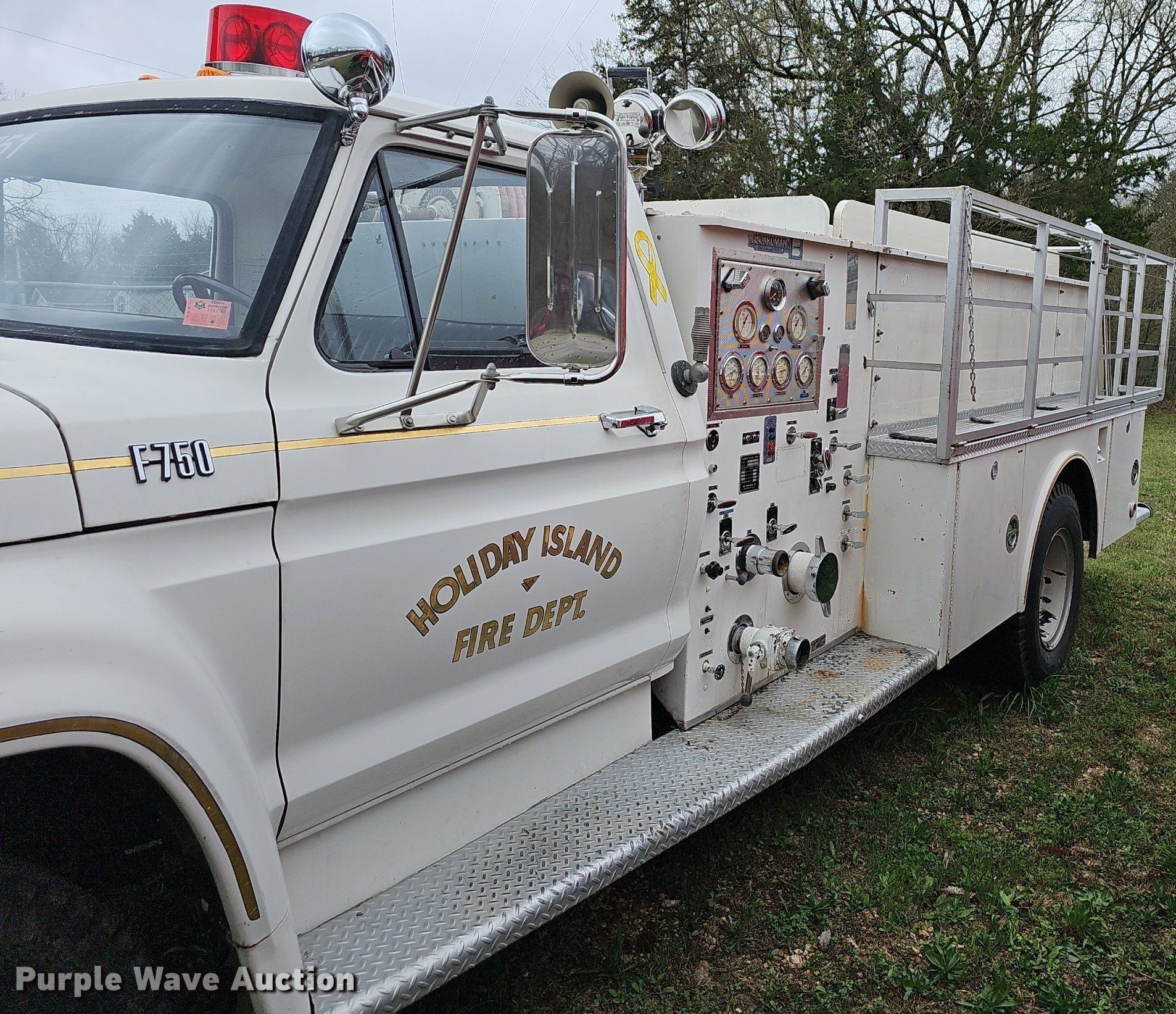 Purple Wave is selling a used Fire Truck or Emergency Vehicle in Arkansas. This item is a 1974 Ford F750 pumper fire truck with the following: Miles: 13,155 on odometer, VIN: F75FVU09135