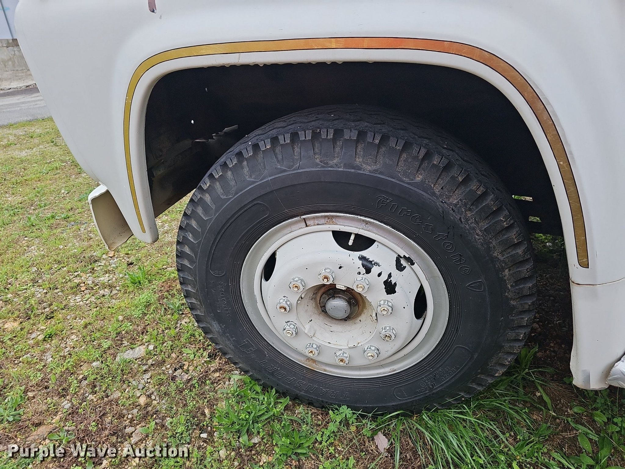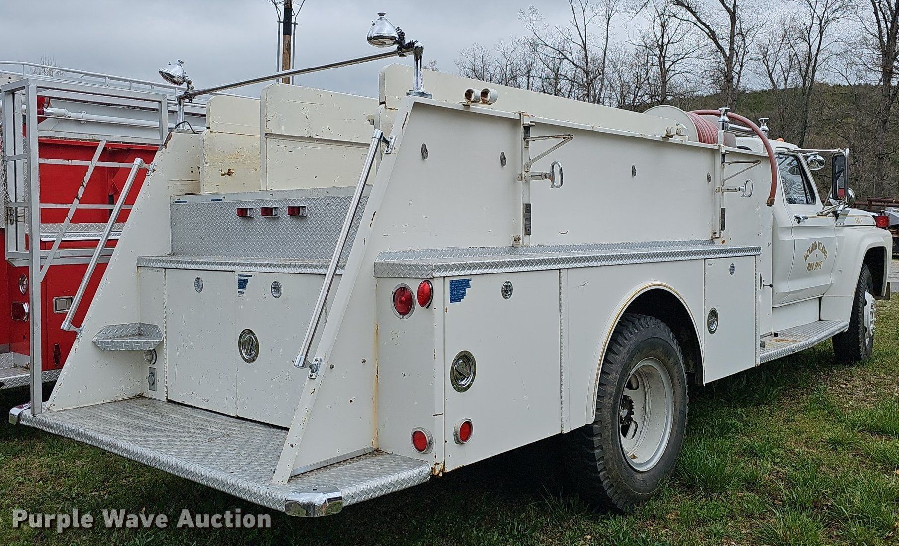 This 1974 Ford F750 pumper fire truck will sell to the highest bidder regardless of price.