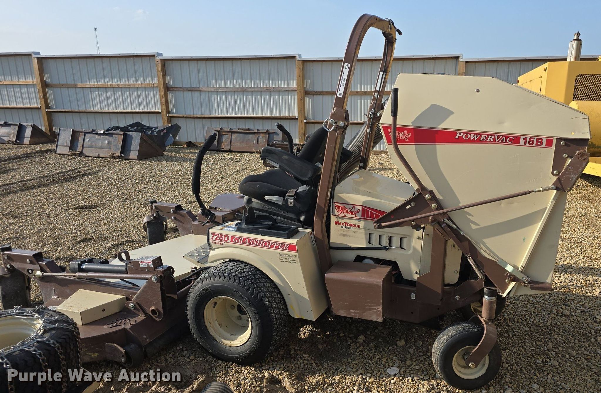 Purple Wave is selling a used Commercial Turf Mower in Kansas. This item is a Grasshopper 725D ZTR lawn mower with the following: Hours: 1,943 on meter, Cutting width: 72", Serial: 6618213