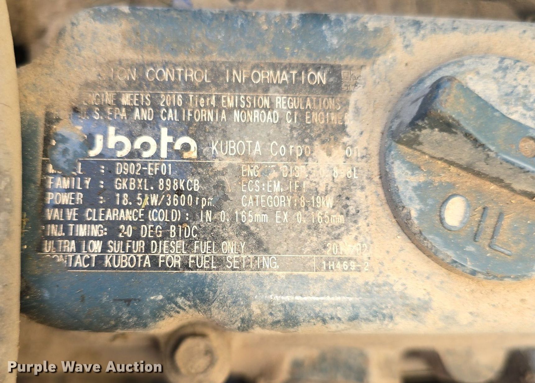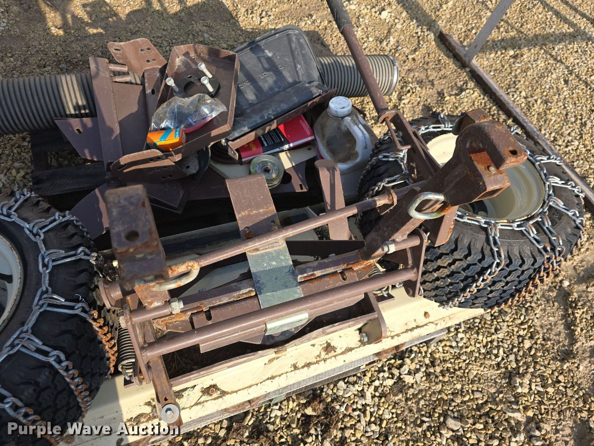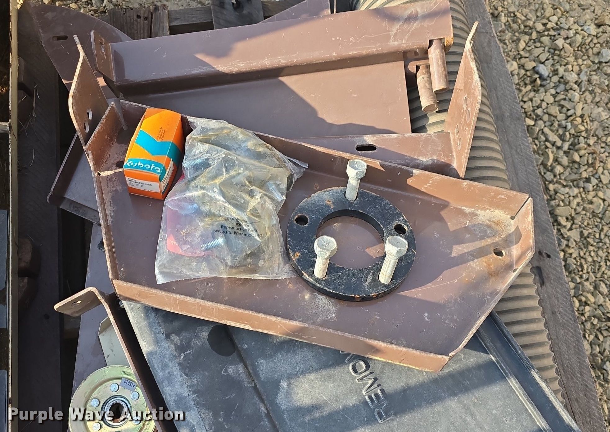 Grasshopper 725D ZTR lawn mower. Hours: 1,943 on meter, Cutting width: 72", Serial: 6618213. Engine Kubota D902-EF01, Displacement: 0.898L, Cylinders: 3, Fuel type: Diesel. Transmission Hydrostatic. Features Grass bagger Grasshopper PowerVac 15B, Front blade Width: 60", Hydraulic front deck lift, Flip up front deck. Tires Front: 22x10.00-10, Rear: 13x6.50-6, Brand: Kenda. Notes Parts only, Parts missing, Bracket damaged, Non-operational transmission/engine pump, Unit must be towed or hauled , Additional parts included, Non-operational unit. Saint Marys, KS 66536