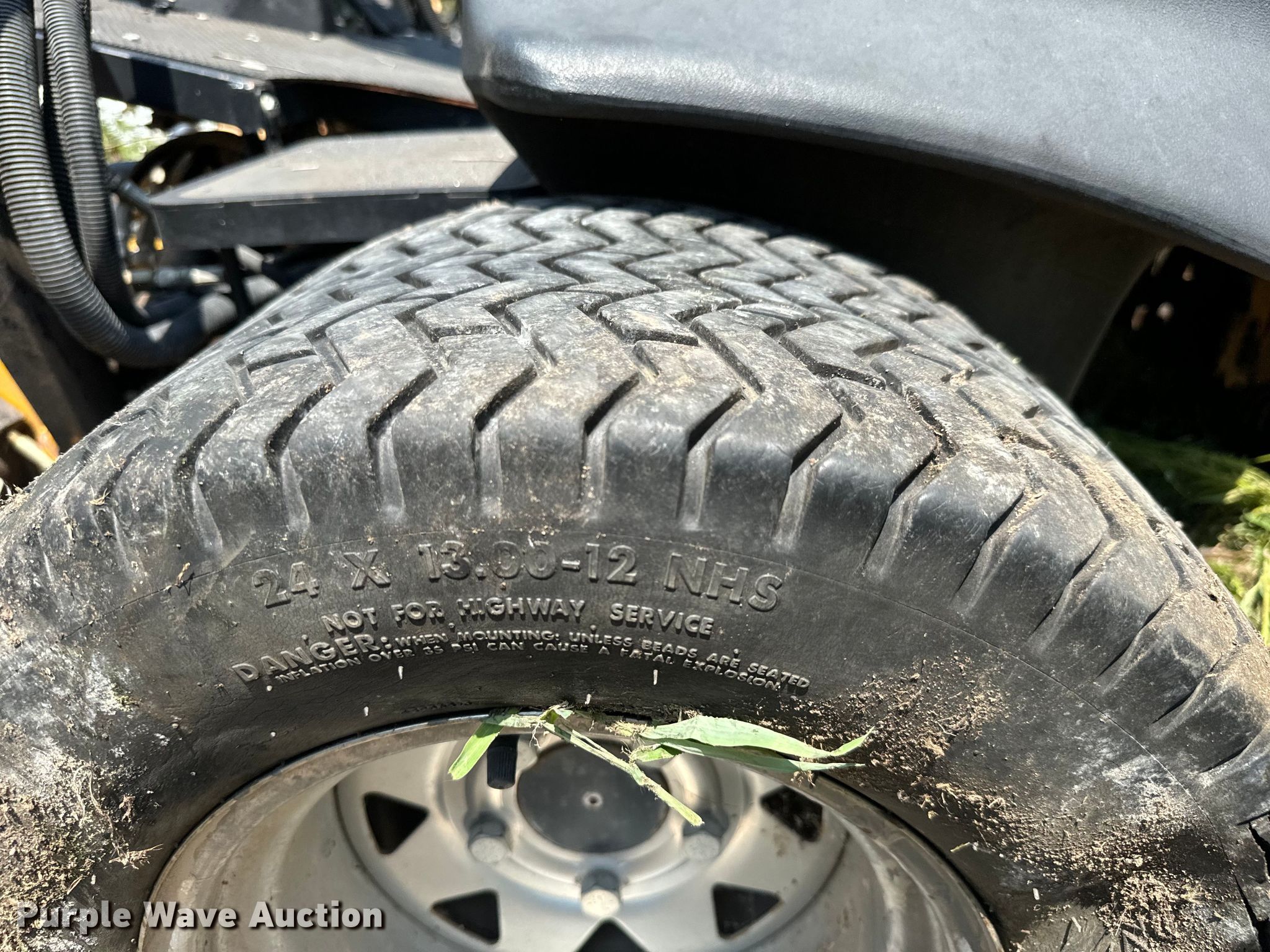 2011 Hustler 7700 reel mower. Hours: 1,347 on meter, Cutting width: 96", Serial: 11032606. Engine Shibaura, Displacement: 1.662L, Cylinders: 3, Fuel type: Diesel. Transmission Hydrostatic. Operators station OROPS. Features Hydraulic fold decks. Tires Front: 24x12.00-12, Rear: 20x10.00-10. Notes Flat tires. Hesston, KS 67062