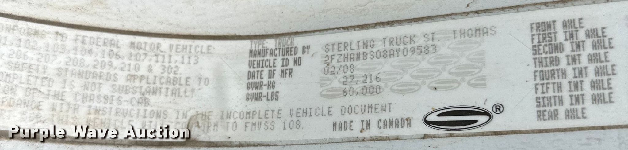 Purple Wave is selling a used Vacuum Truck in Minnesota. This item is a 2008 Sterling LT8500 sewer jetter truck with the following: Miles: 35,772 on odometer, Hours: 7,054 on meter, VIN: 2FZHAWBS08AY09583