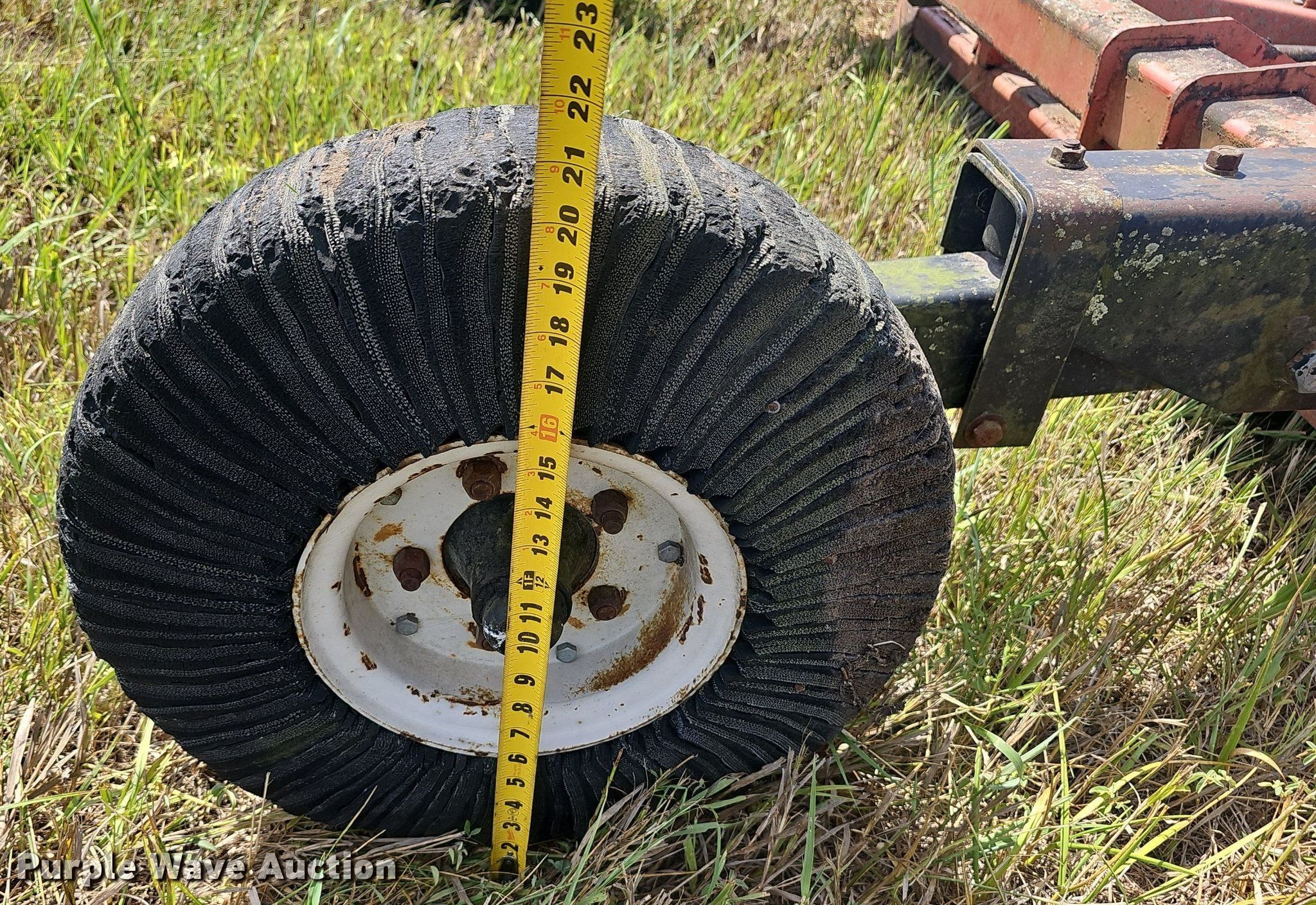 Bush Hog rotary mower. Features. Width: 10' 4", Hydraulic lift, PTO: 540. Tires Solid. Notes Gear box missing, Non-operational unit. Galesburg Fire Department. Galesburg, KS 66740