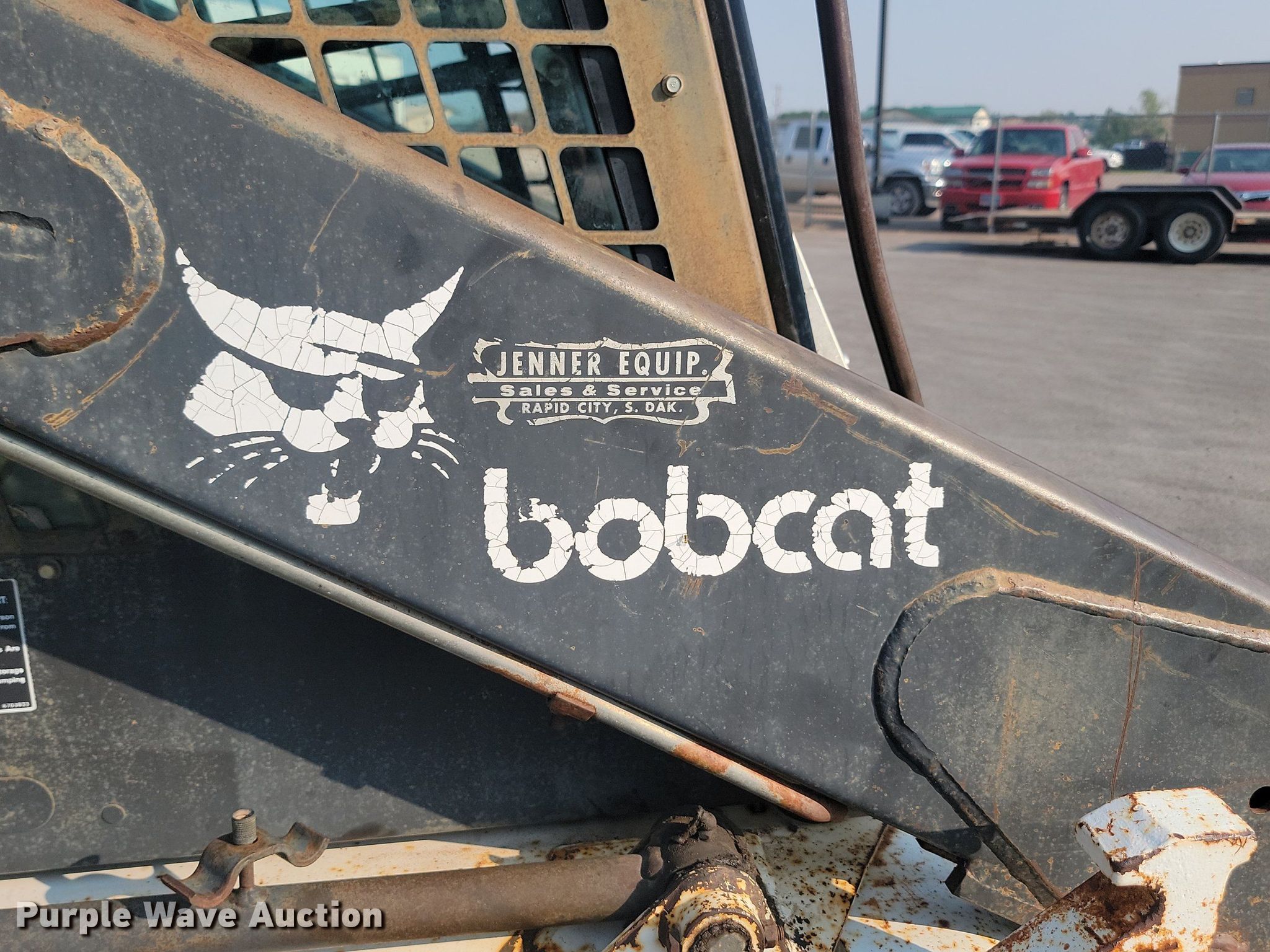 1992 Bobcat 7753 skid steer loader. Hours: 4,108 on meter, Serial: 509611547. Engine Cylinders: 4, Fuel type: Diesel. Transmission Hydrostatic. Operators station Enclosed cab, Heat, Bucket control: Foot. Features Bucket Width: 68", Cutting edge: Bolt-on. Tires Size: 10-16.5. Notes Hydraulic leak, Parking brake issues , Bucket damage, rusted through. Pennington County, SD. Rapid City, SD 57701