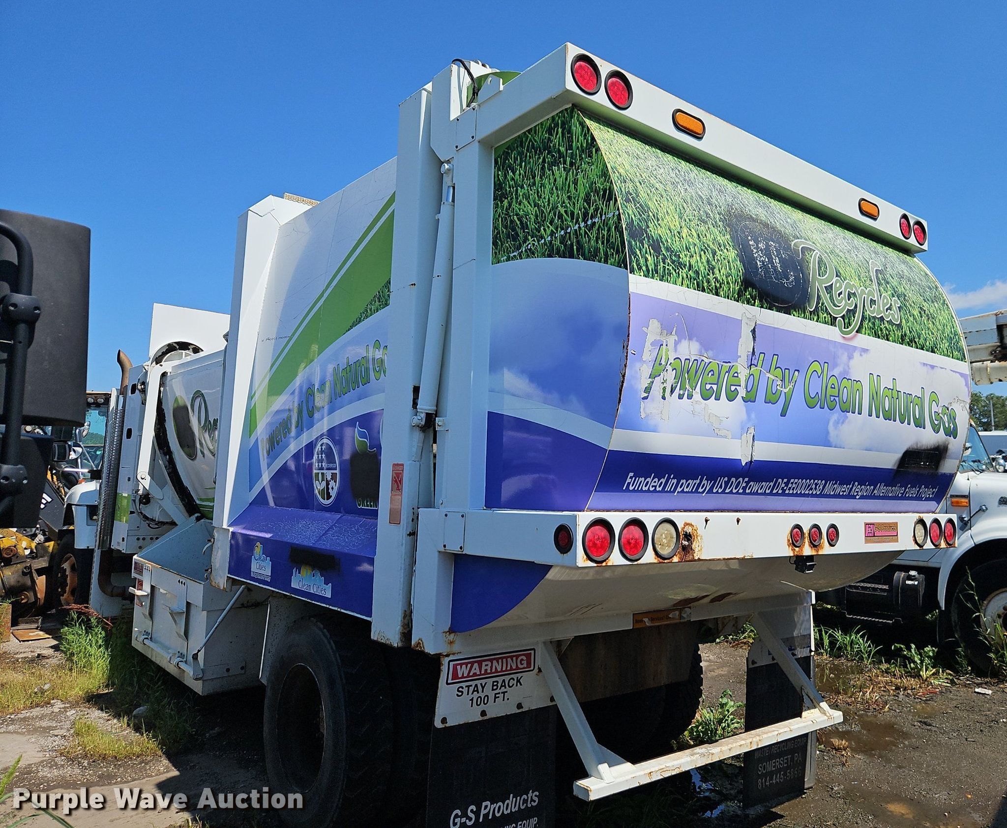 2011 International 7300 refuse truck. Miles: Unknown, VIN: 1HTZZAAR9BJ345317, Unit #: 4827. Engine International MaxxForce DT, Displacement: 7.6L, Cylinders: 6, Fuel type: CNG. Transmission Allison, Automatic. Chassis Axles: Single, Suspension: Spring, Brakes: Air, PTO, GVWR: 39,000 lbs, Wheelbase: 660". Interior AC, Heat, Cruise control, Backup camera. Features Refuse bed G-S PRODUCTS MP8120DX, Load: Side. Tires Front: 315/80R22.5, Rear: 11R22.5. Notes Unit must be towed or hauled, Non-operational unit. Missouri title. City of Kansas City. Kansas City, MO 64120
