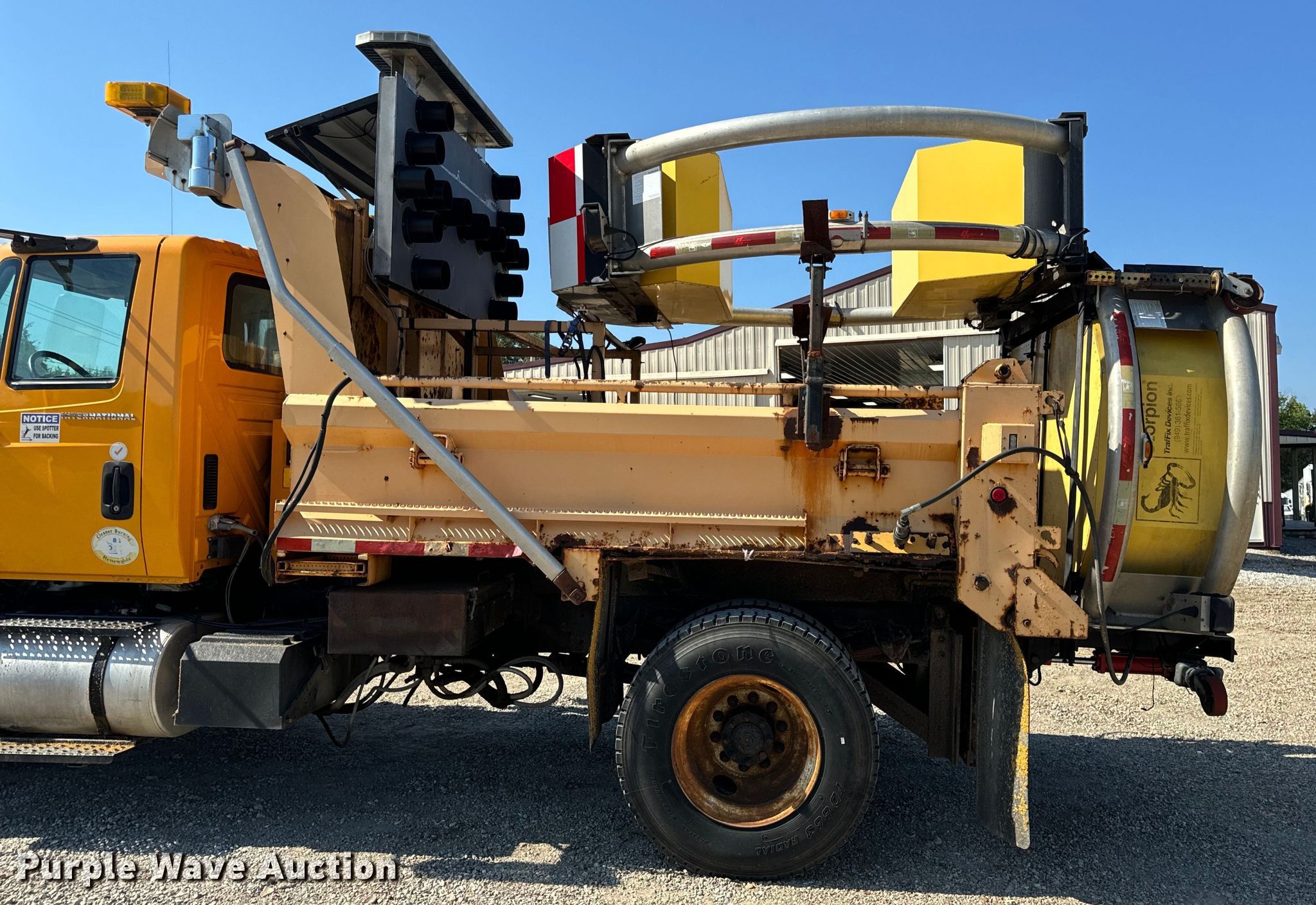 2006 International 7400 dump truck. Miles: 174,257 on odometer, Hours: 13,770 on meter, VIN: 1HTWDAAR76J244025, Unit #: 7651. Engine International DT466, Displacement: 7.6L, Cylinders: 6, Fuel type: Diesel. Transmission Allison, Automatic. Chassis Axles: Single, Suspension: Spring, Brakes: Air, PTO, Front mount PTO, GVWR: 35,000 lbs FAWR: 14,000 lbs, RAWR: 21,000 lbs. Interior AC, Heat, Heated mirrors, Power windows, Cruise control. Features Dump bed Wheeler HT1024, 10' L x 97" W, Side height: 25", Bed type: Steel, Roll tarp, Ram: Single, End gate: Air operated, Scorpion TrafFix Devices traffic attenuator. Tires Front: 315/80R22.5, Rear: 11R22.5. Notes Dash warning indicator: ABS, Possible AC issues, does not blow cold air, Unknown operating condition of roll tarp, Unknown operating condition of arrow marker lights, Tailgate missing. Missouri title. Title distribution may be delayed up to 14 days from verification of funds. Missouri Department of Transportation (MODOT). New Bloomfield, MO 65063