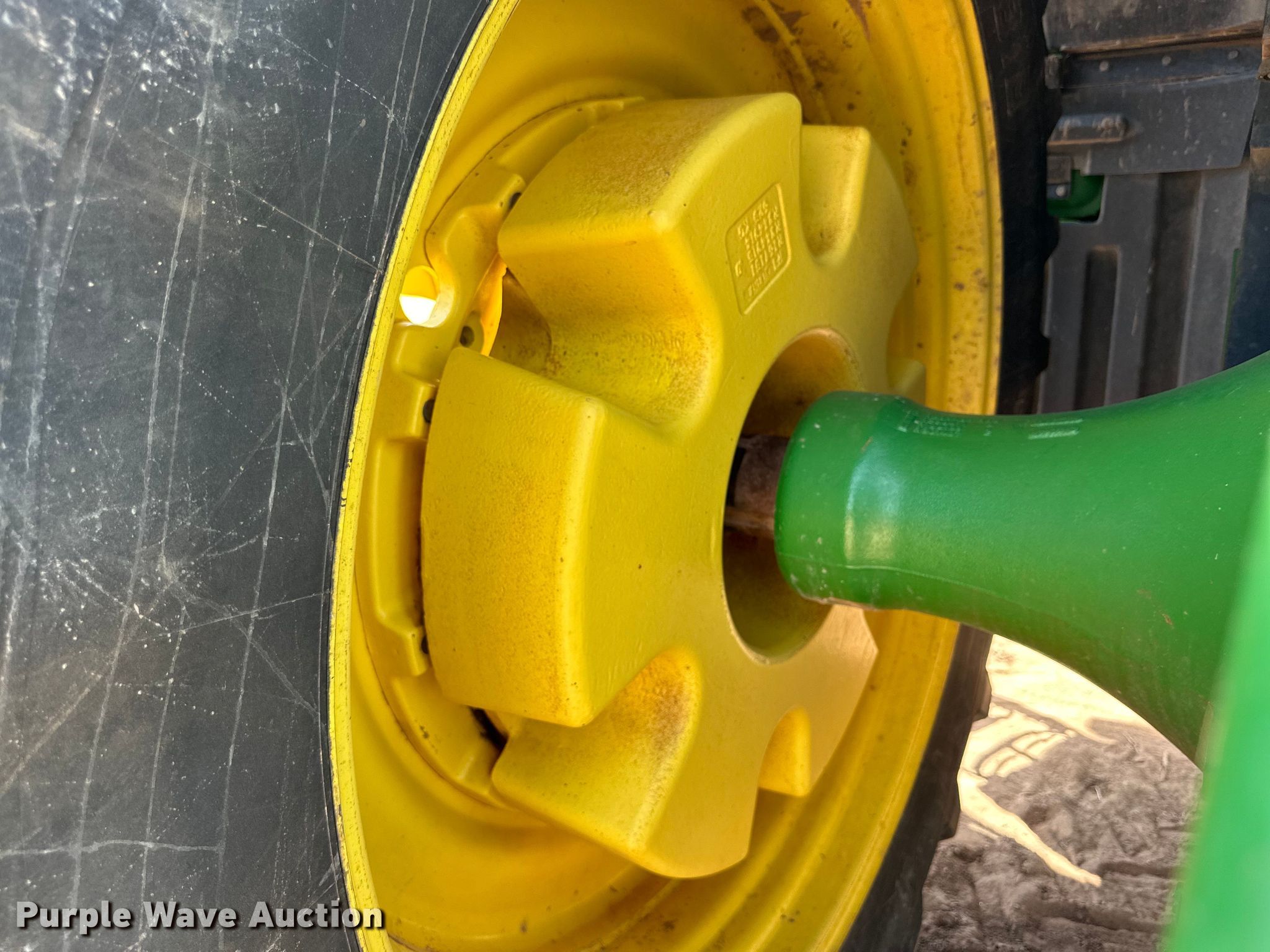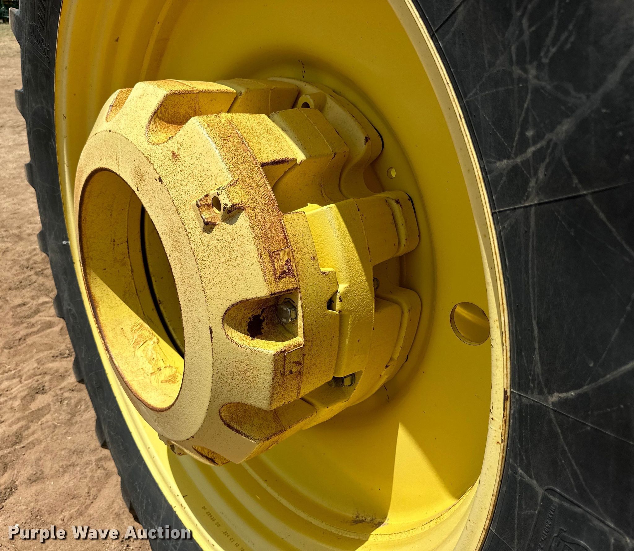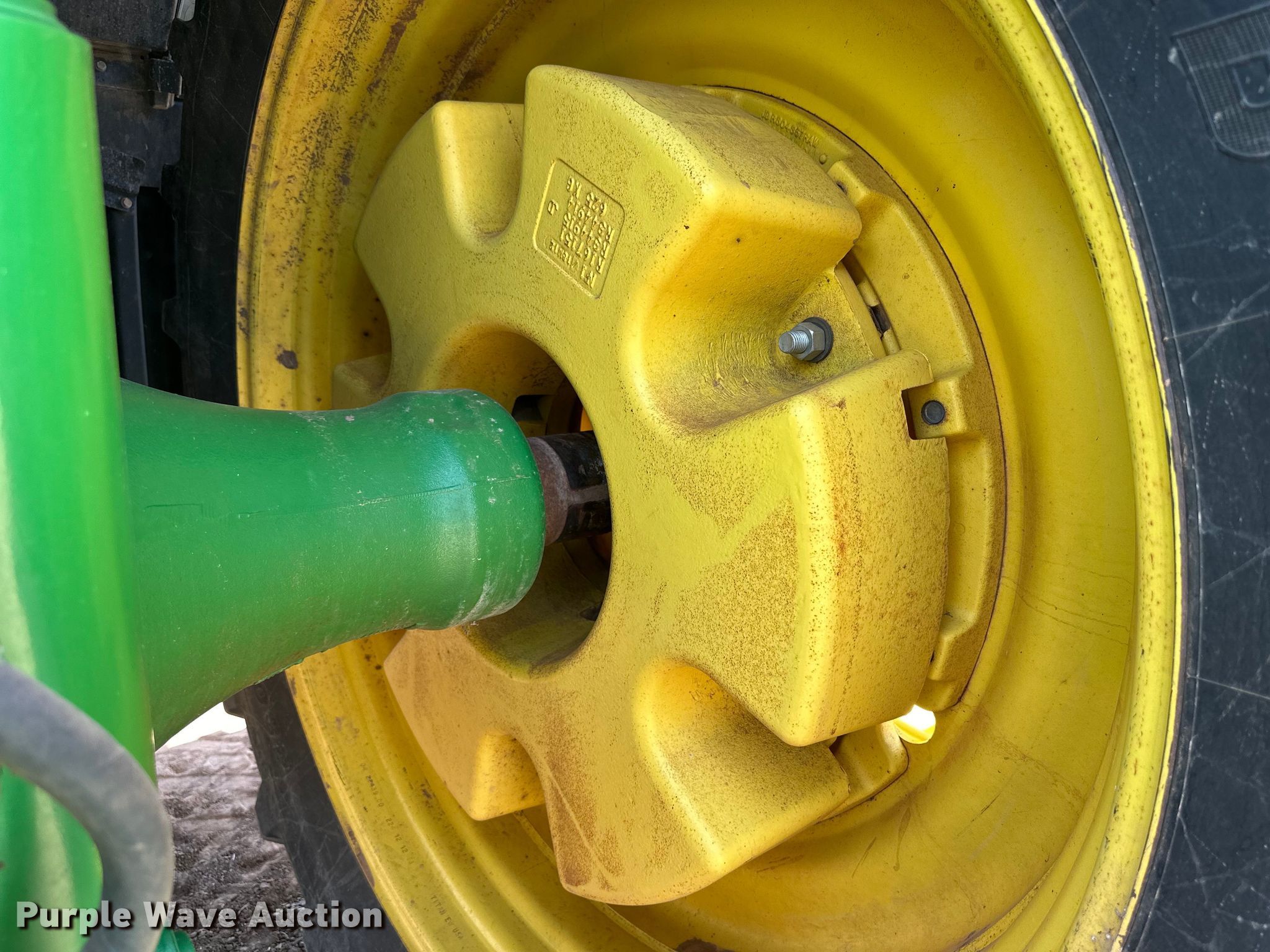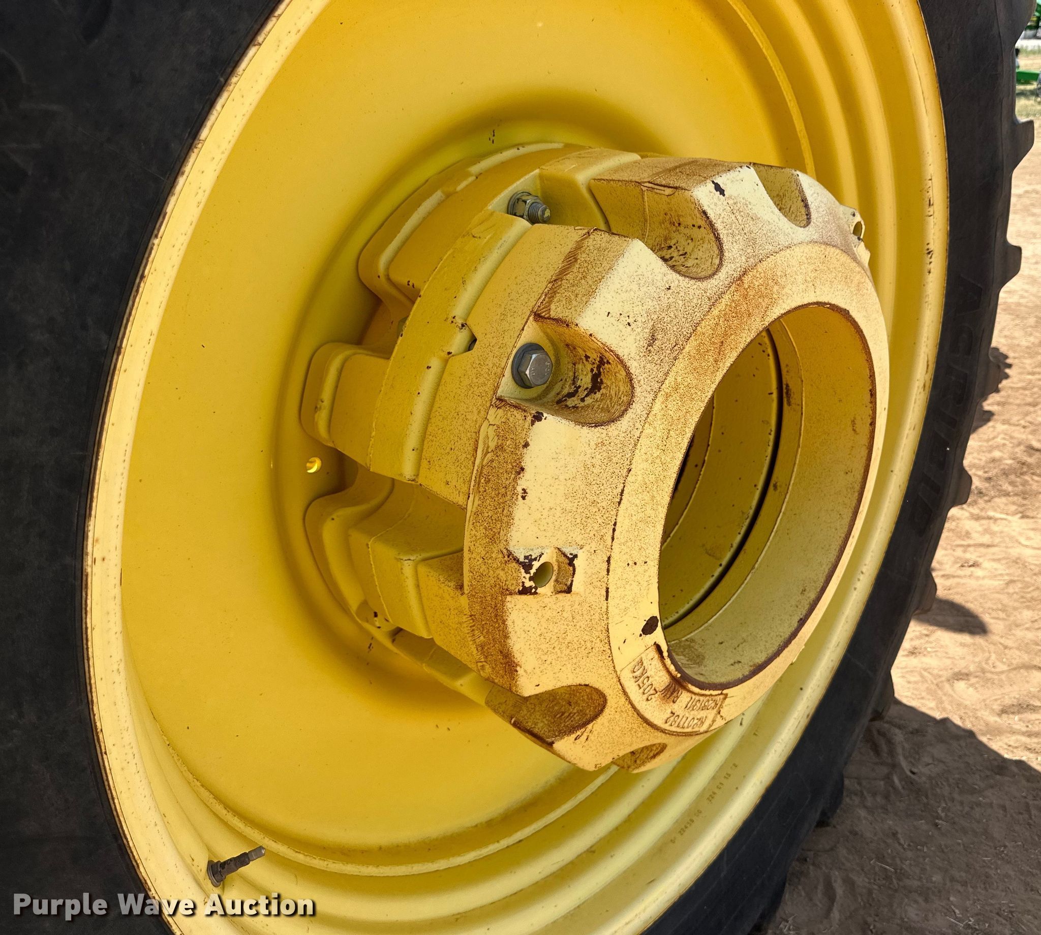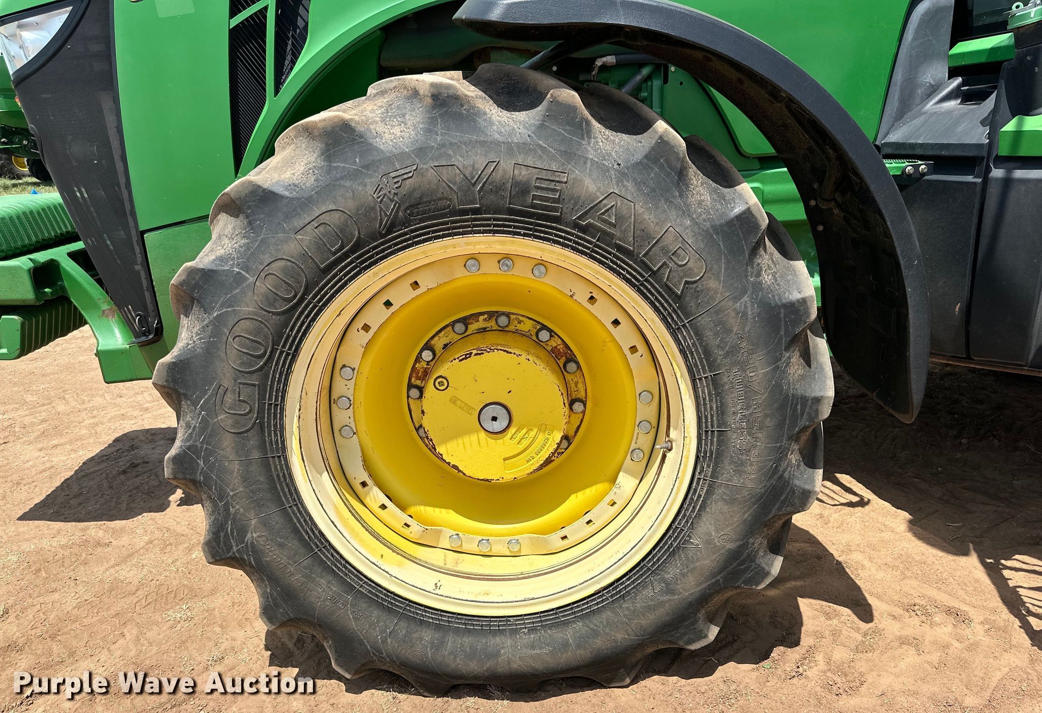 2013 John Deere 8335R MFWD tractor. Hours: 5,404 on meter, Serial: 1RW8335REDP069285. Engine John Deere, Serial: R0AHNBR310524, Cylinders: 6, Fuel type: Diesel, HP: 335. Transmission IVT, Differential lock. Operators station AC, Heat, Display John Deere. Features PTO: 1 3/4" 1000, Three point Quick attach, Seven pin outlet, ISOBUS outlet, Hydraulic remote sets Rear: 4, Power beyond (hydraulics), Suitcase weights: 22. Tires Front: 420/85R34, Rear: 480/80R50, Wheel weights: 10, Duals. Western Equipment. Altus, OK 73521