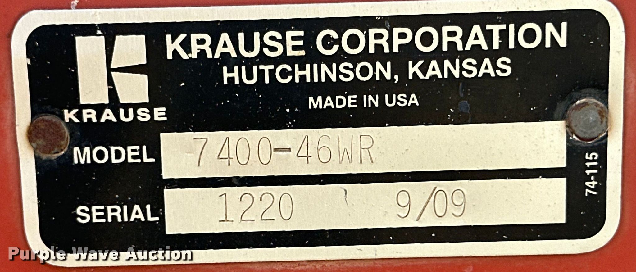 This 2009 Krause 7400-46WR disk will sell to the highest bidder regardless of price.