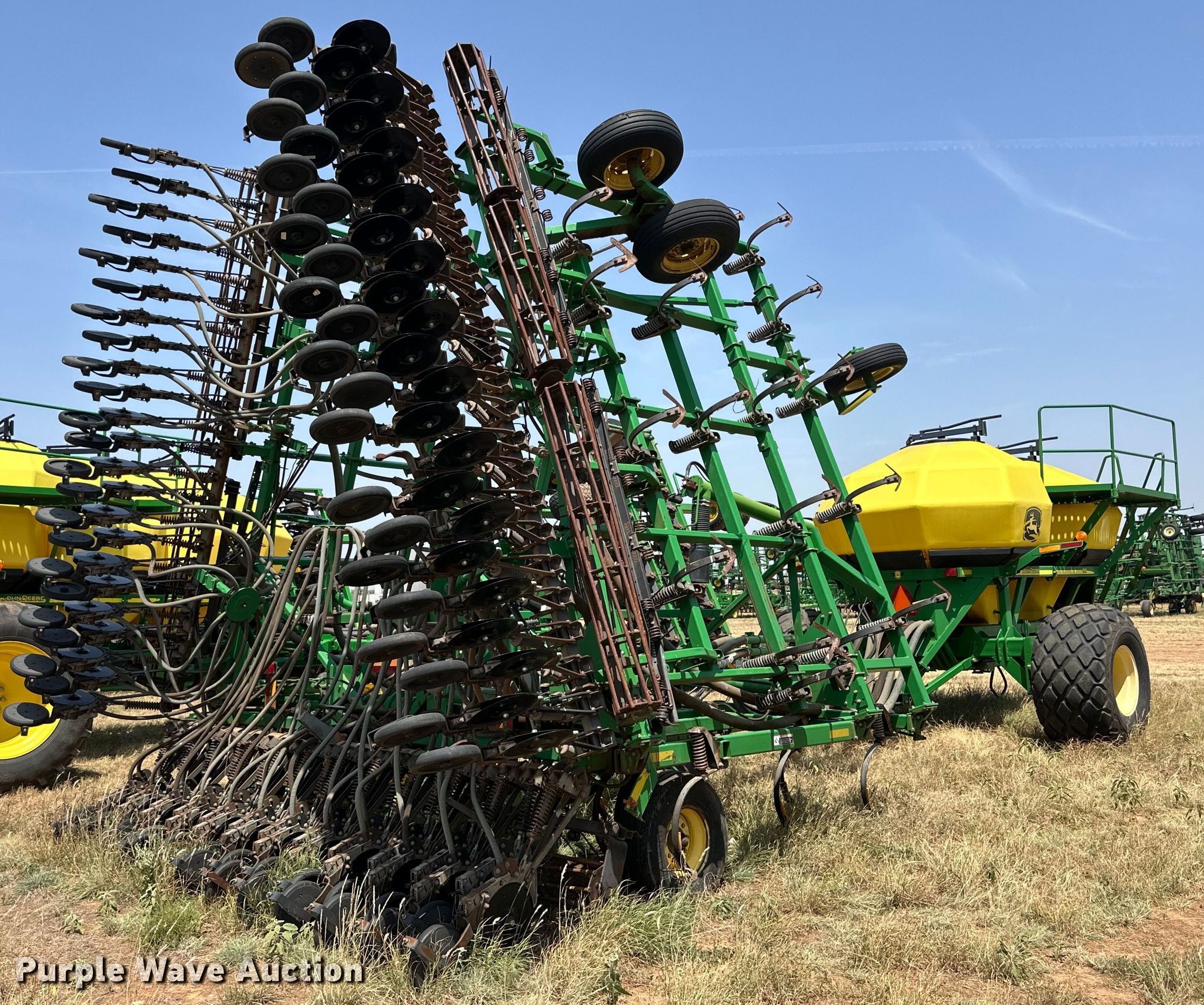 Purple Wave is selling a used Air Seeder in Oklahoma. This item is a John Deere 730 air seeder with the following: Width: 34', Row units: 70, Row spacing: 7", Serial: A00730X715105