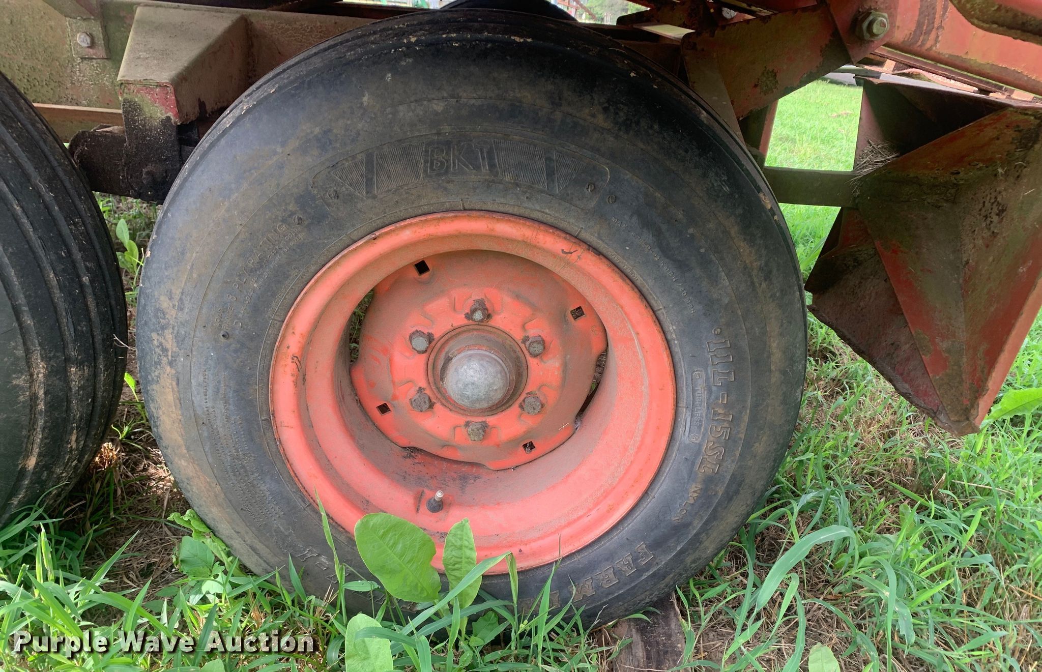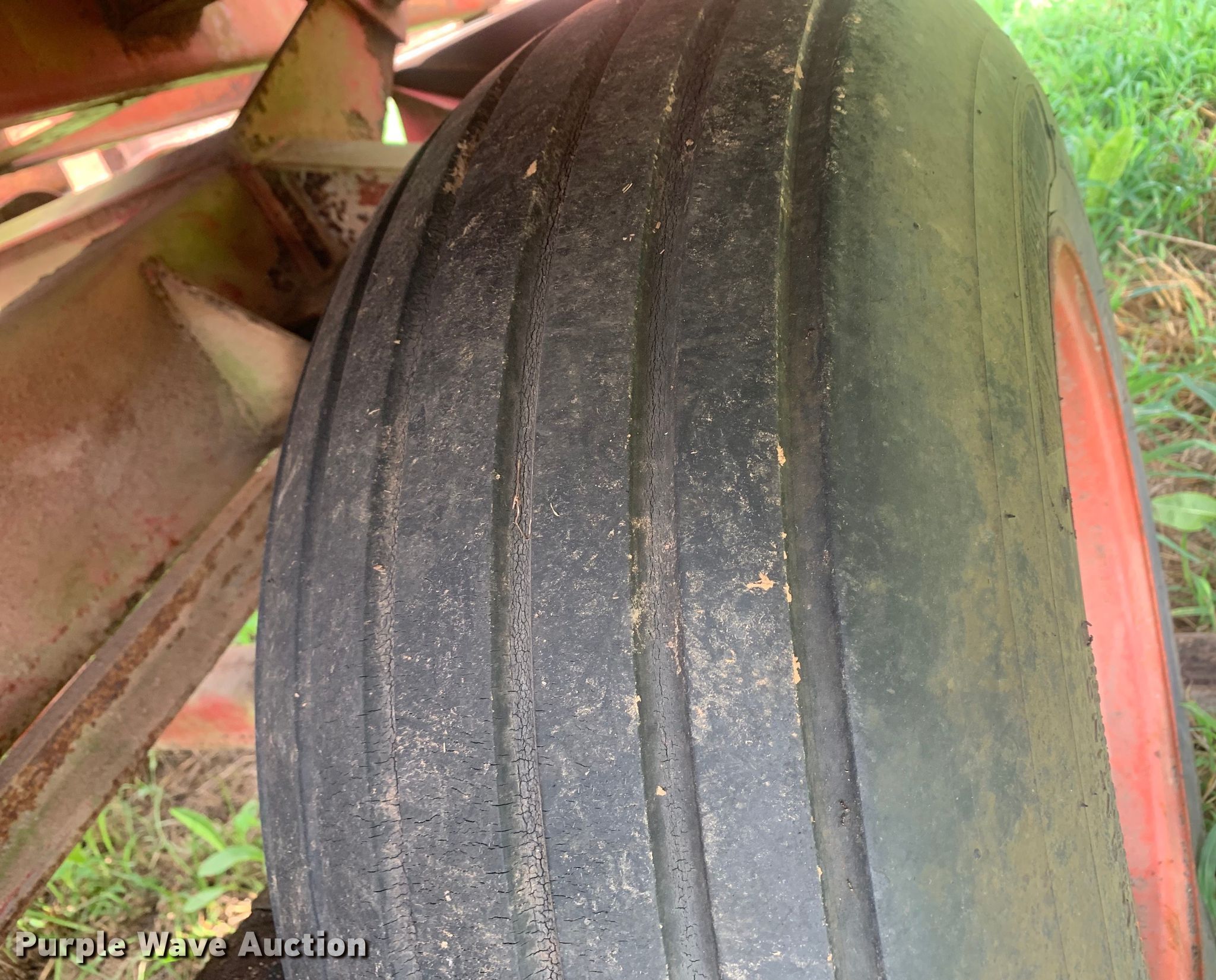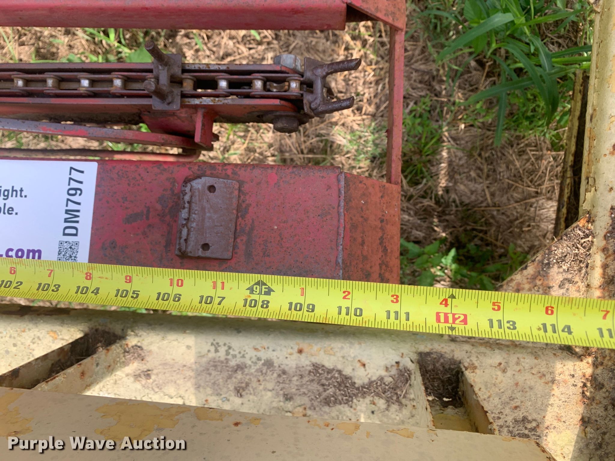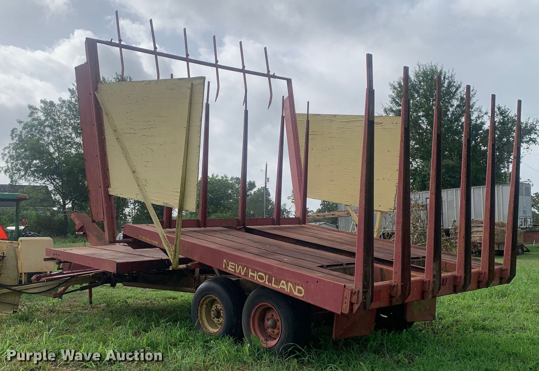 New Holland 1033 bale accumulator. Serial: 4813. Features Load chute: 19" W, Conveyor 9' 3" L x 21" W, Hydraulic dual deck Front deck 9' 4" L x 6' 3" W, Rear deck 9' L x 10' 9" W, 540 PTO shaft. Tires Size: 11L-15Sl. Notes Tractor not included. Bloomburg, TX 75556