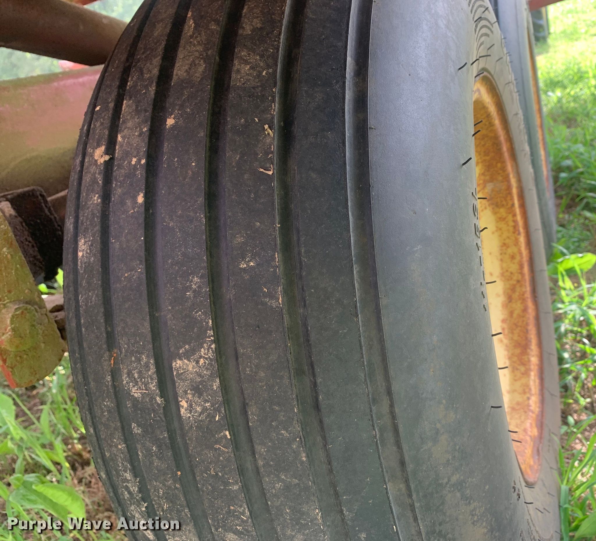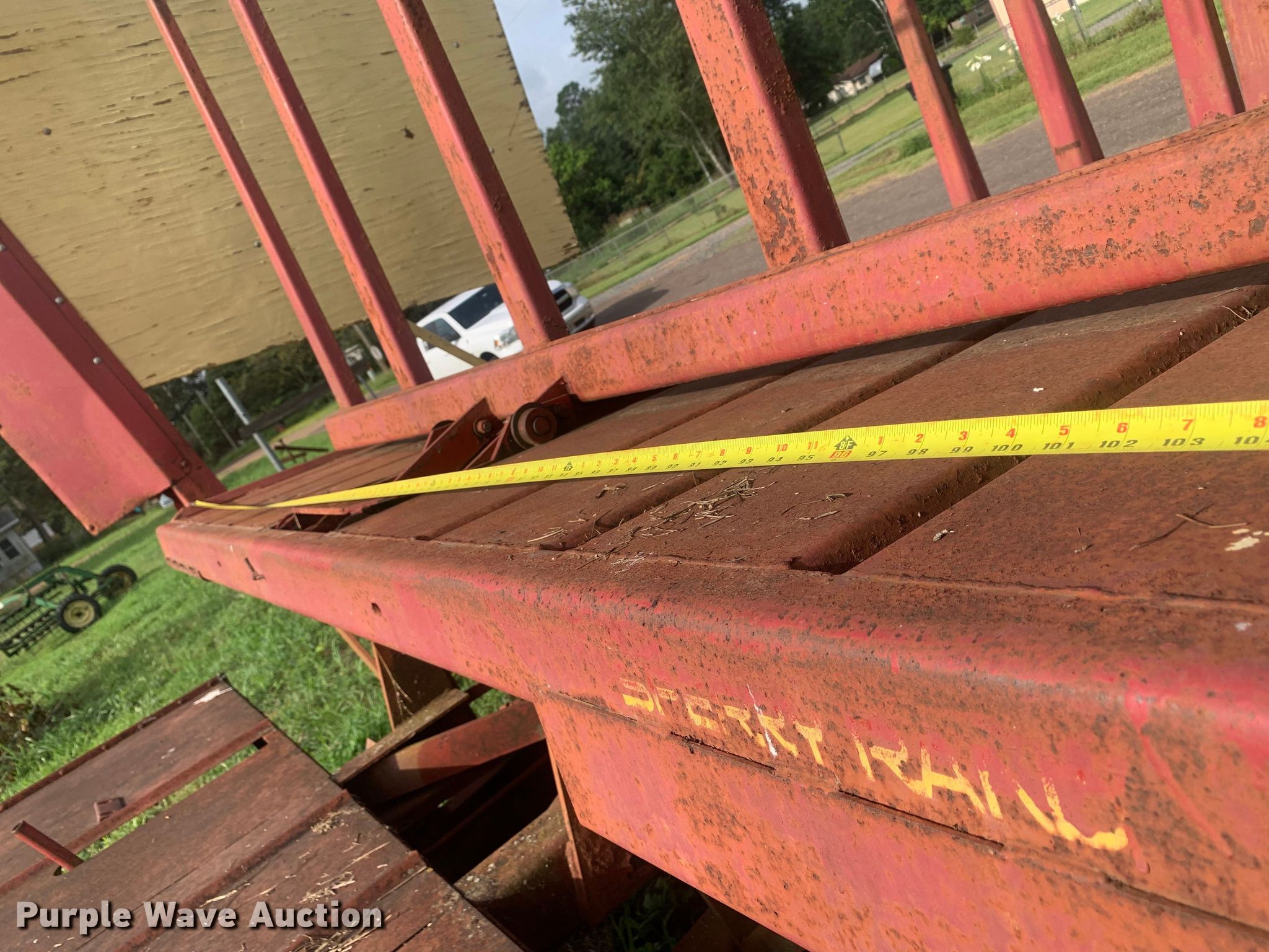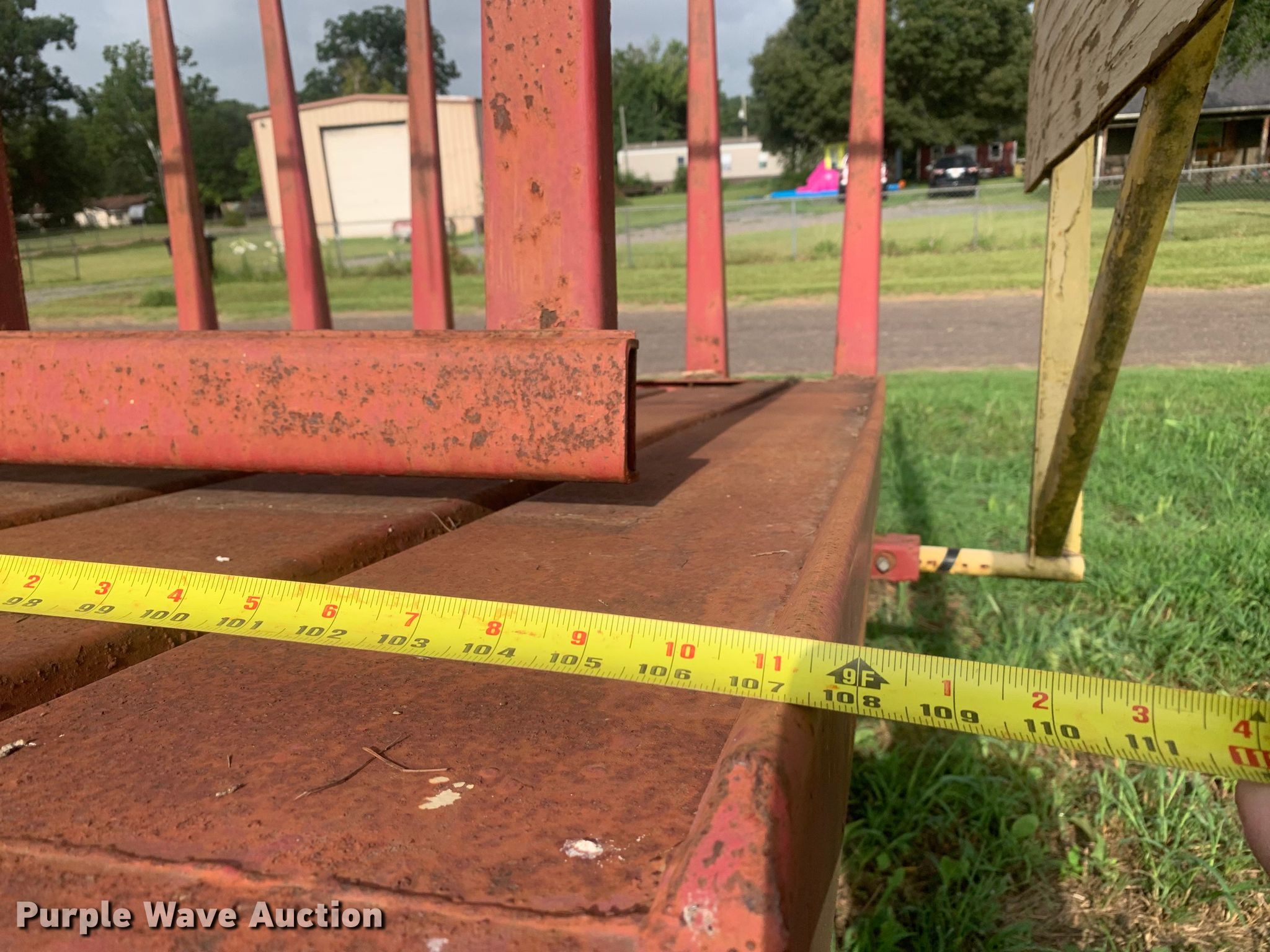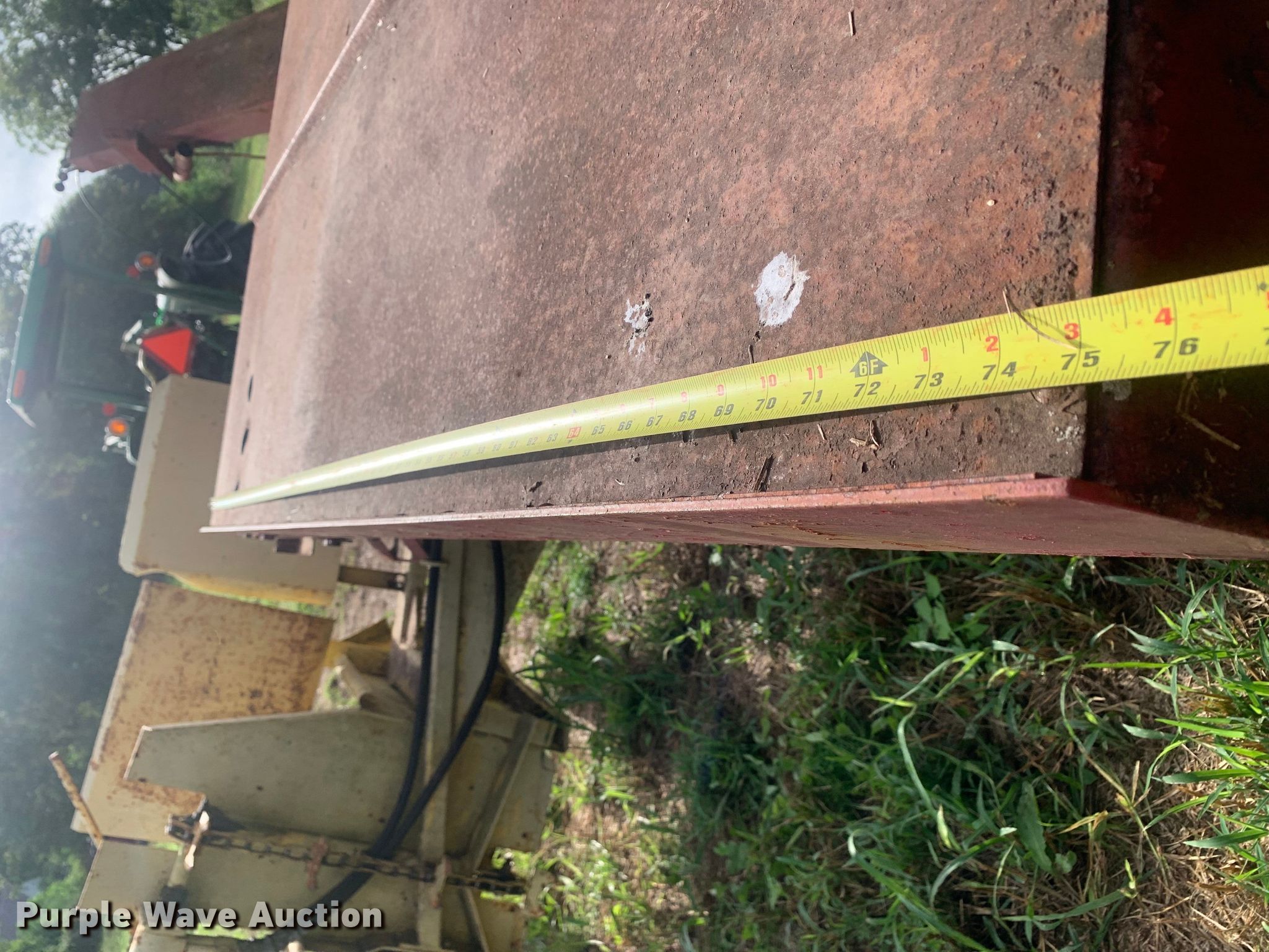 New Holland 1033 bale accumulator. Serial: 4813. Features Load chute: 19" W, Conveyor 9' 3" L x 21" W, Hydraulic dual deck Front deck 9' 4" L x 6' 3" W, Rear deck 9' L x 10' 9" W, 540 PTO shaft. Tires Size: 11L-15Sl. Notes Tractor not included. Bloomburg, TX 75556