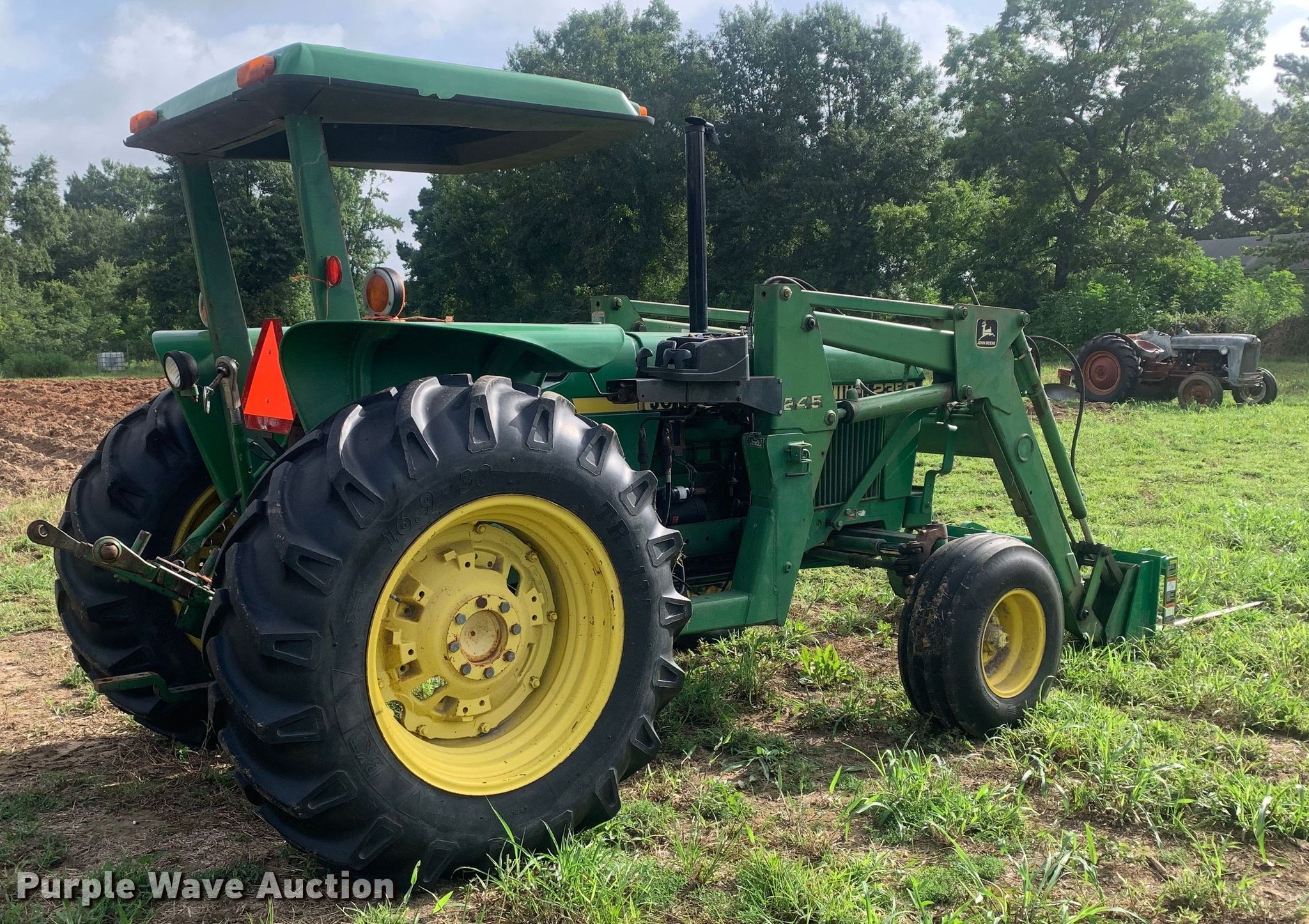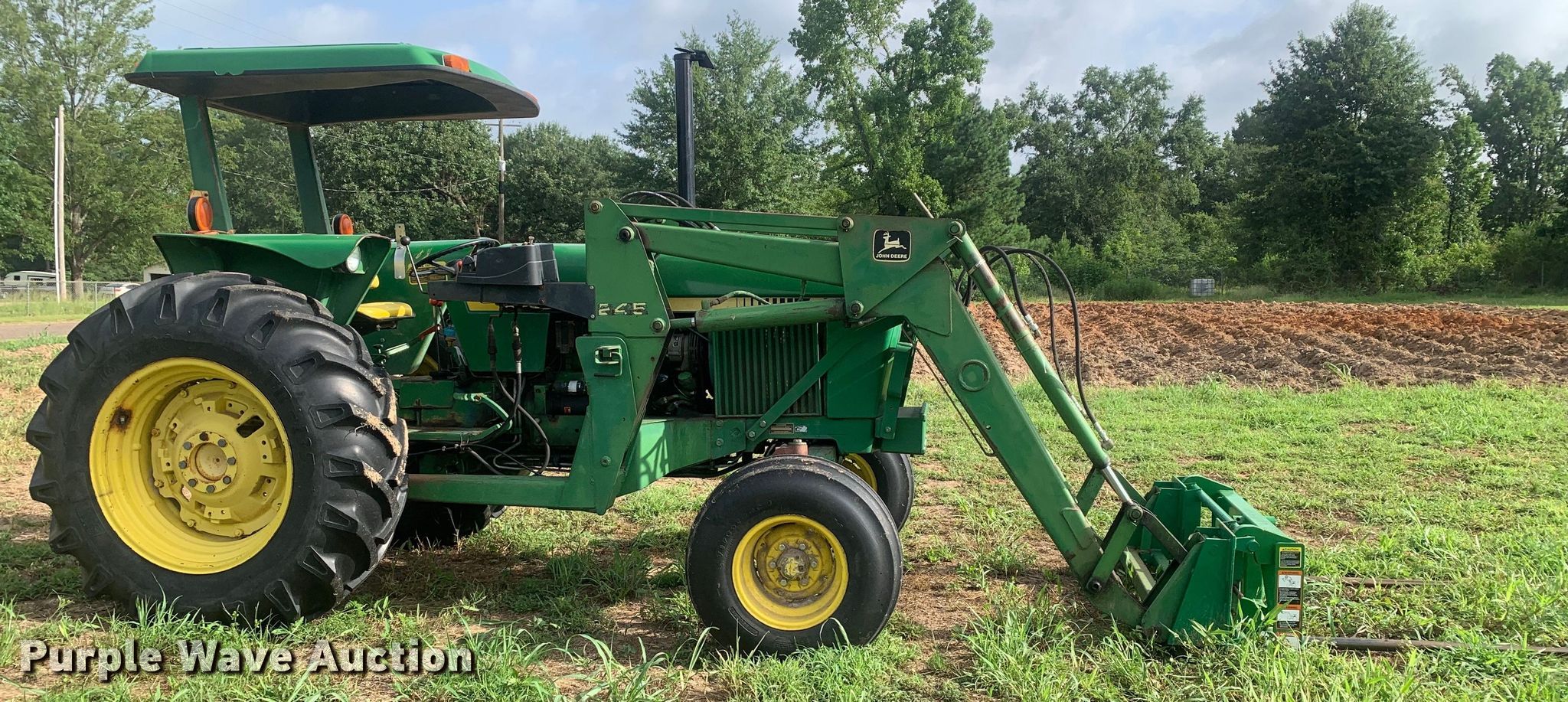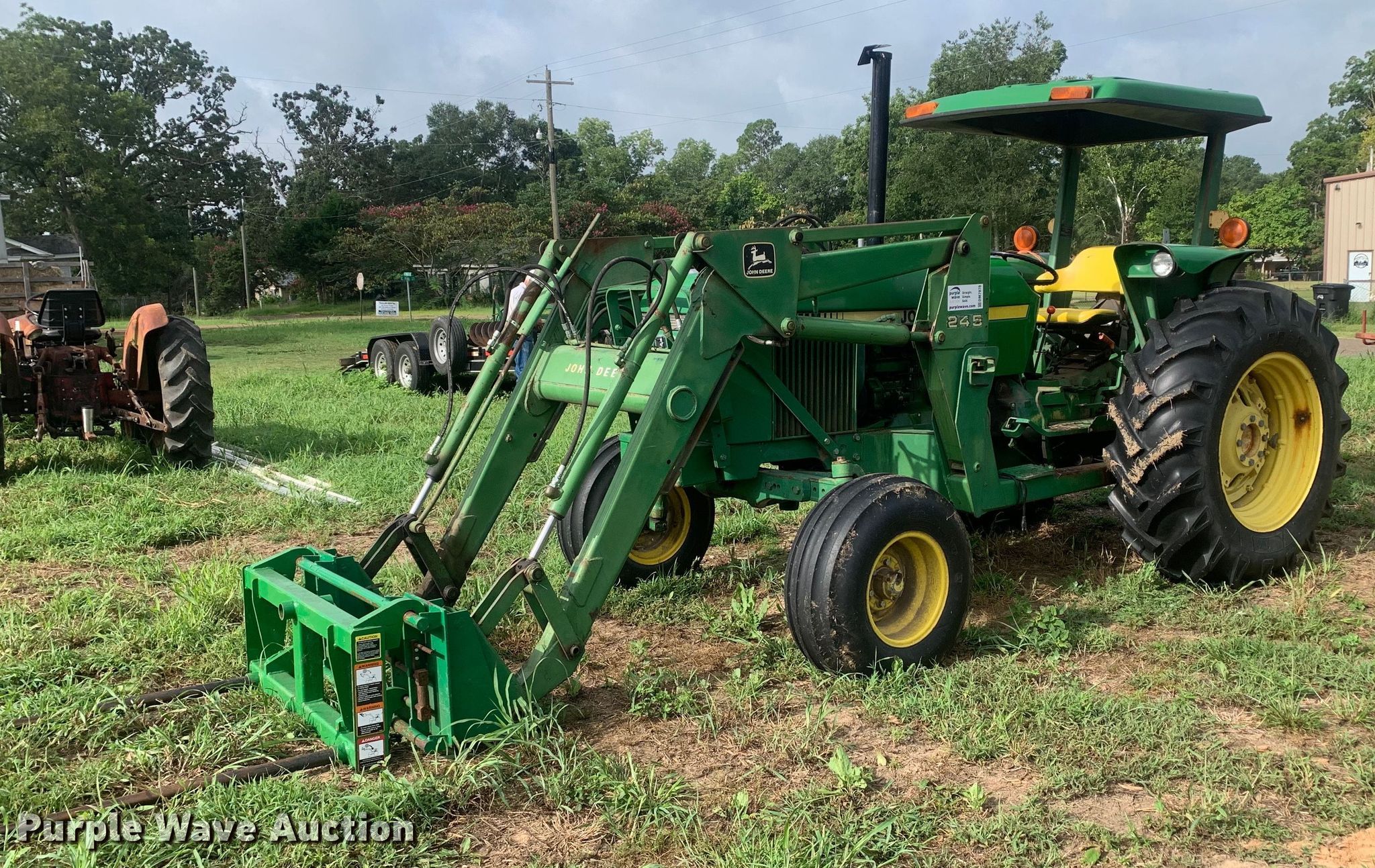 1984 John Deere 2350 tractor. Hours: 6,245 on meter, Miles or hours may vary, unit still in use, Serial: L02350G518943. Engine John Deere 4239DL, Serial: 613802CD, Displacement: 239 C.I.D., Cylinders: 4, Fuel type: Diesel, HP: 55. Transmission Manual, 16F - 8R, Differential lock. Features PTO: 540, Three point Top link, Hydraulic remote sets Rear: 1, Loader John Deere 245, Quick attach, Bale spear, Controls: Joystick, Bucket Width: 73".. Tires Front: 11L-15, Rear: 16.9-30. Bloomburg, TX 75556