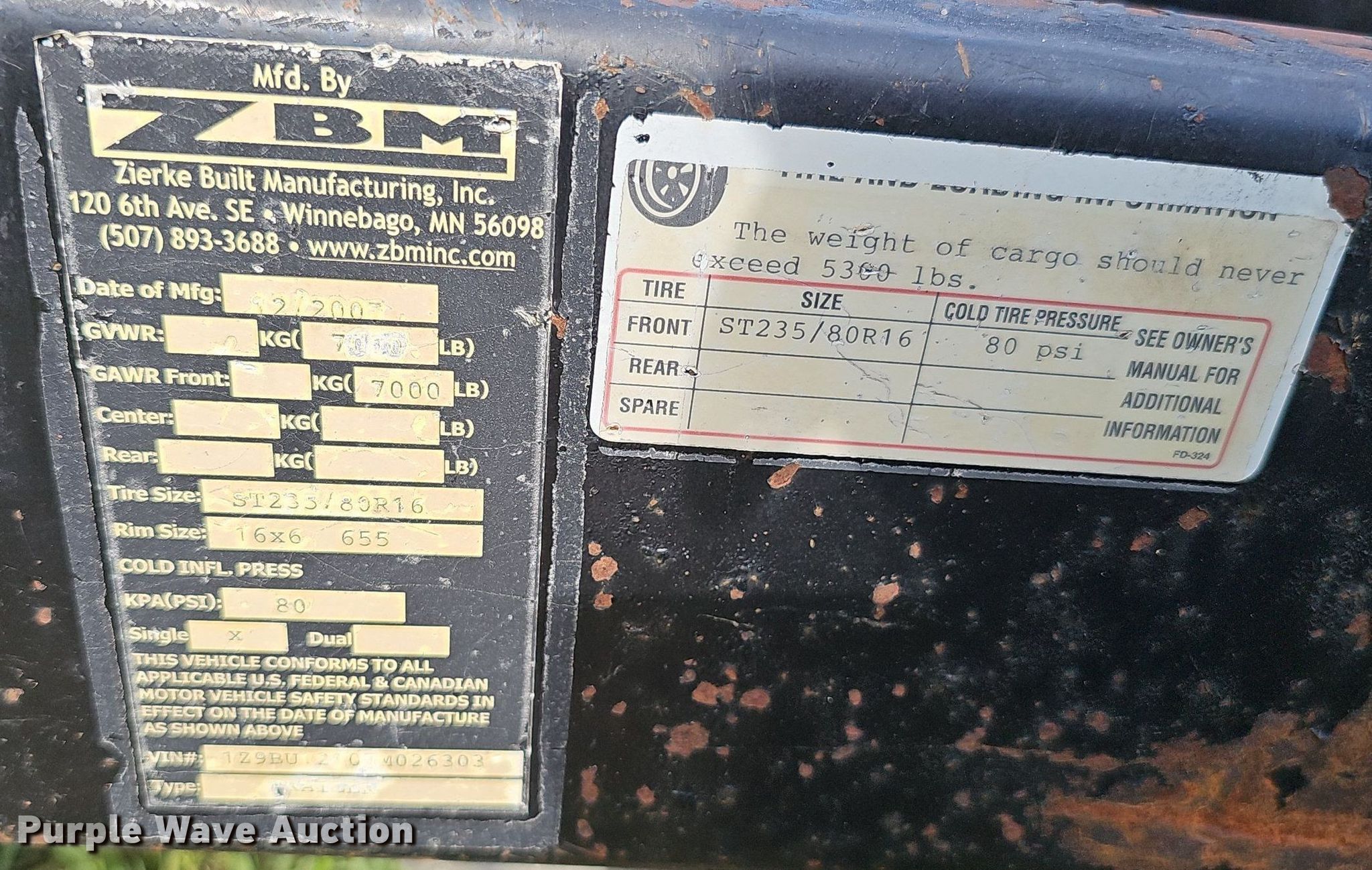 2008 ZBM fuel trailer. VIN: 1Z9BU12107M026303. Dimensions Overall: 12' 6" L x 64" W. Features Solar panel. Chassis Suspension: Spring, Brakes: Electric, Ball hitch: 2 5/16". Tires Size: ST235/80R16. Notes Previously held diesel. Transfer of ownership documentation will be a bill of sale. Diller, NE 68342