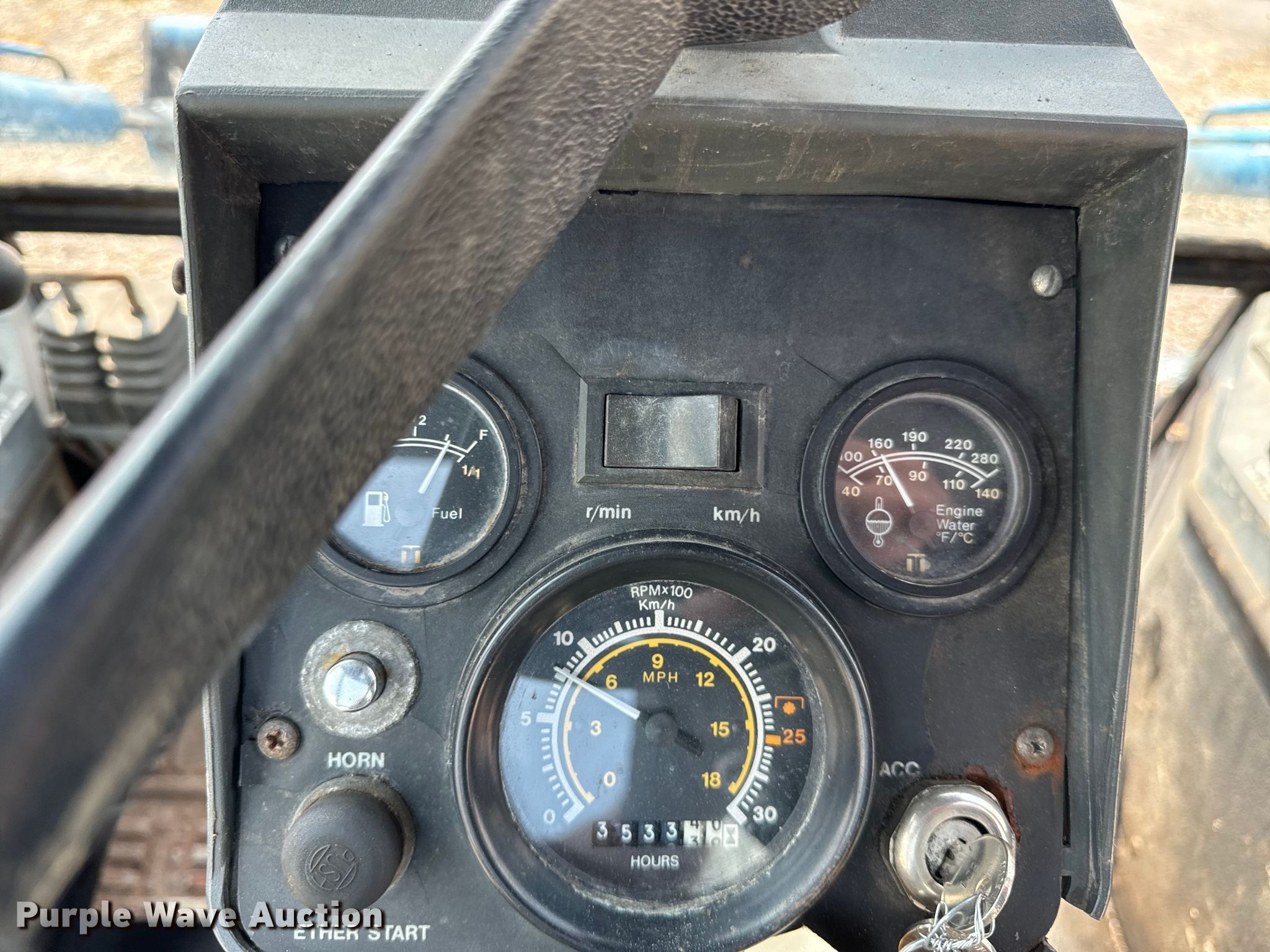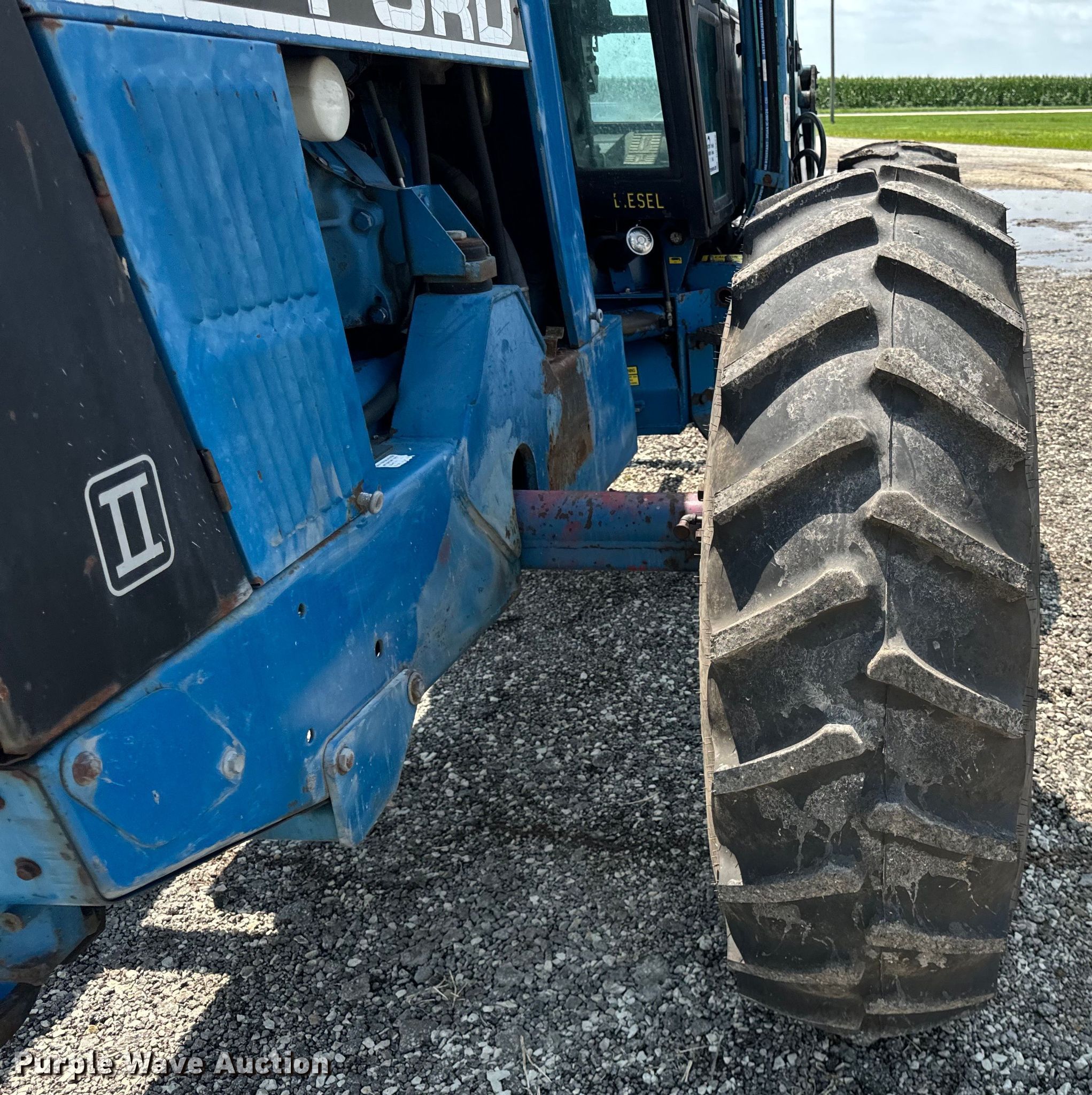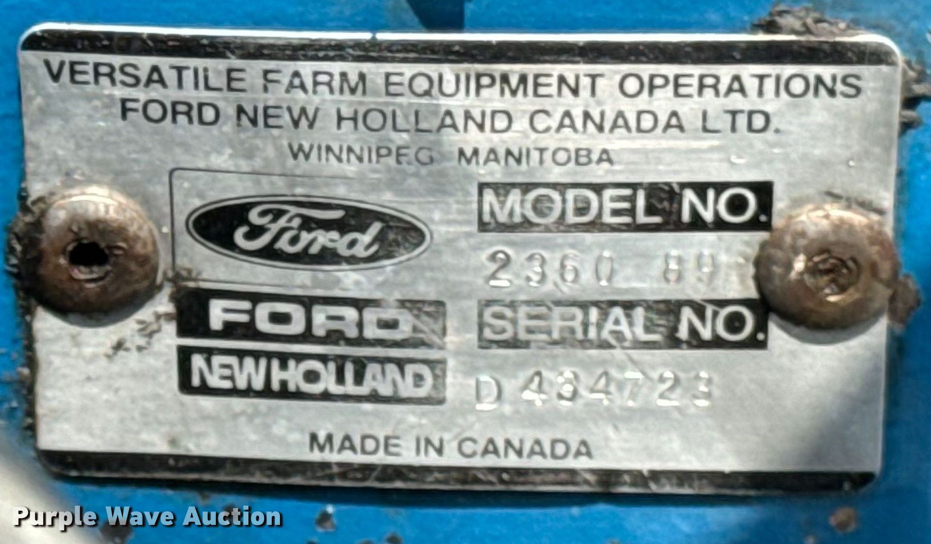 1989 Ford Versatile 276 4WD bi-directional tractor. Hours: 3,533 on meter, Serial: 432789. Engine Ford, Cylinders: 4, Fuel type: Diesel. Transmission Hydrostatic. Operators station AC, Heat. Features Front PTO: 540, Rear PTO: 540, Three point, Seven pin outlet, Hydraulic remote sets Front: 2, Rear: 3, Loader Quick attach, Draw bars: Front, rear. Tires Size: 16.9-28. Notes Brake light issues, Warning indicator: Brake, Glass cracked. Schott Farms. Buckingham, IL 60917