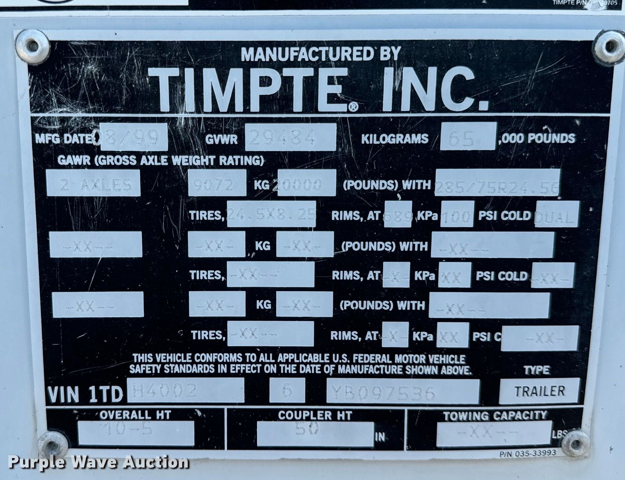 Purple Wave is selling a used Grain or Commodity Trailer in Illinois. This item is a 2000 Timpte grain trailer with the following: VIN: 1TDH40026YB097536