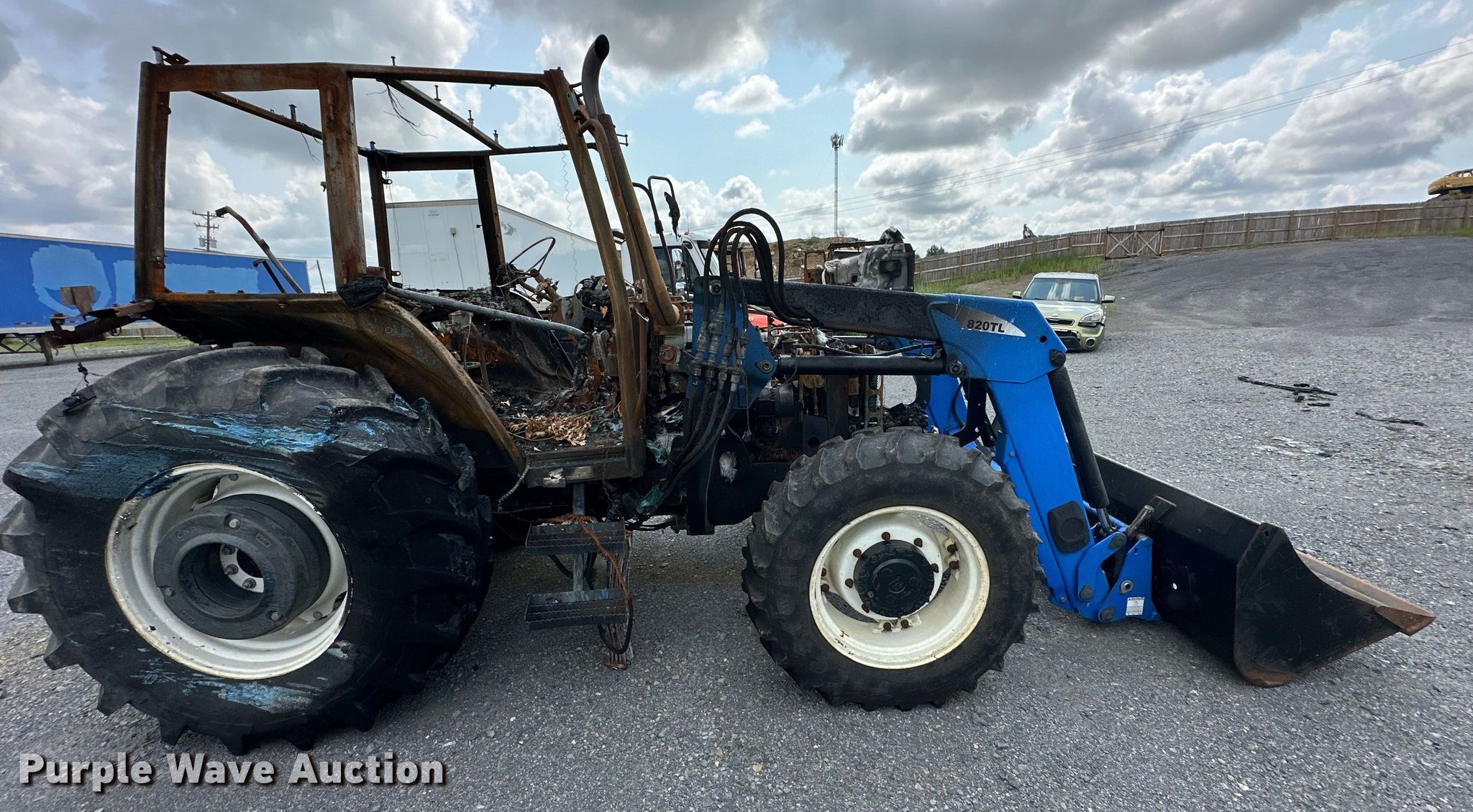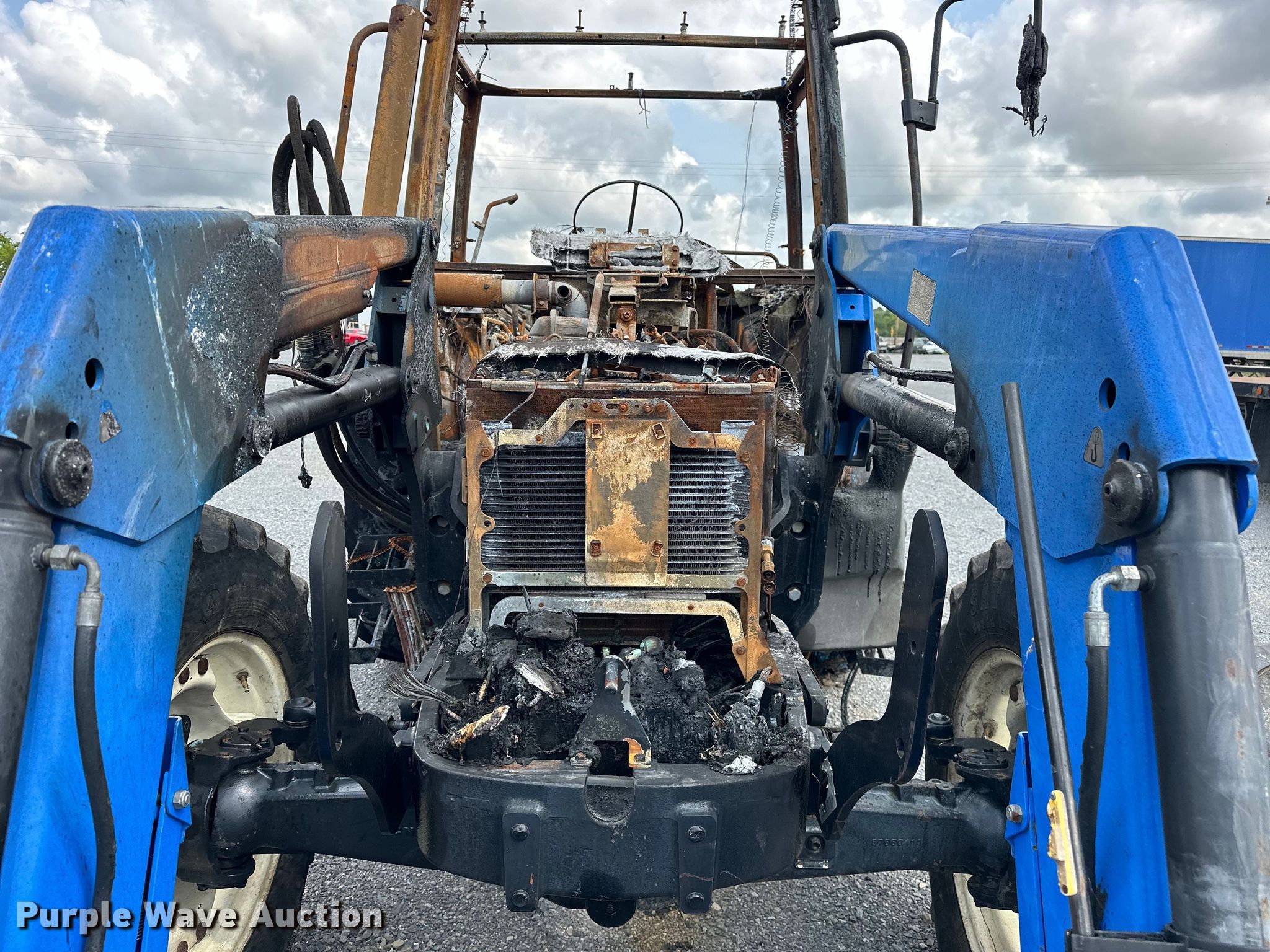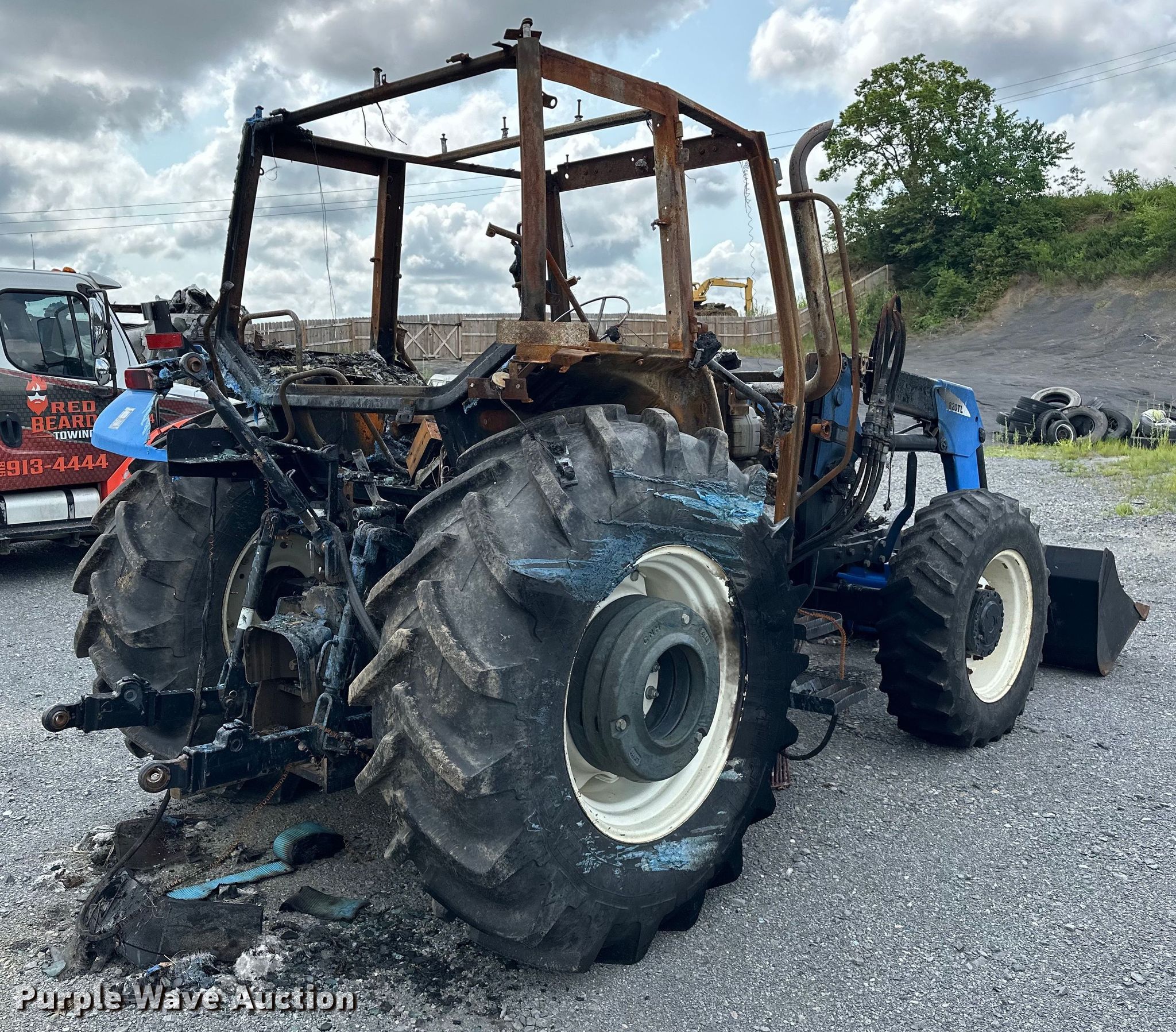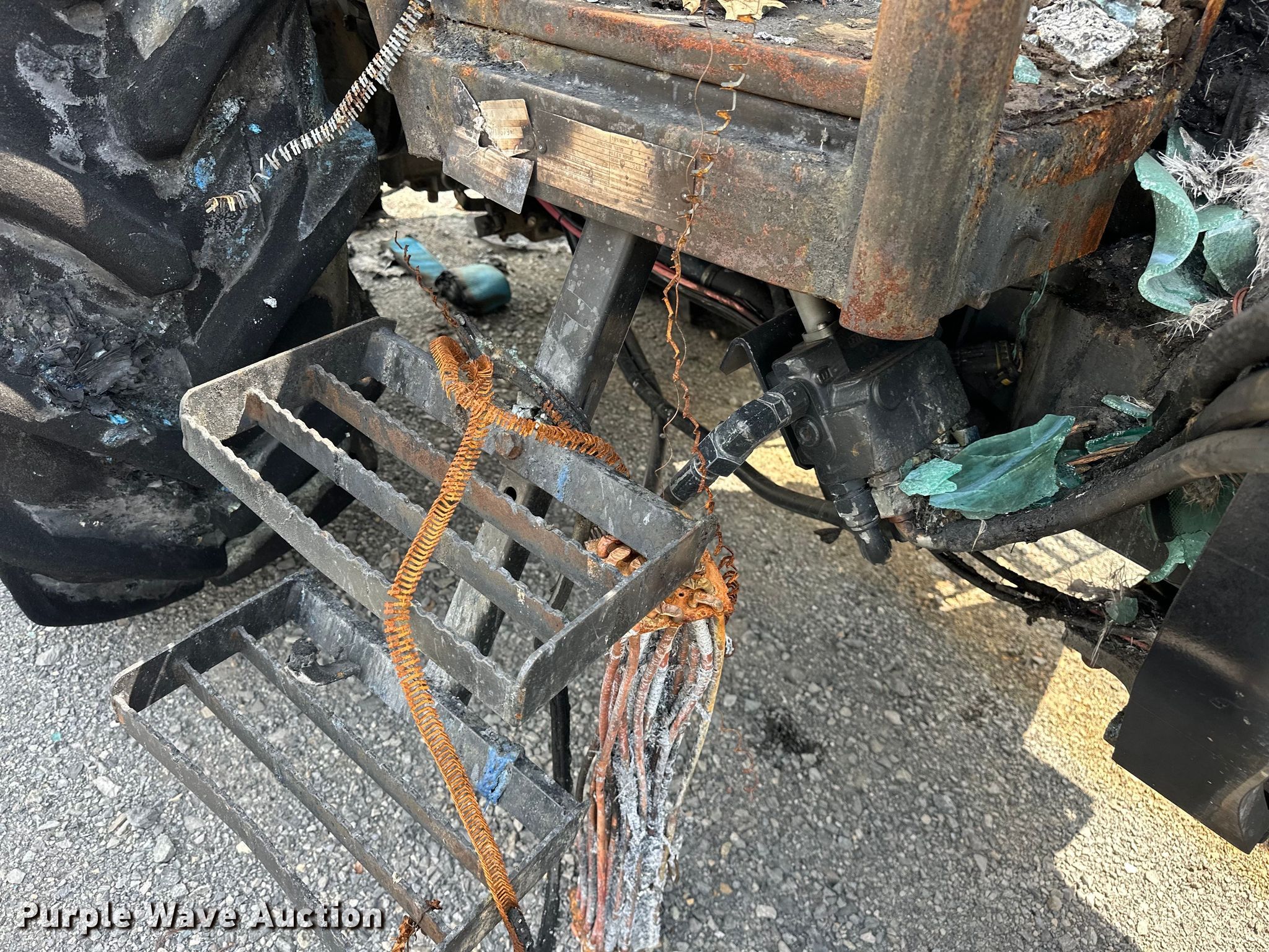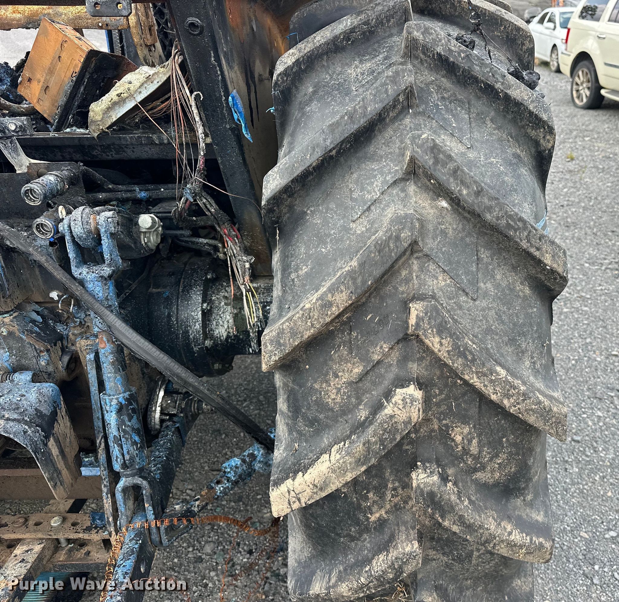 2010 New Holland T5050 MFWD tractor. Hours: Unknown, Serial: ZAJH17579, Insurance salvage unit claim #: 4-808136. Engine Cylinders: 4, Fuel type: Diesel. Transmission Unknown. Chassis Differential lock. Features PTO: 540, Three point Top link, Seven pin outlet, Hydraulic remote sets Rear: 2, Loader New Holland 820TL, Controls: Joystick, Bucket Width: 82".. Tires Front: 12.4-24, Rear: 18.4R30, Wheel weights: 6. Notes Fire damage, Non-operational unit. Oklahoma Farm Bureau. Muskogee, OK 74401