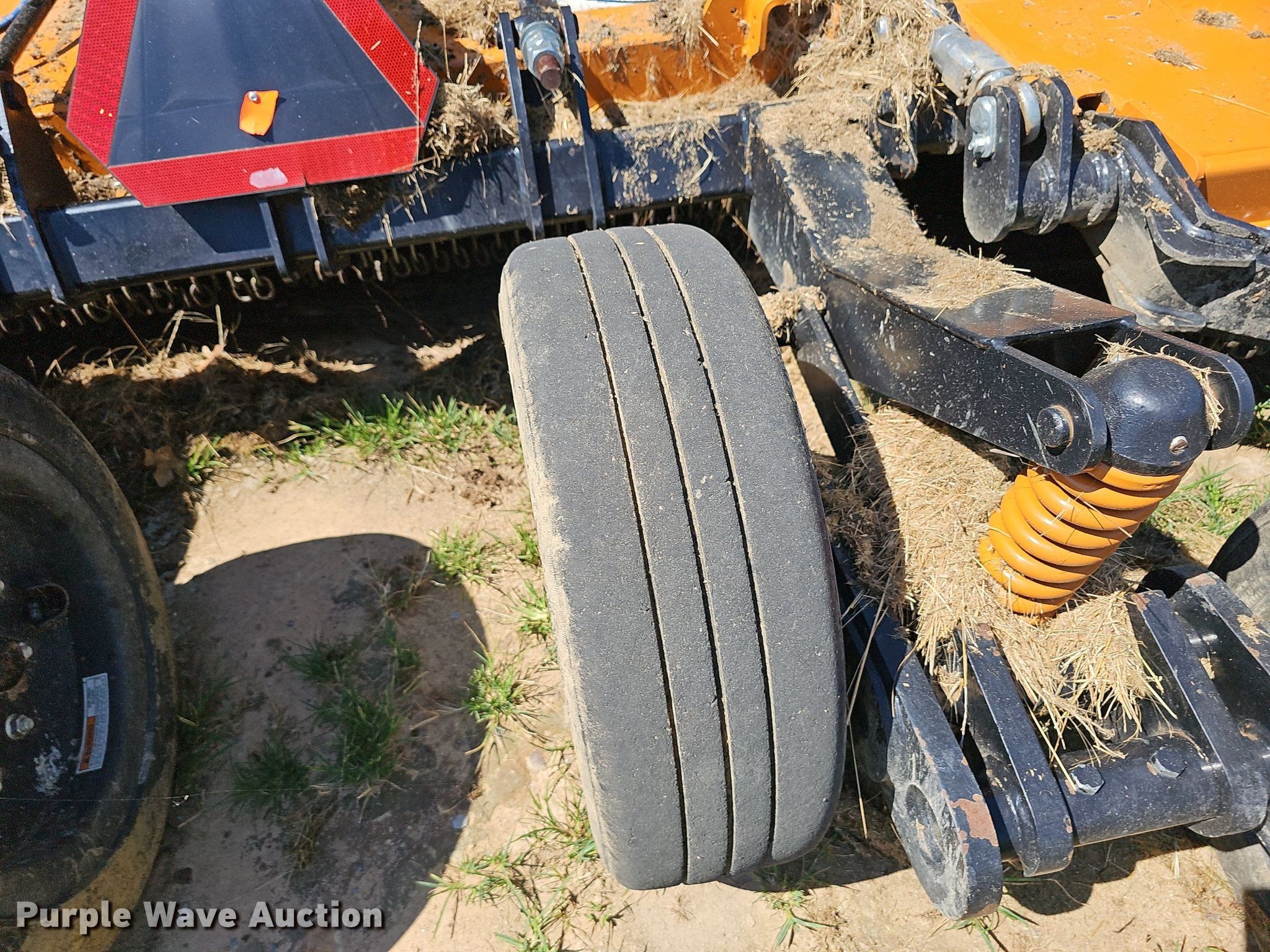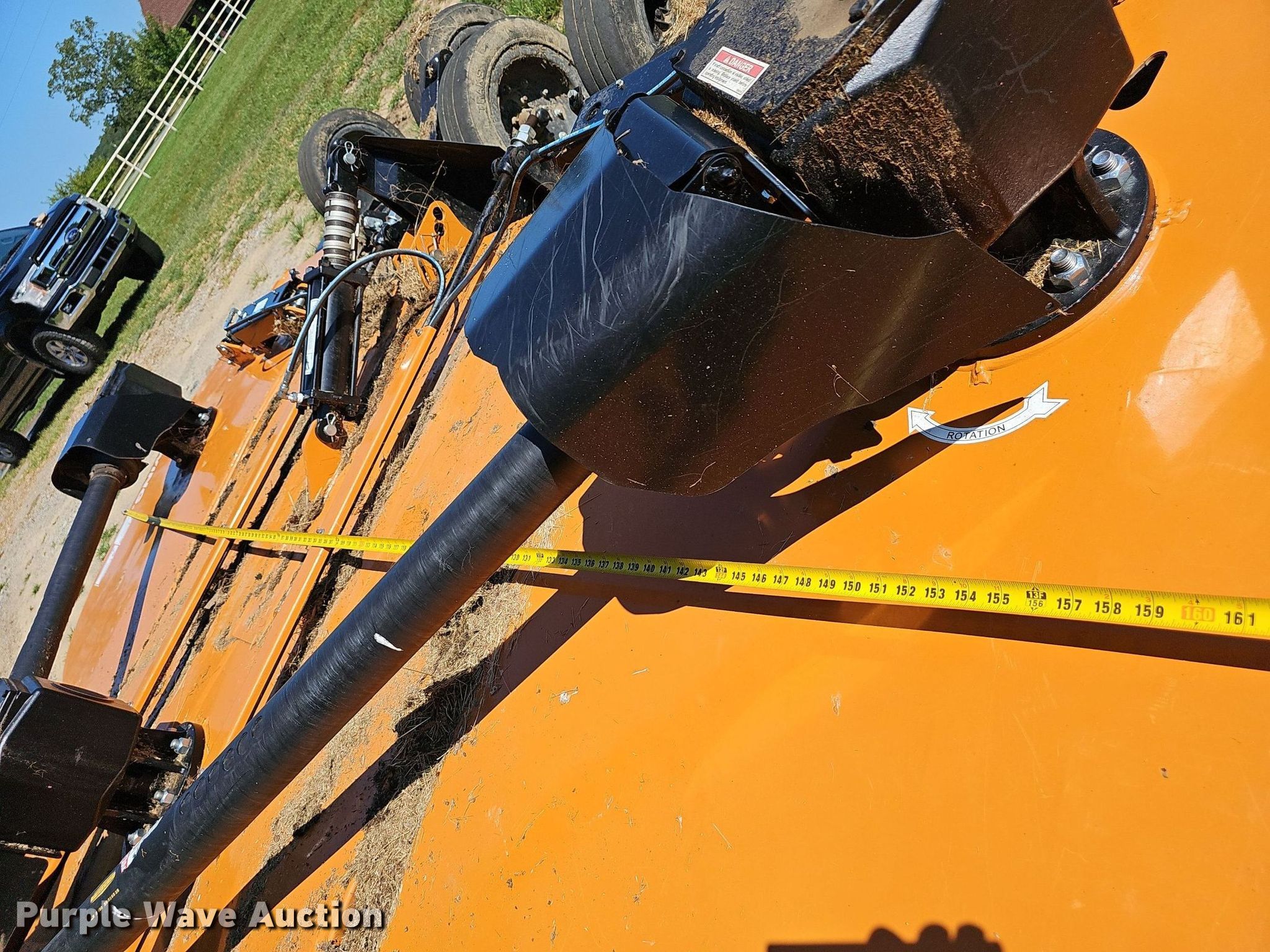 Woods BW15.60 batwing rotary mower. Serial: 10008375971001. Features Width: 15', Hydraulic lift, Hydraulic fold, PTO: 540, Hydraulic hose connection: Triple / dual. Tires Size: 25.5x8-14, Solid. Judsonia, AR 72081