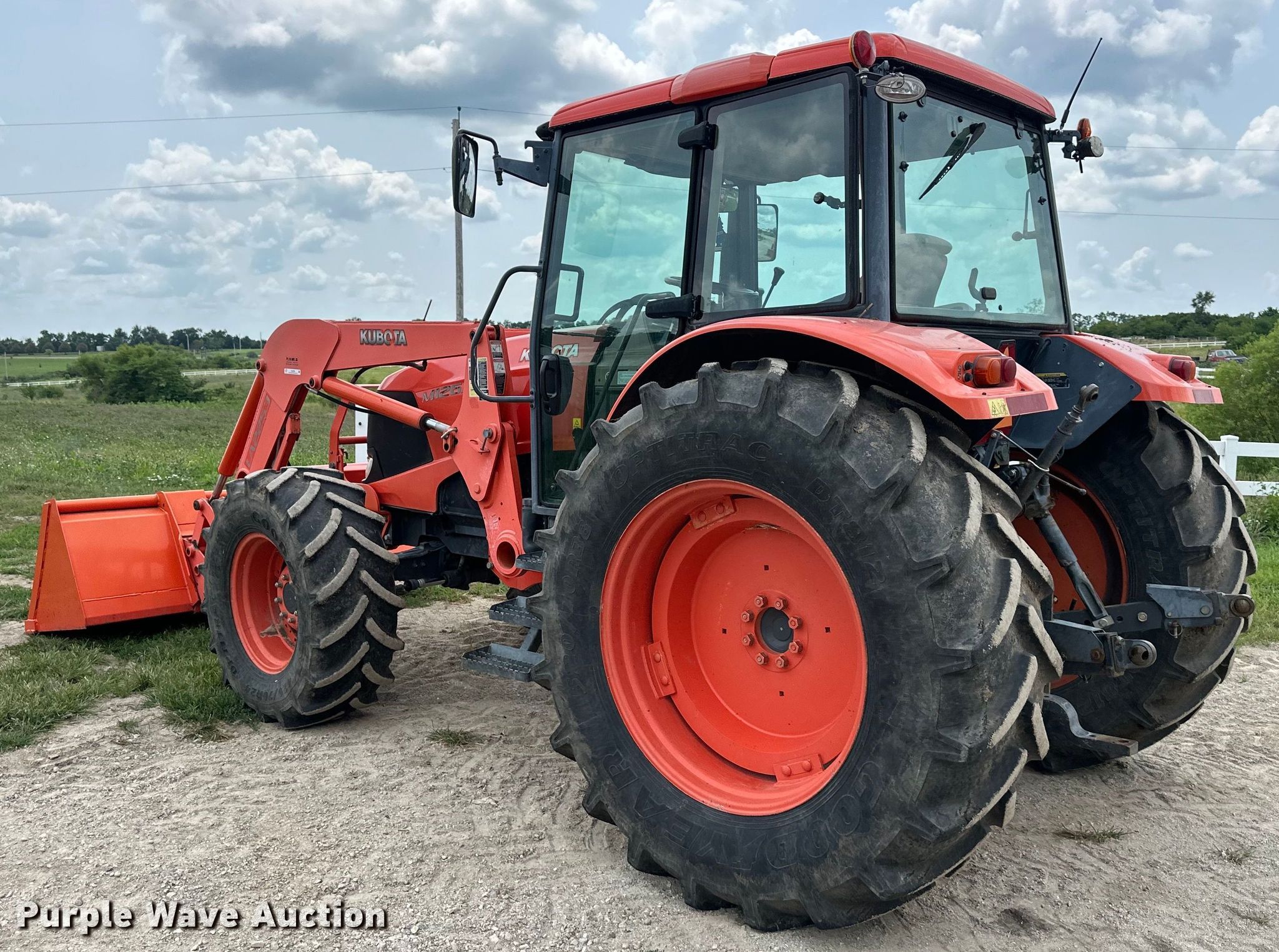 Purple Wave is selling a used Tractor in Kansas. This item is a Kubota M126X MFWD tractor with the following: Hours: 3988 on meter