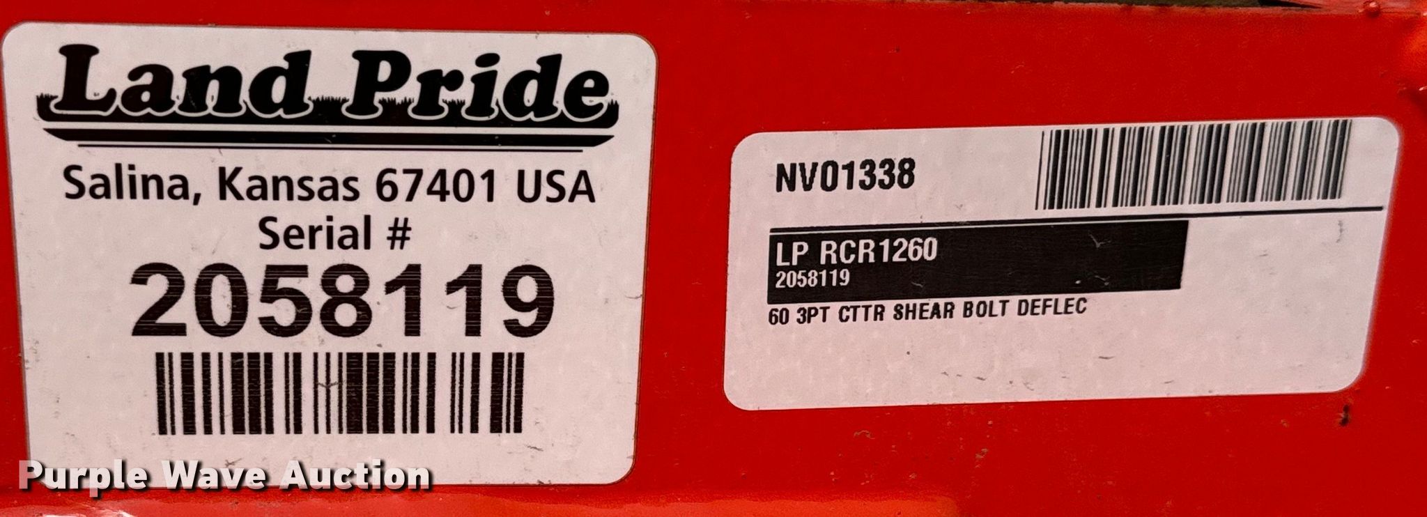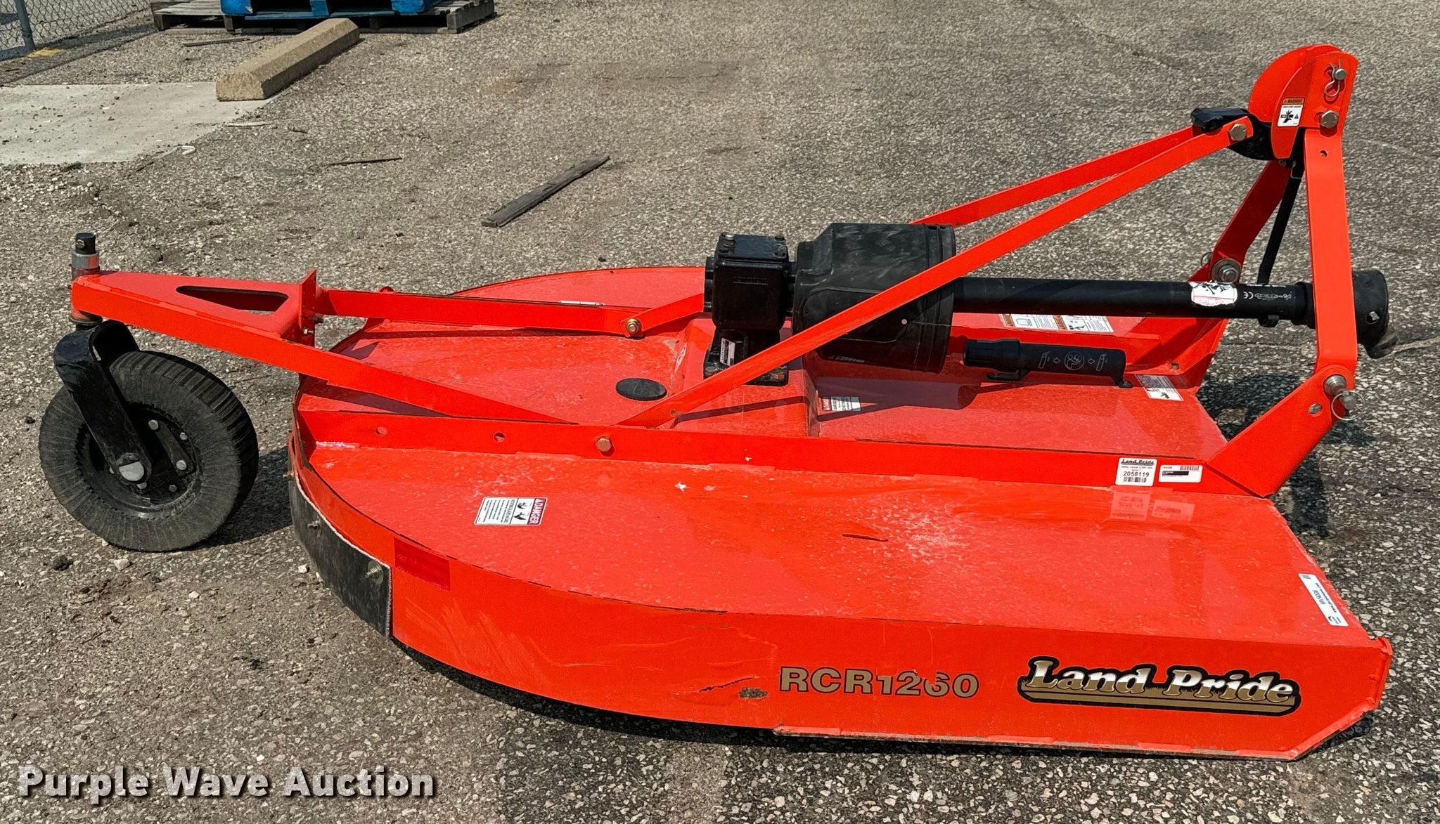 Purple Wave is selling a used Mower, Cutter, Shredder in Kansas. This item is a Land Pride RCR1260 rotary mower with the following: Serial: 2058119
