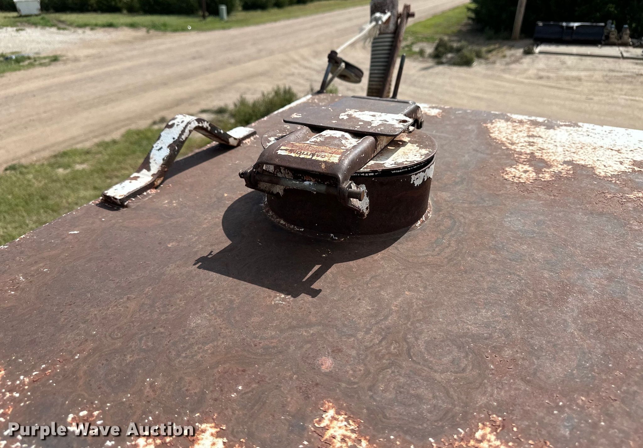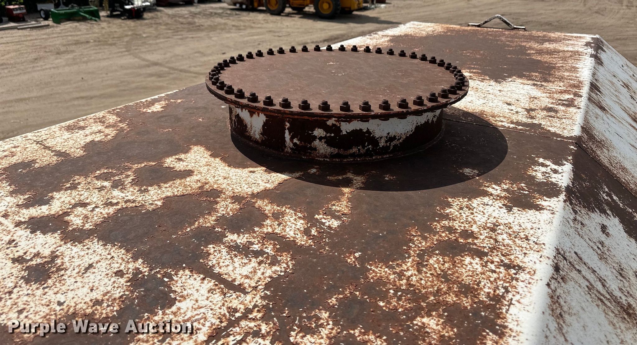 Shop built tank trailer. Dimensions. Overall: 18' L x 92" W, Tank: 13' L x 72" W x 48" H. Features Tank type: Steel, No. of manways/manholes: 1. Tires Steel wheels, Size: 11L-15. Sublette, KS 67877