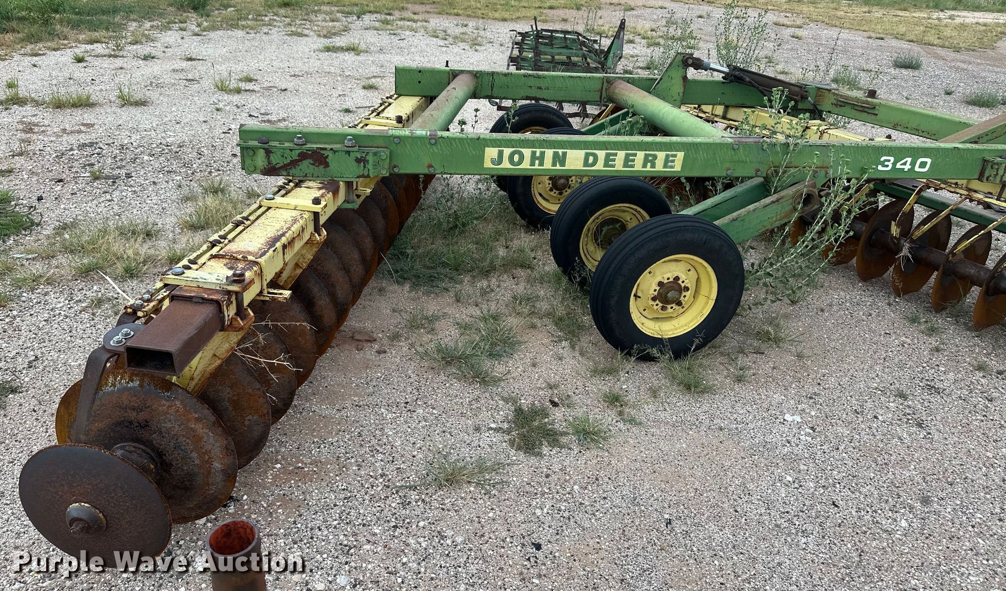 Purple Wave is selling a used Disk in Oklahoma. This item is a John Deere 340 off-set disk with the following: Overall width: 14'